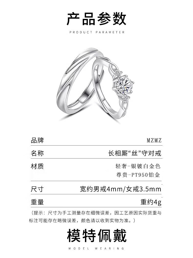 MZMZ platinum couple ring pt950 platinum wedding diamond ring Valentine's Day birthday gift for boyfriend, girlfriend and wife Exquisite custom platinum diamond ring
