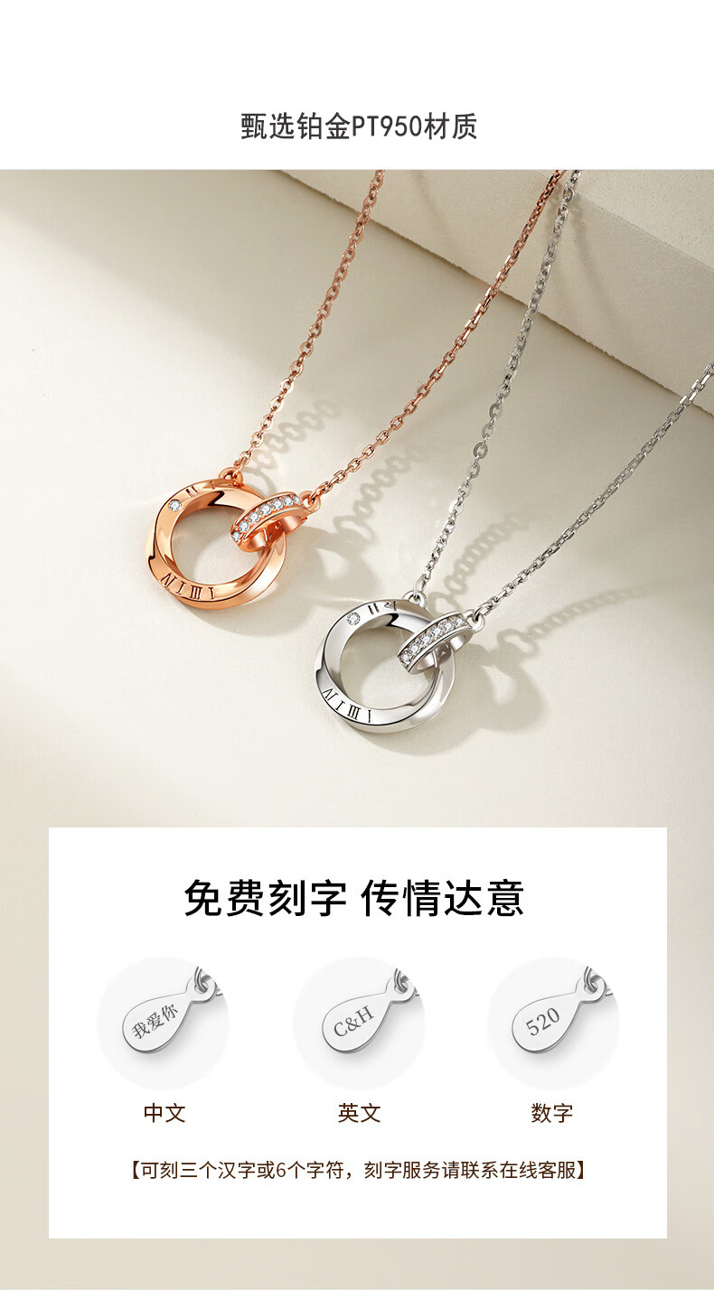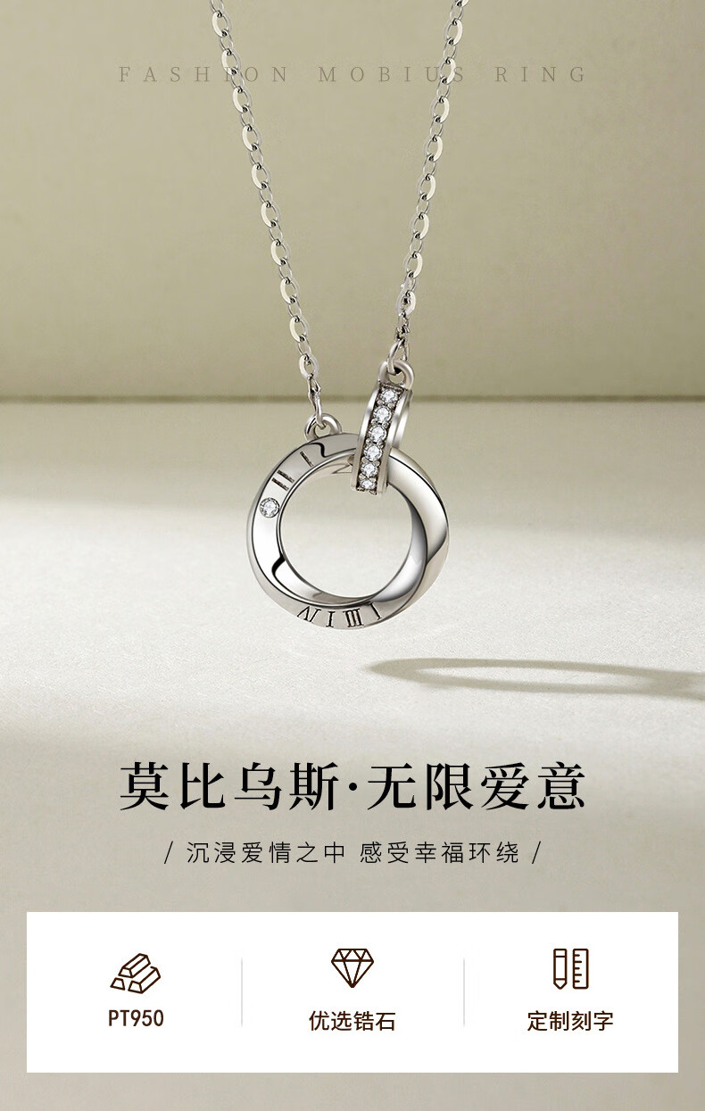 Ji Shizhe platinum platinum pt950 necklace for women, practical Chinese Valentine's Day birthday gift for girlfriend and wife. Platinum model - platinum necklace + Möbius strip pendant.