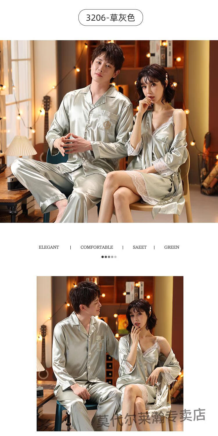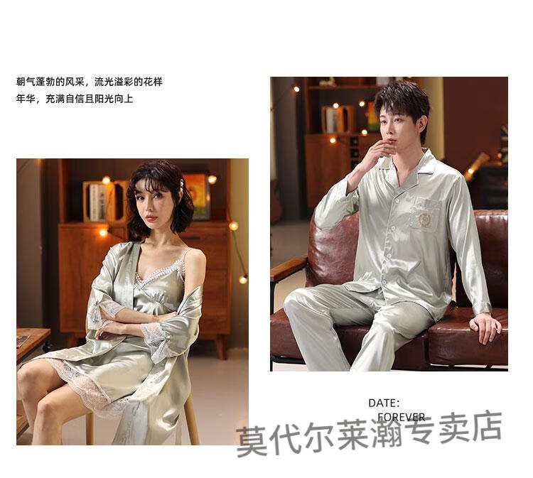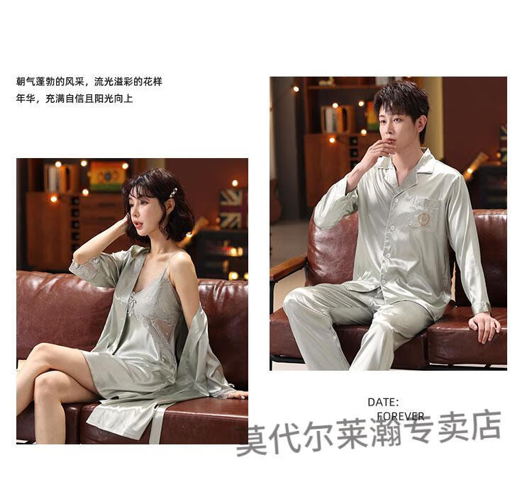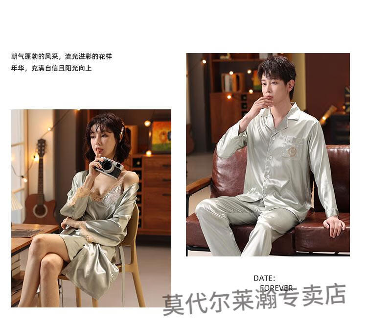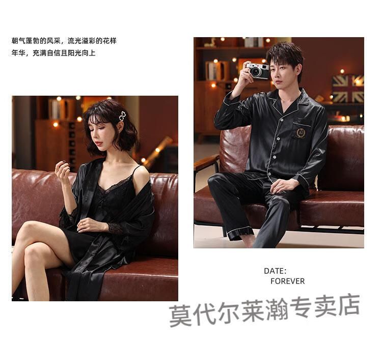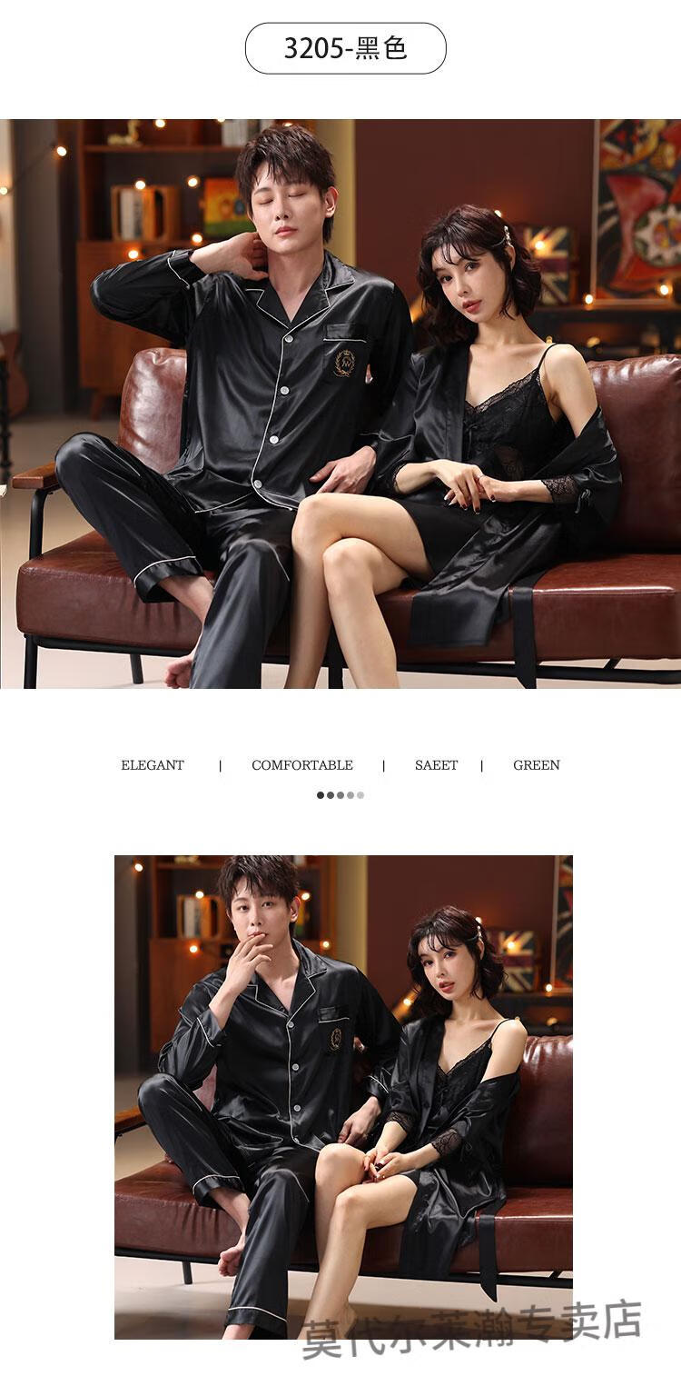 Modal 2025 New Couple Pajamas Ice Silk Spring and Autumn Summer Nightgown Sexy Padded Nightgown Women's and Men's Suit Lady's Black 2XL Male + Female L