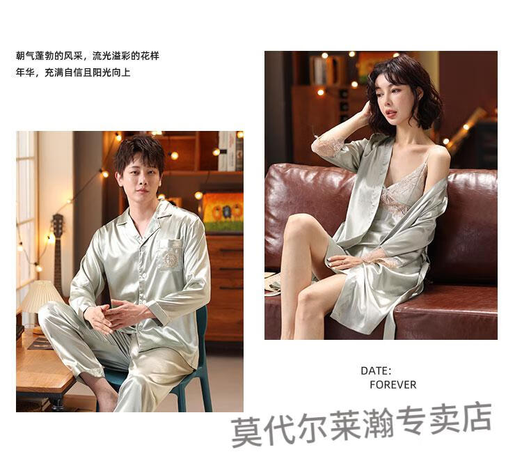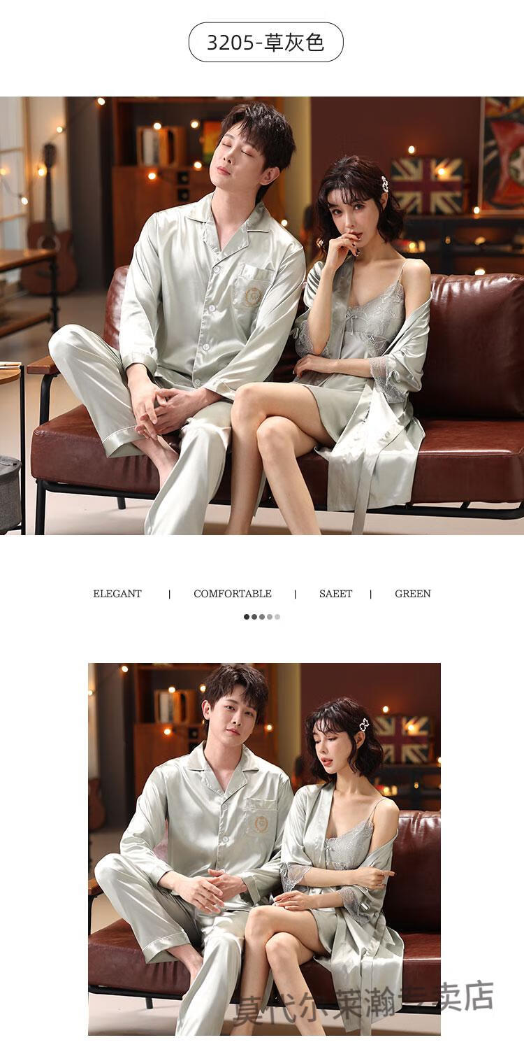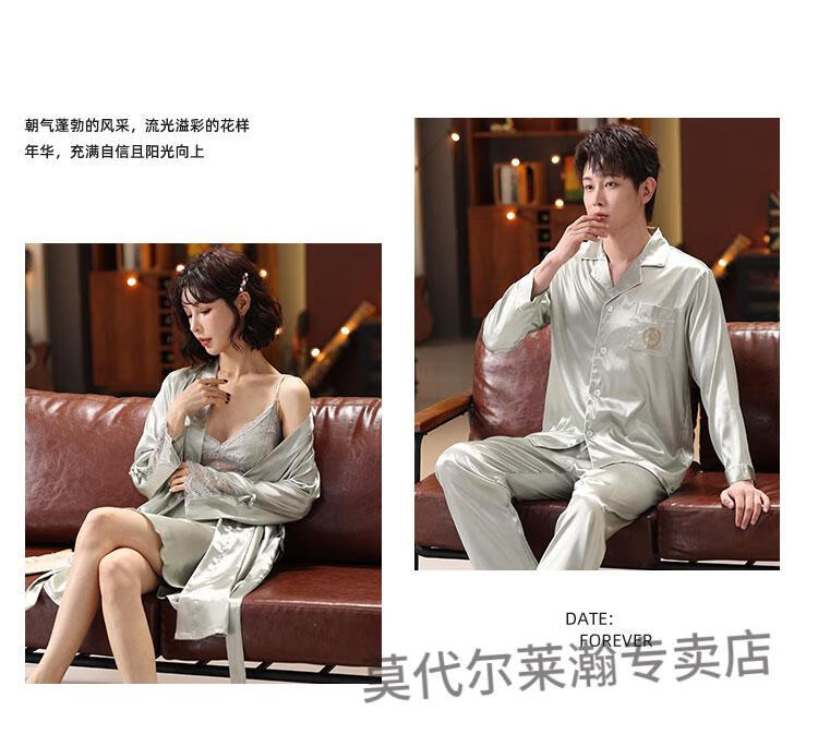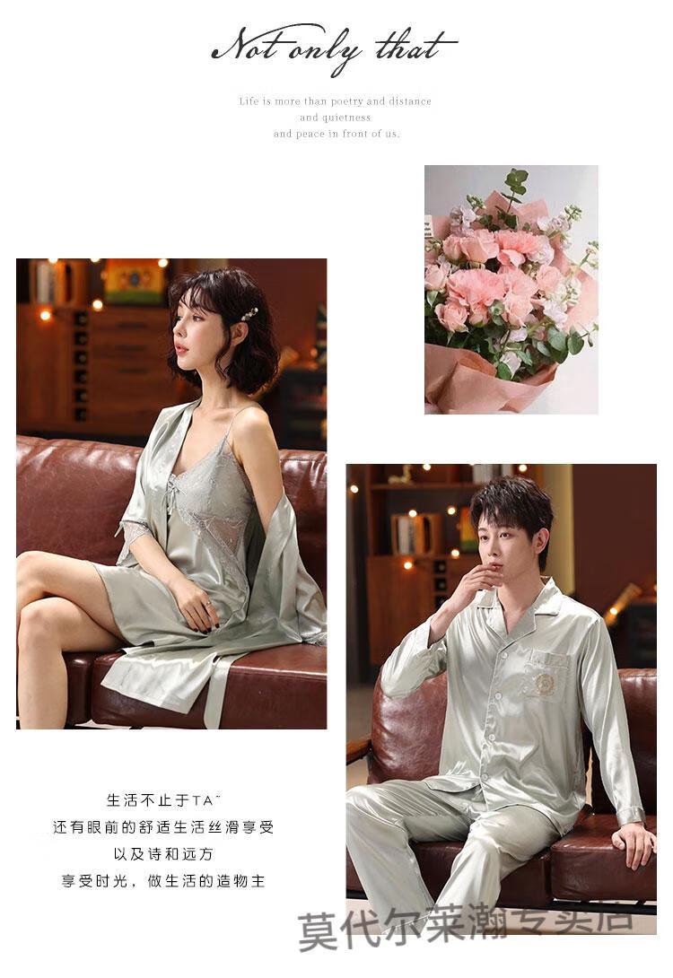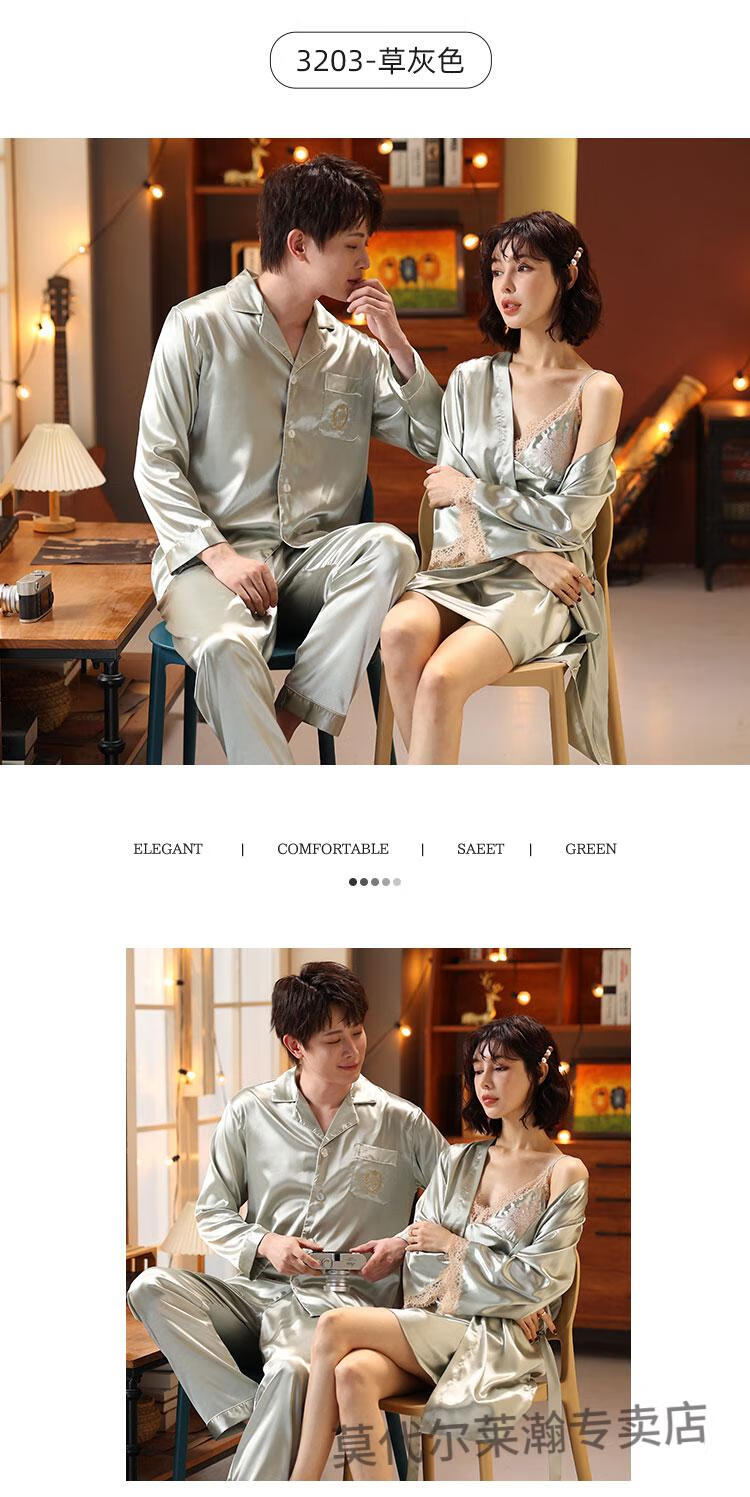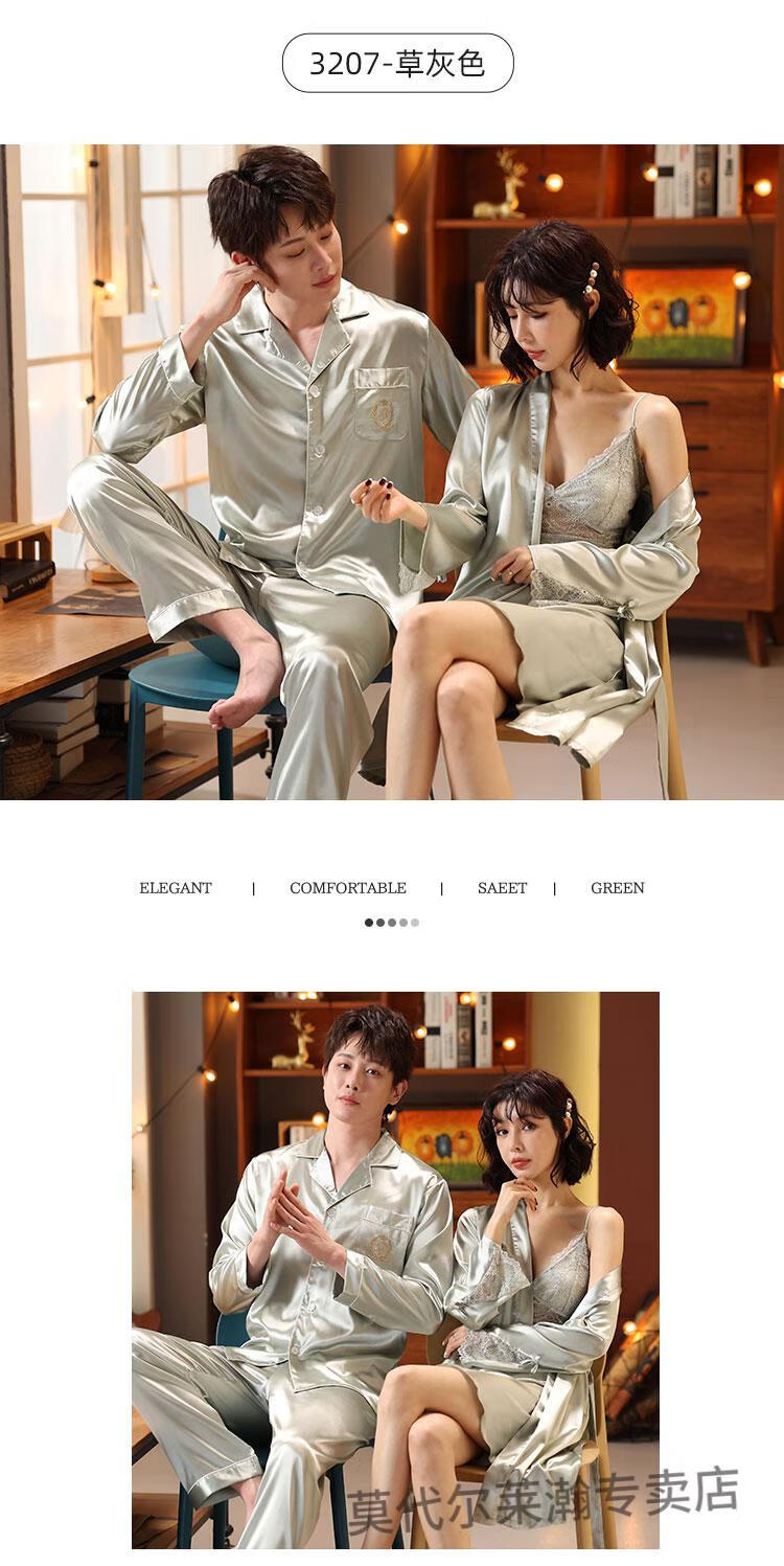 Modal 2025 New Couple Pajamas Ice Silk Spring and Autumn Summer Nightgown Sexy Padded Nightgown Women's and Men's Suit Lady's Black 2XL Male + Female L