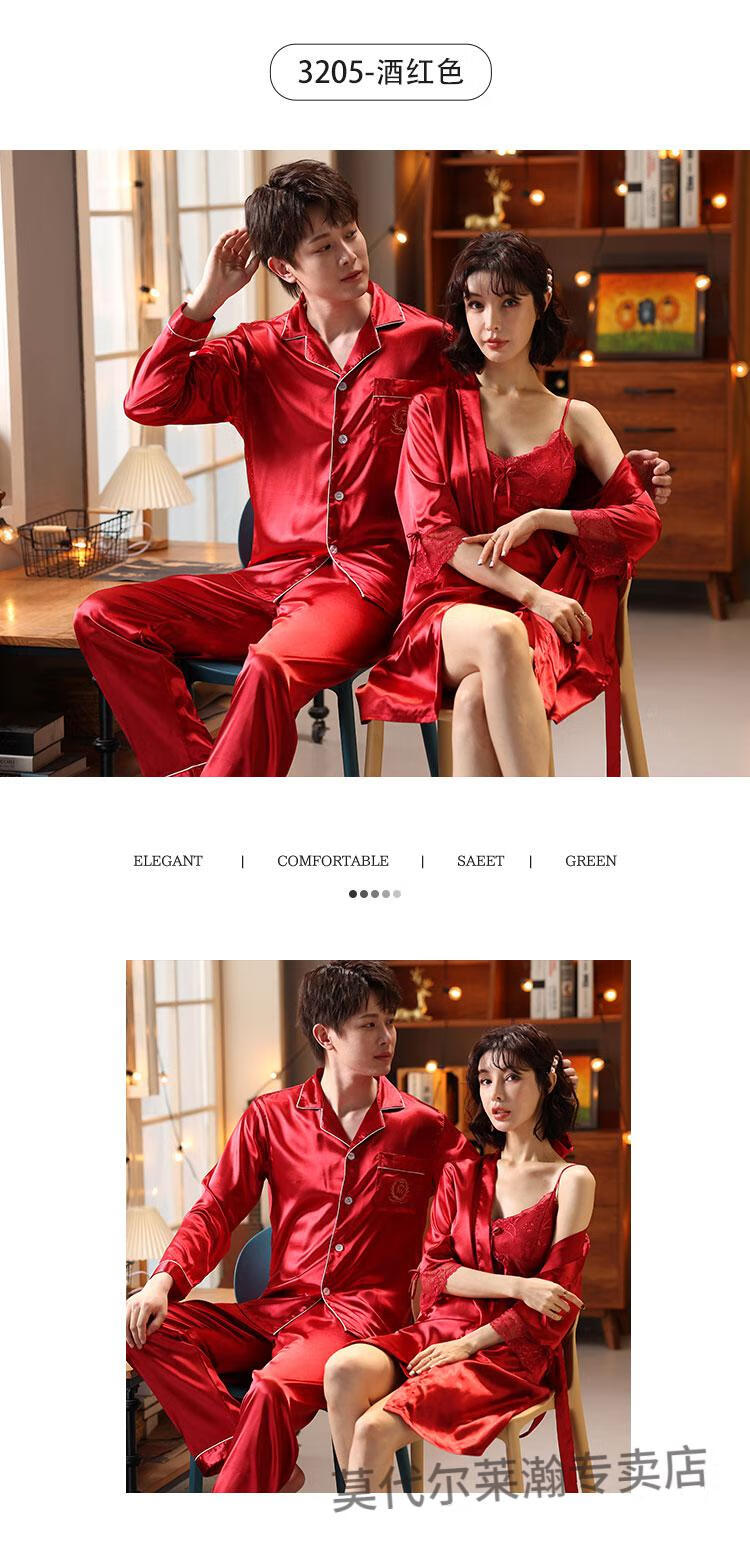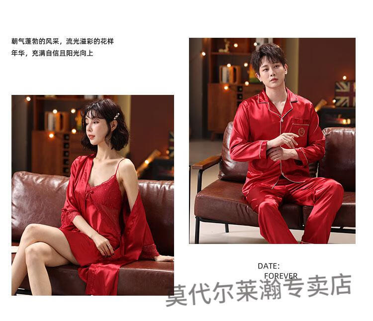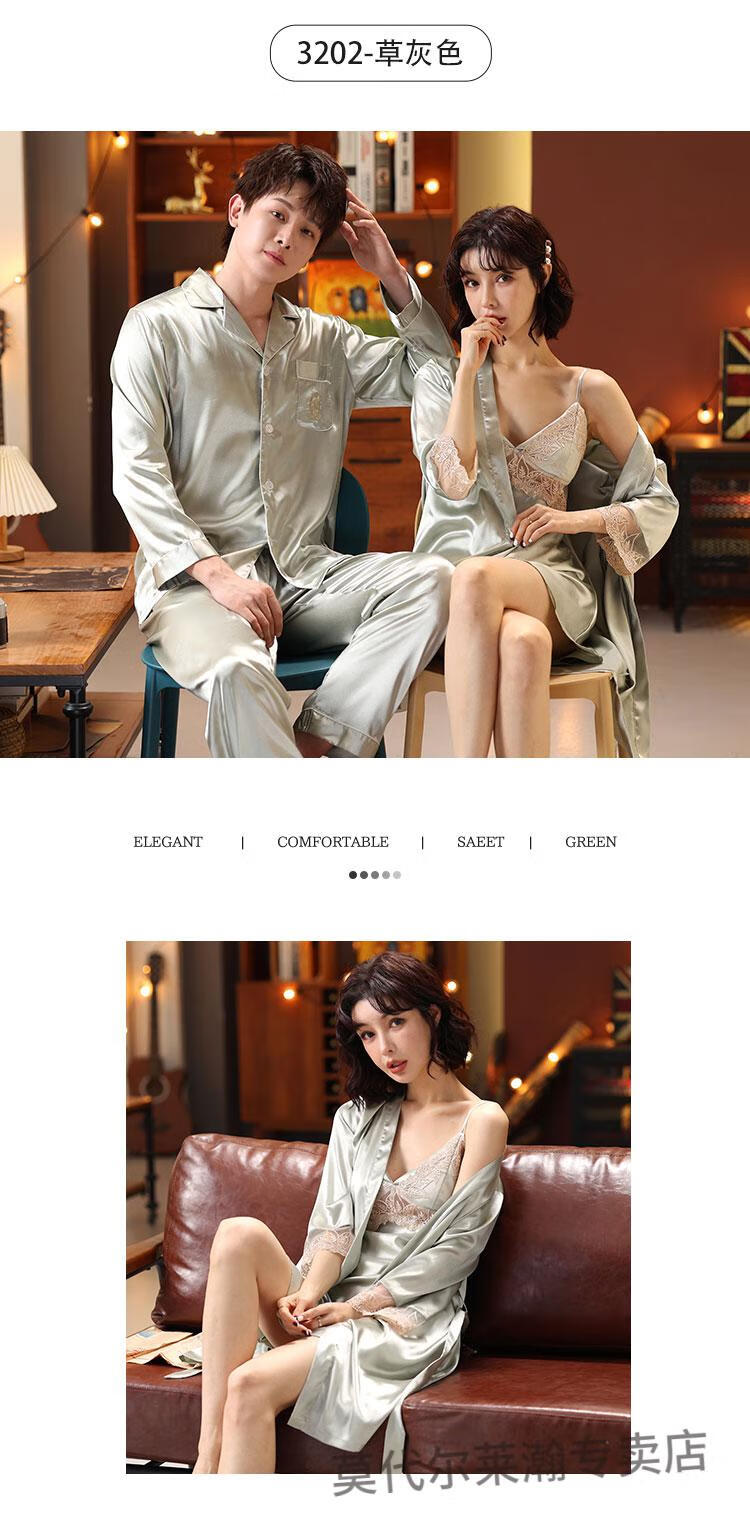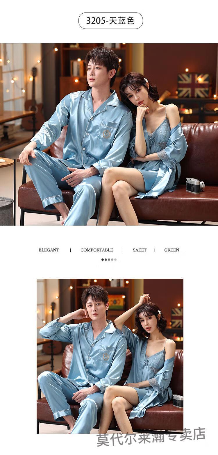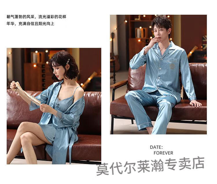 Modal 2025 New Couple Pajamas Ice Silk Spring and Autumn Summer Nightgown Sexy Padded Nightgown Women's and Men's Suit Lady's Black 2XL Male + Female L