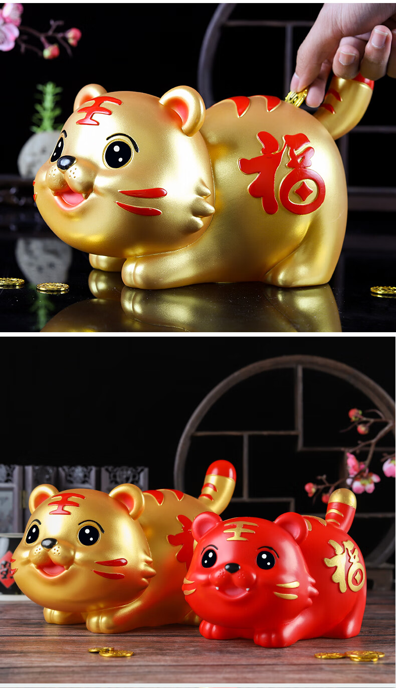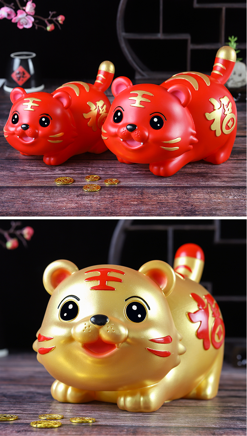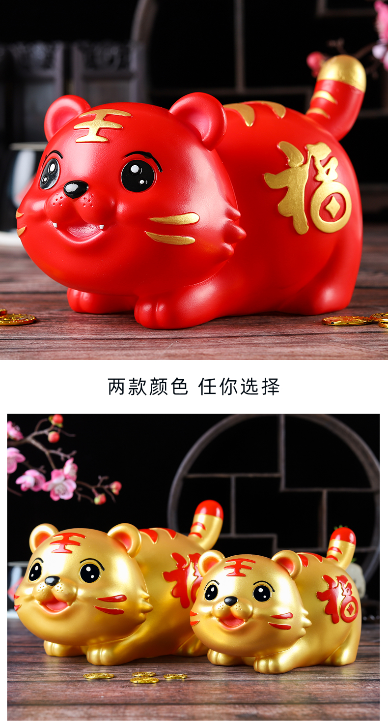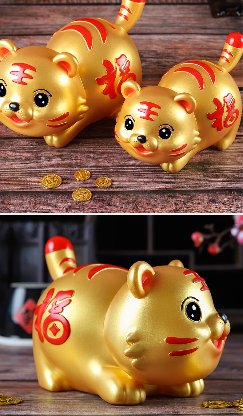 Year of the Tiger piggy bank can be deposited and withdrawn Year of the Tiger piggy bank for children boys and girls anti-fall little tiger ornaments gold trumpet