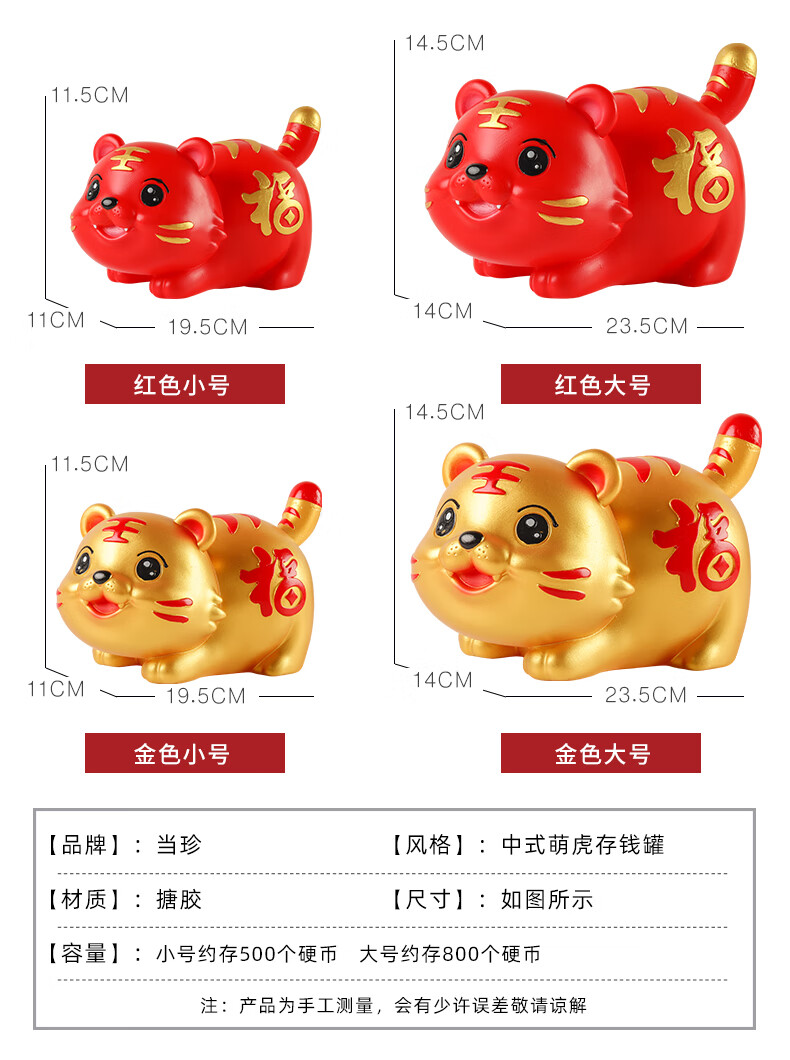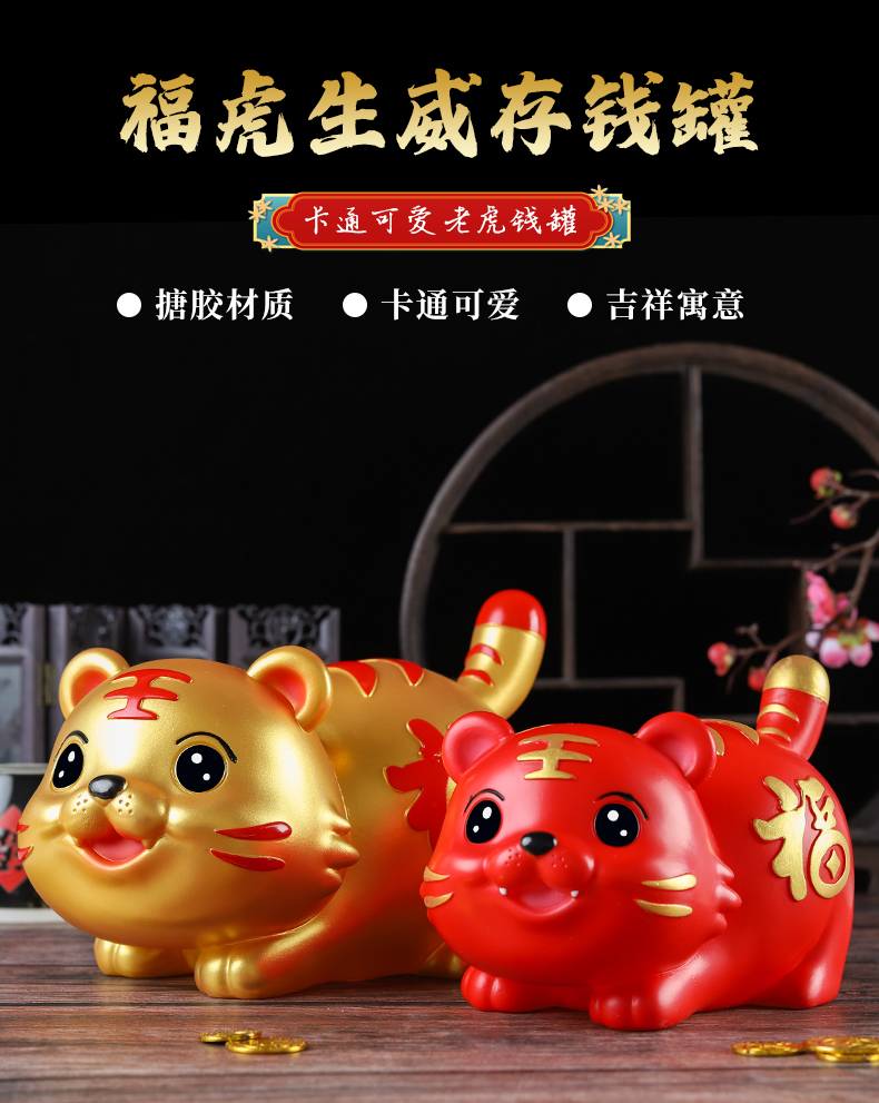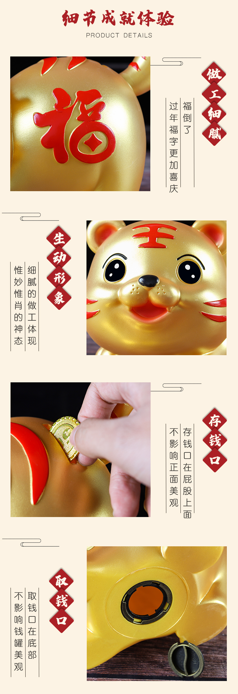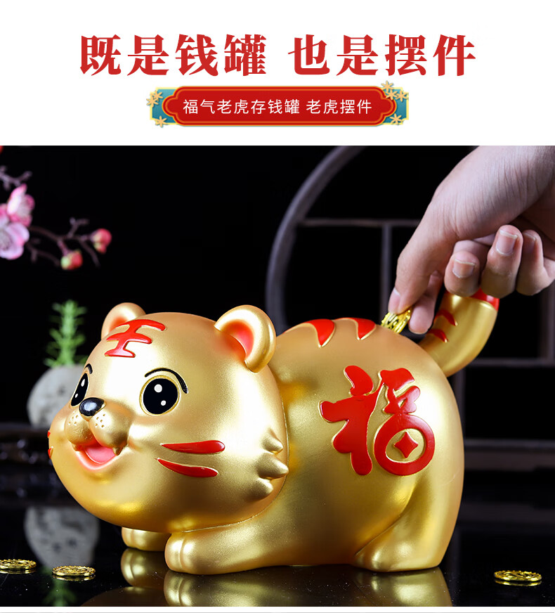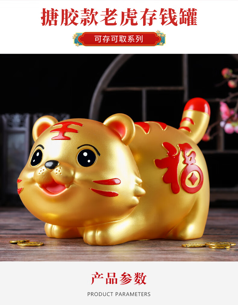Year of the Tiger piggy bank can be deposited and withdrawn Year of the Tiger piggy bank for children boys and girls anti-fall little tiger ornaments gold trumpet