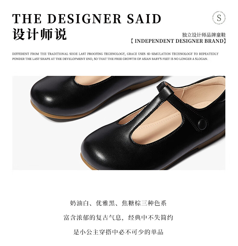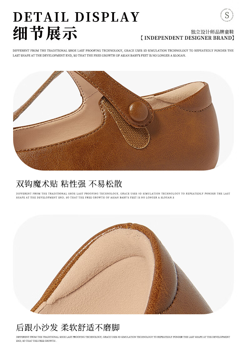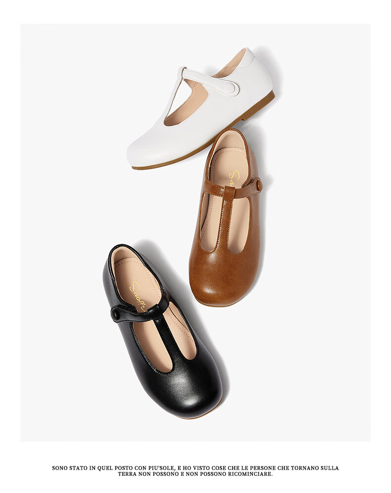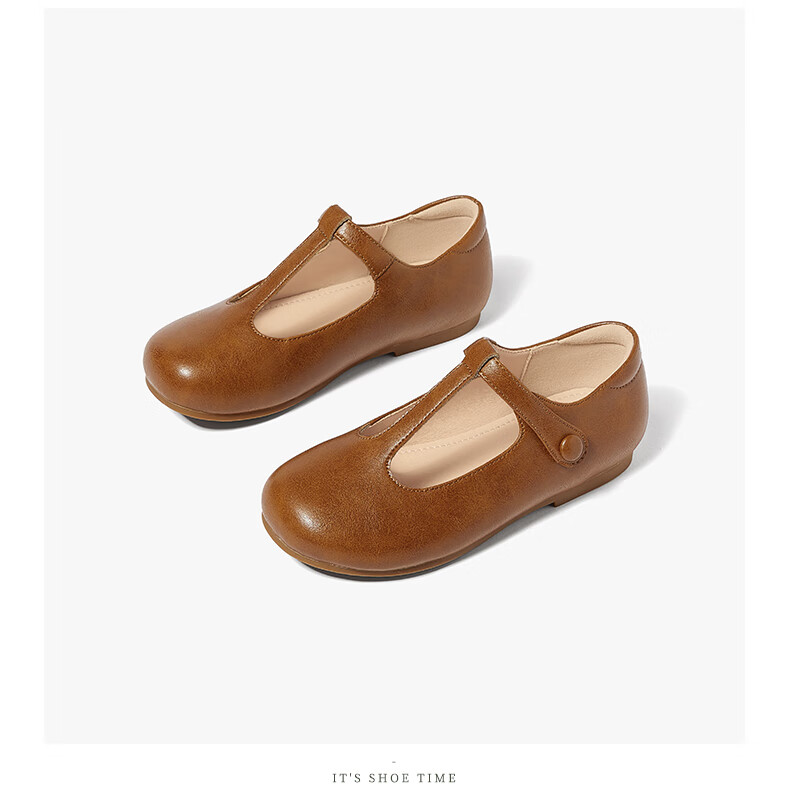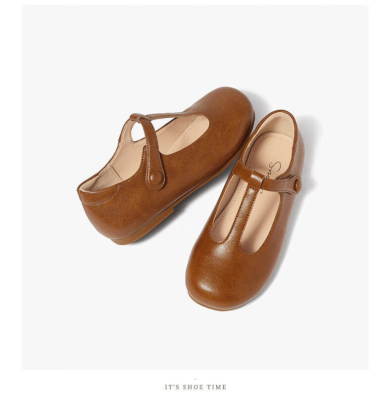 Snuffy Girls' Leather Shoes Spring and Autumn Fashionable Ballet Style Children's Shoes Caramel Brown 27 Foot Length 16.8cm