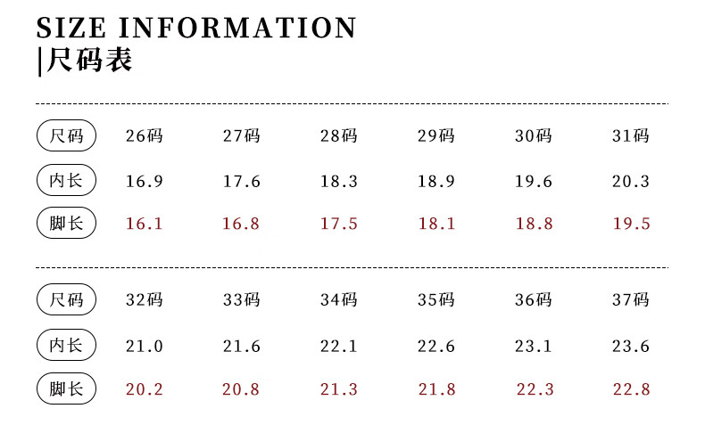 China (cm) 36 - 37 38 - 39 40 - 42 43 - 44 45 - 47