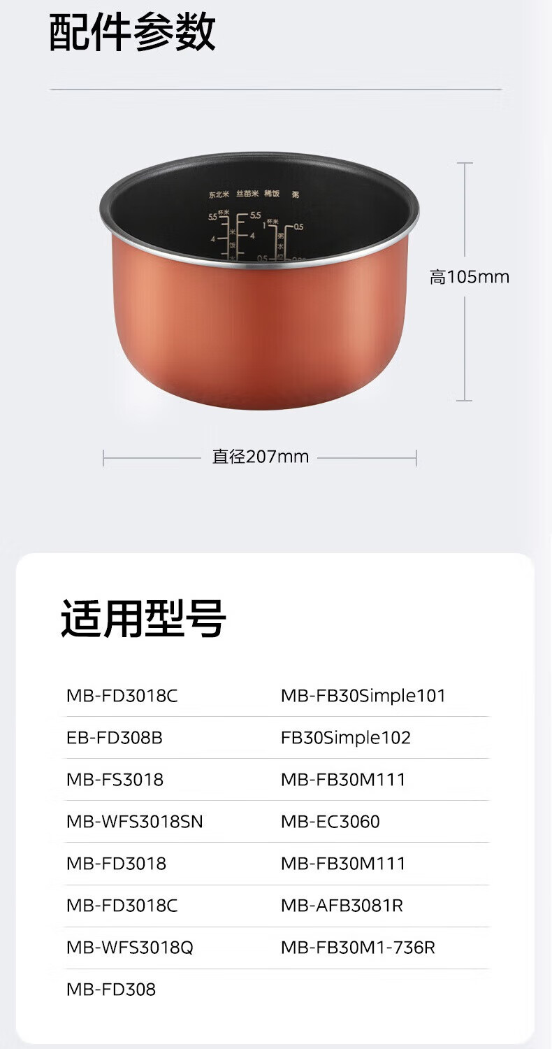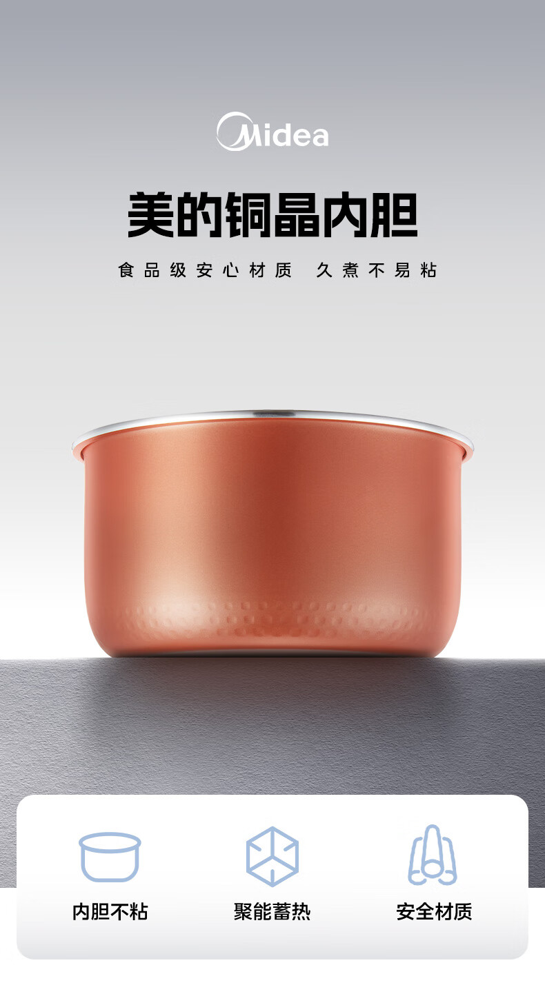 Midea rice cooker copper crystal rice cooker liner original copper crystal rice cooker accessories 3L MB-FD3018C/EB-FD308B copper crystal rice cooker accessories 3L MB-WFS3018Q