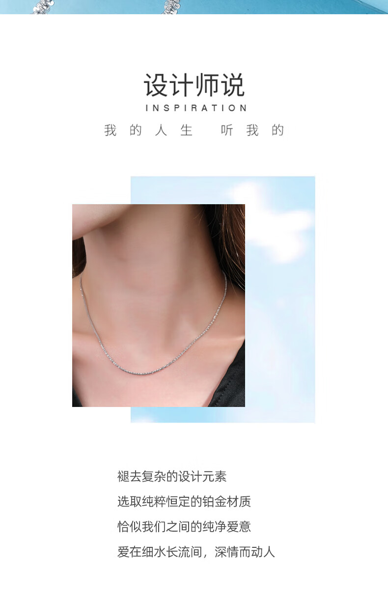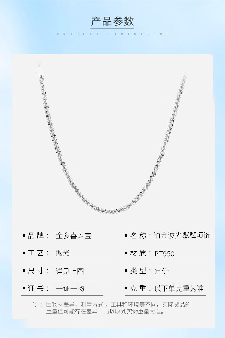 Jin Duoxi pt950 platinum necklace plain chain women's platinum necklace women's clavicle chain versatile starry sparkling neck necklace 41cm long and weighing about 5.1-5.3 grams