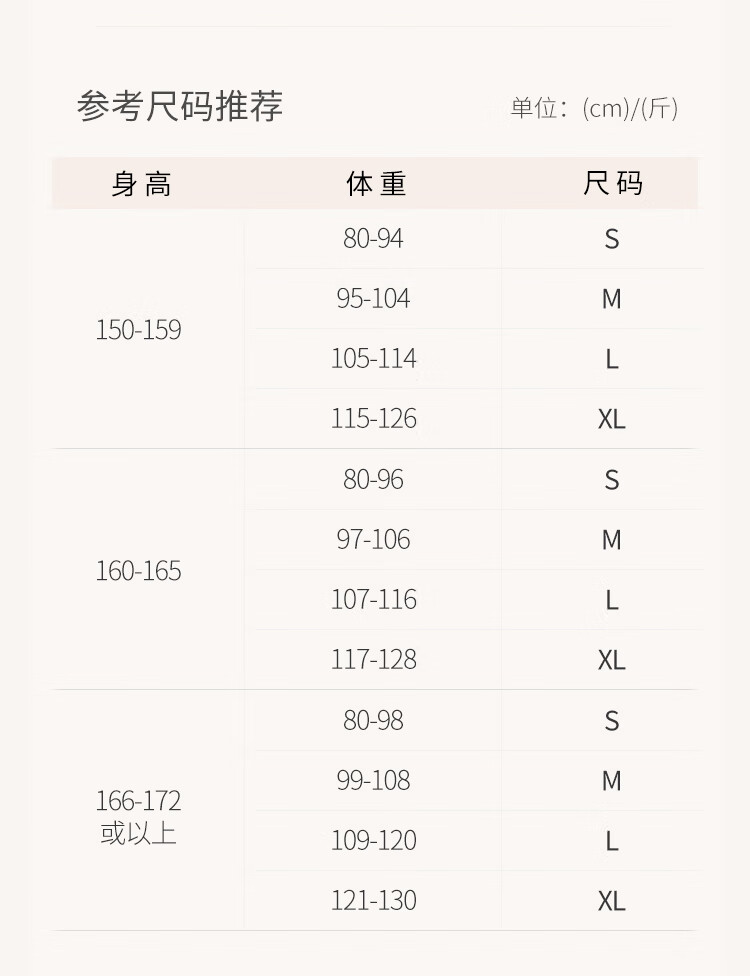 China (cm) 160-165/84-86 165-170 / 88-90 167-172 / 92-96 168-173 / 98-102 170-176 / 106-110