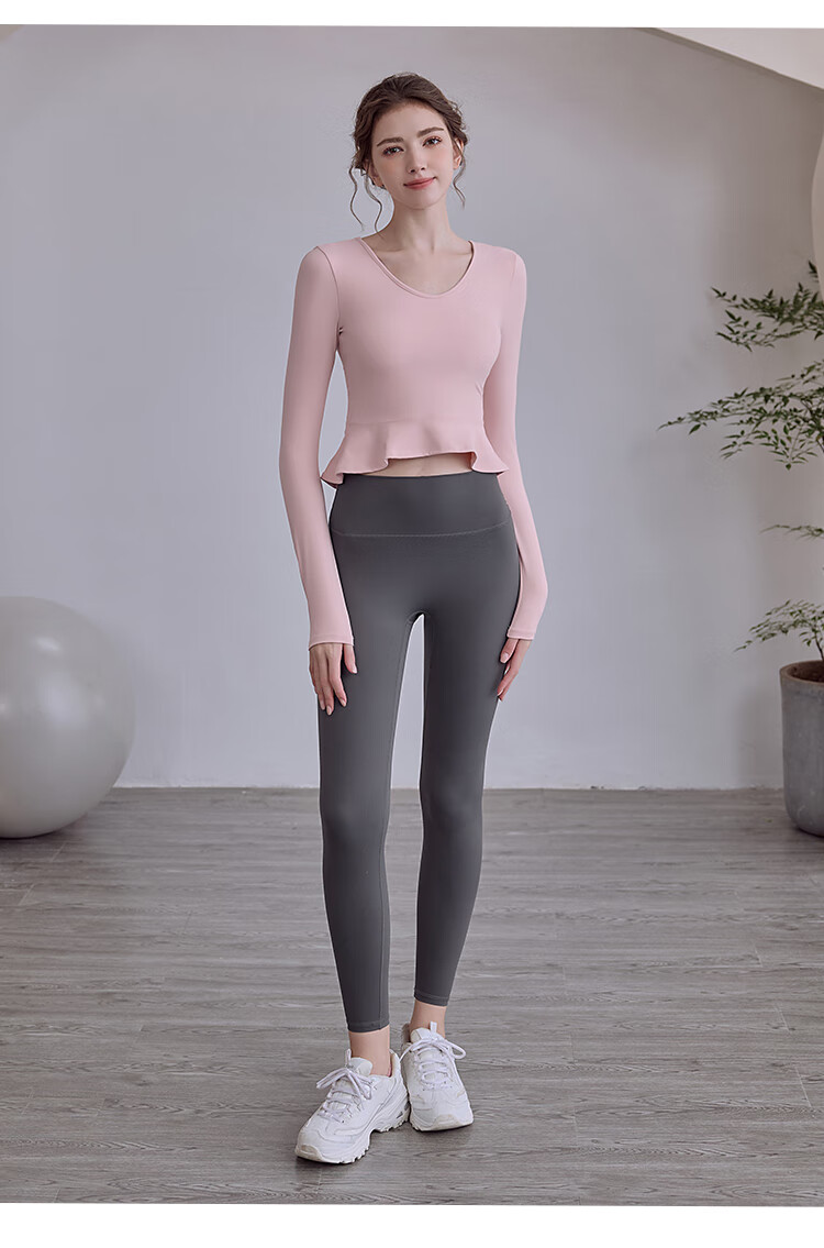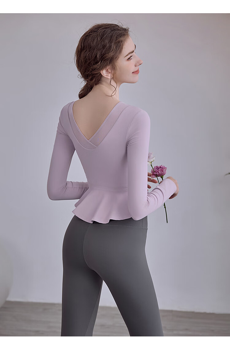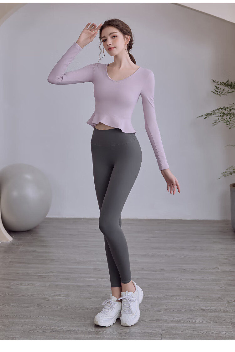 LULULMCCTN yoga clothes for women 2025 new tops with chest pads, high-end spring and summer Pilates training and fitness suits, hyacinth purple long sleeves L