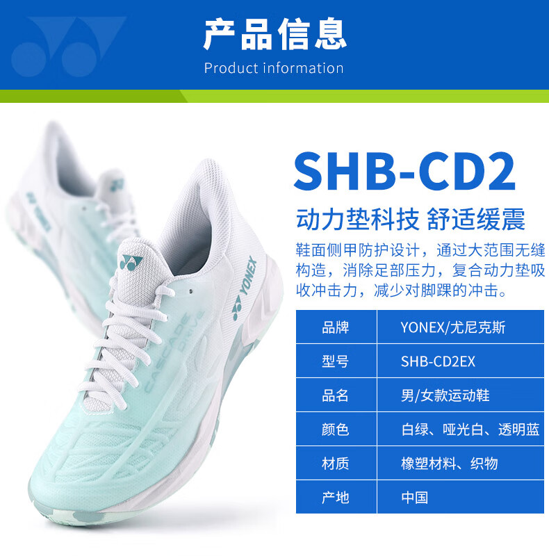 YONEX Yonex badminton shoes men's and women's professional sports shoes SHBCD2EX anti-slip breathable shock-absorbing new style SHBCD2EX matte white 37