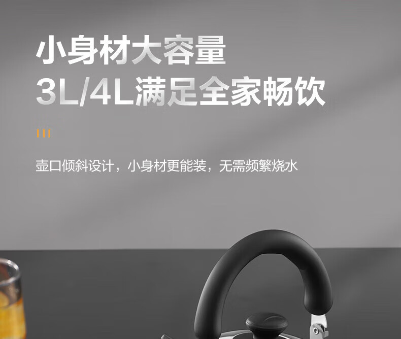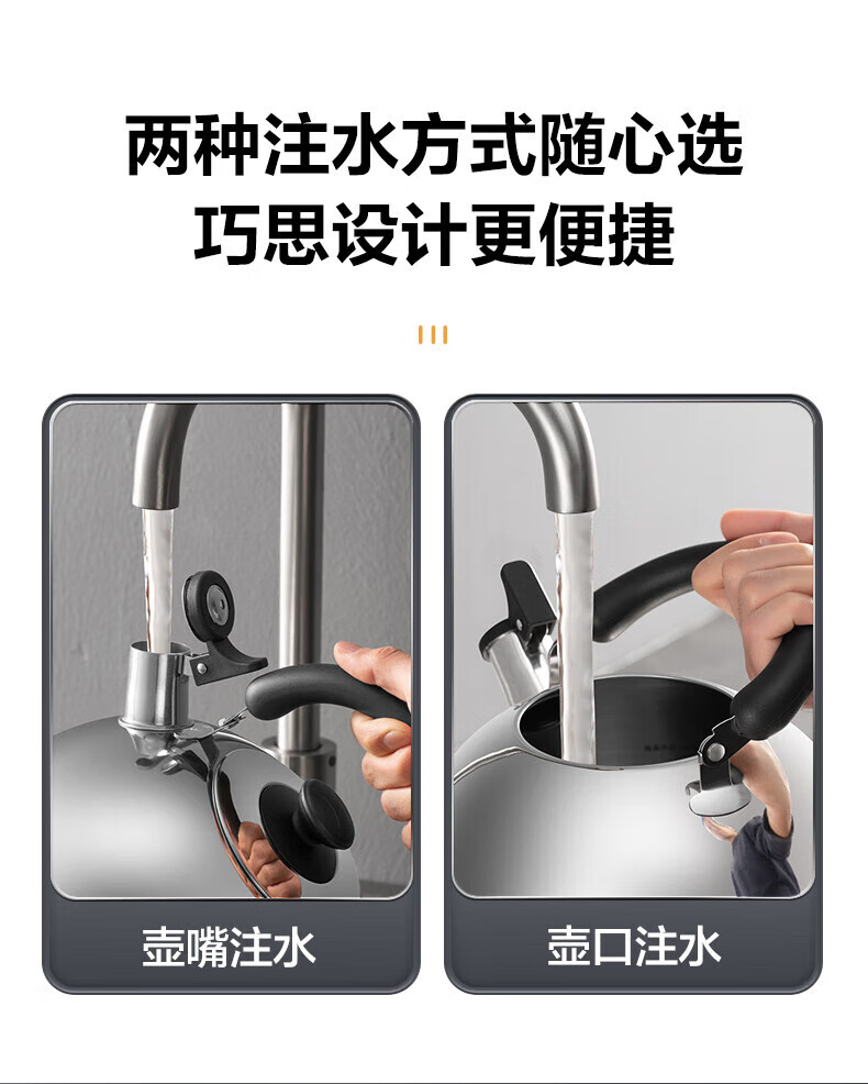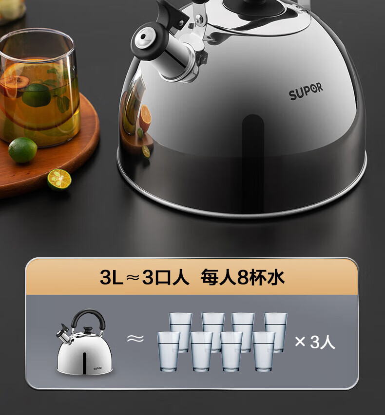 Supor kettle 304 stainless steel whistle 3L/4L large capacity household hot water kettle open flame kettle for gas stove stainless steel whistle kettle 4L