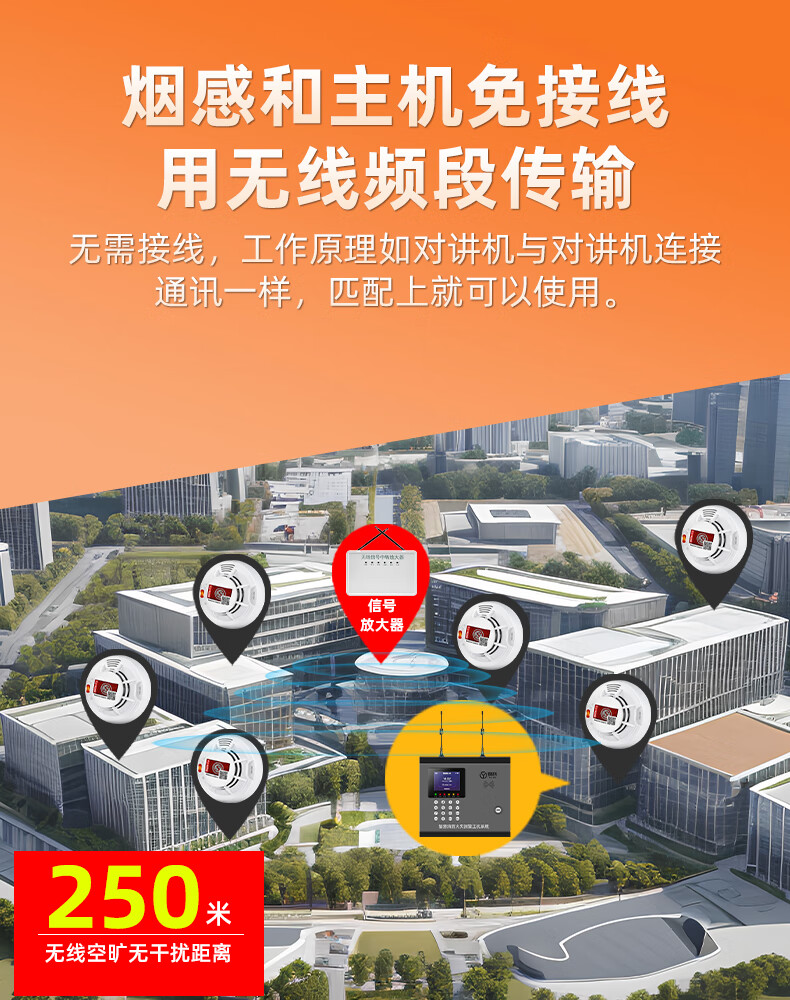 Wireless smoke alarm, dedicated for fire protection, commercial fire sensor detection, intelligent remote networked smoke sensor, fire certification, alarm host + 30 wireless smoke sensors