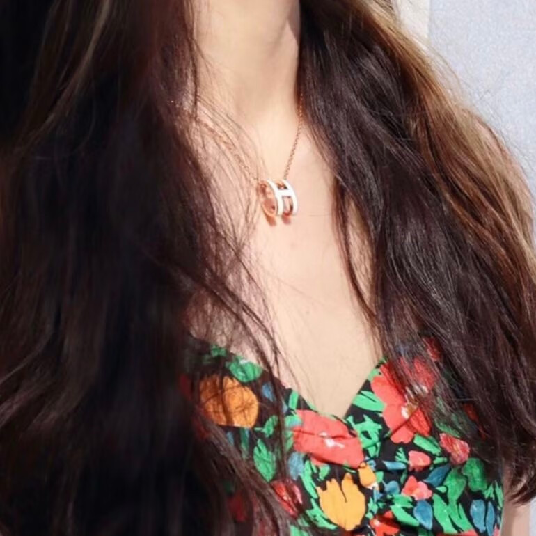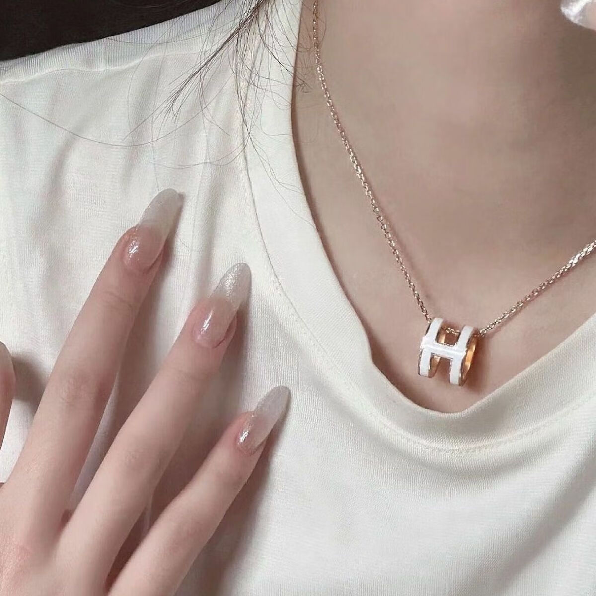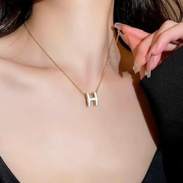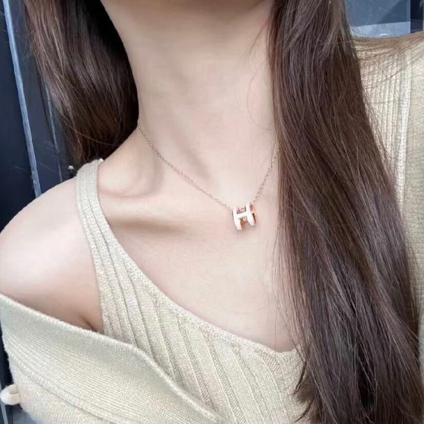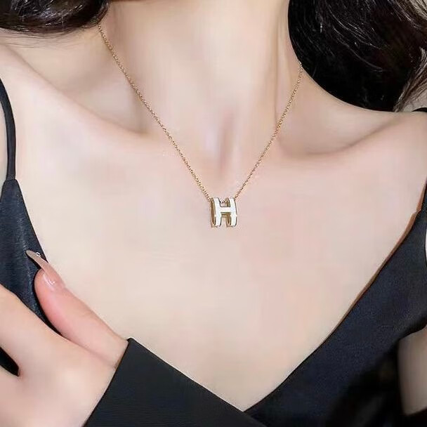 GIOIO Swarovski zirconium electroplating 18k Hermès H letter necklace women's non-fading clavicle chain sweater same style