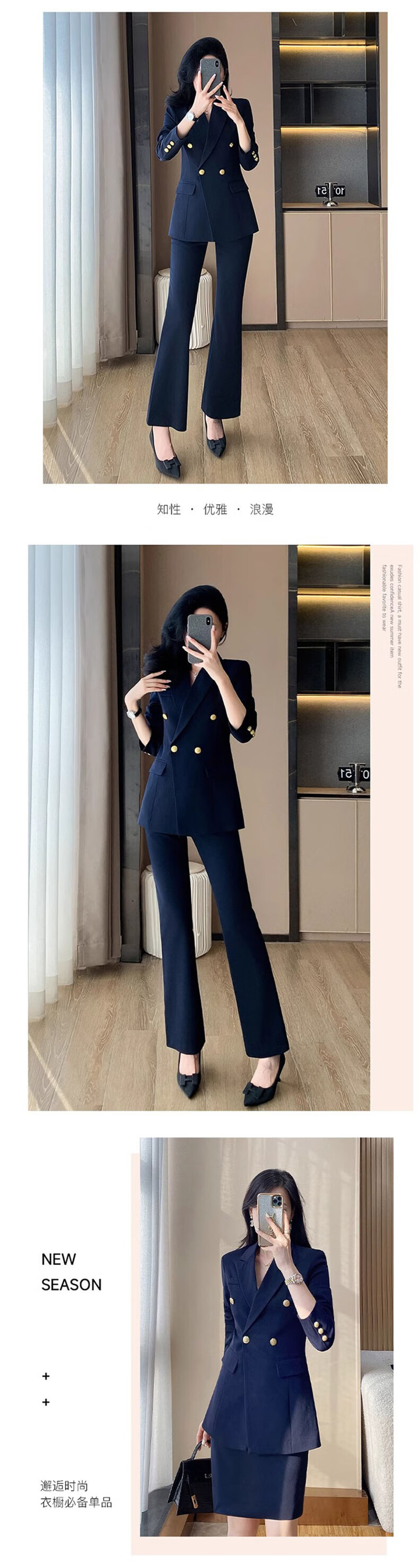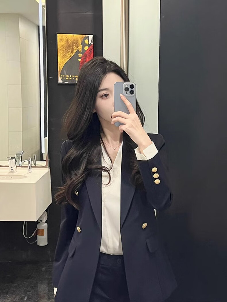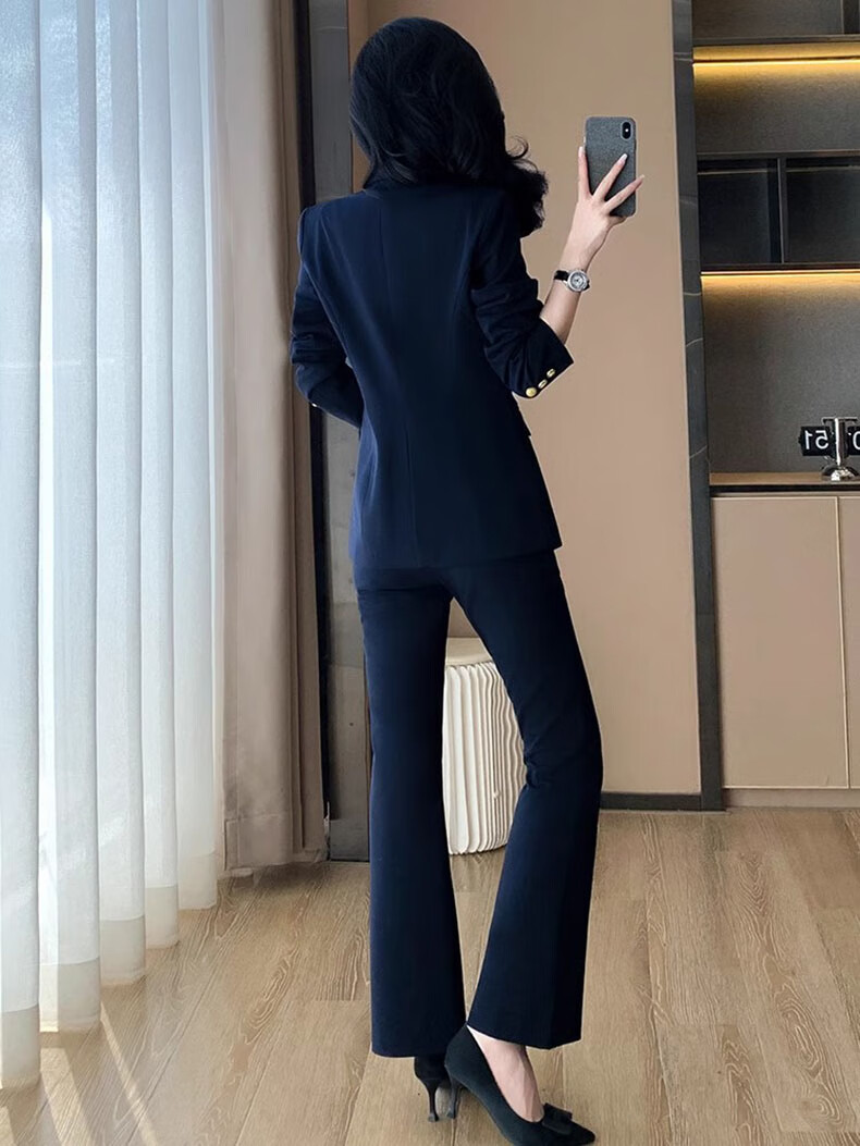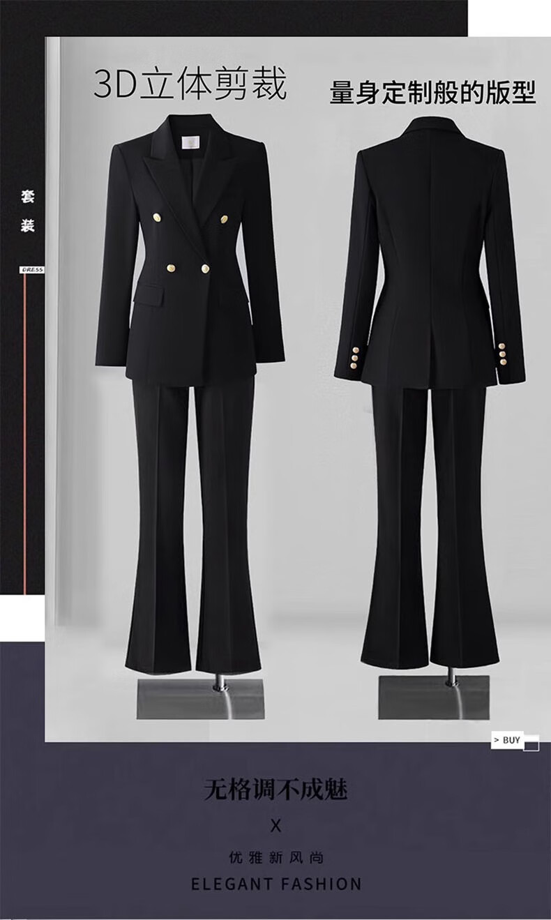 Punizi suit suit for women 2025 spring and autumn new temperament interview work clothes professional wear formal high-end suit jacket black suit + wide-leg pants L