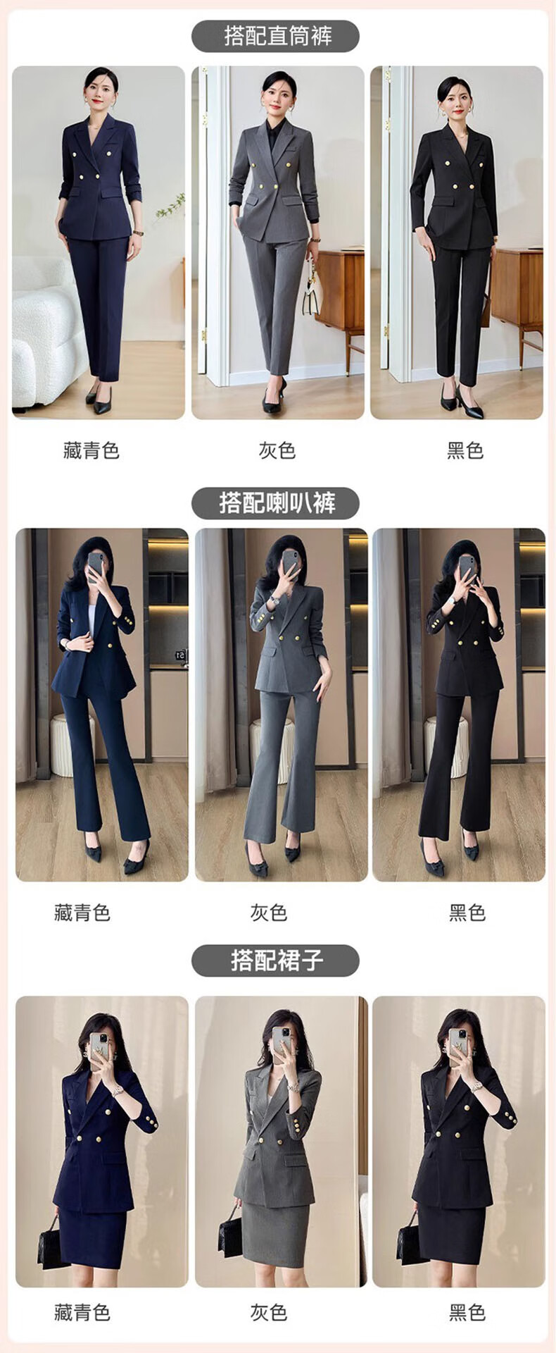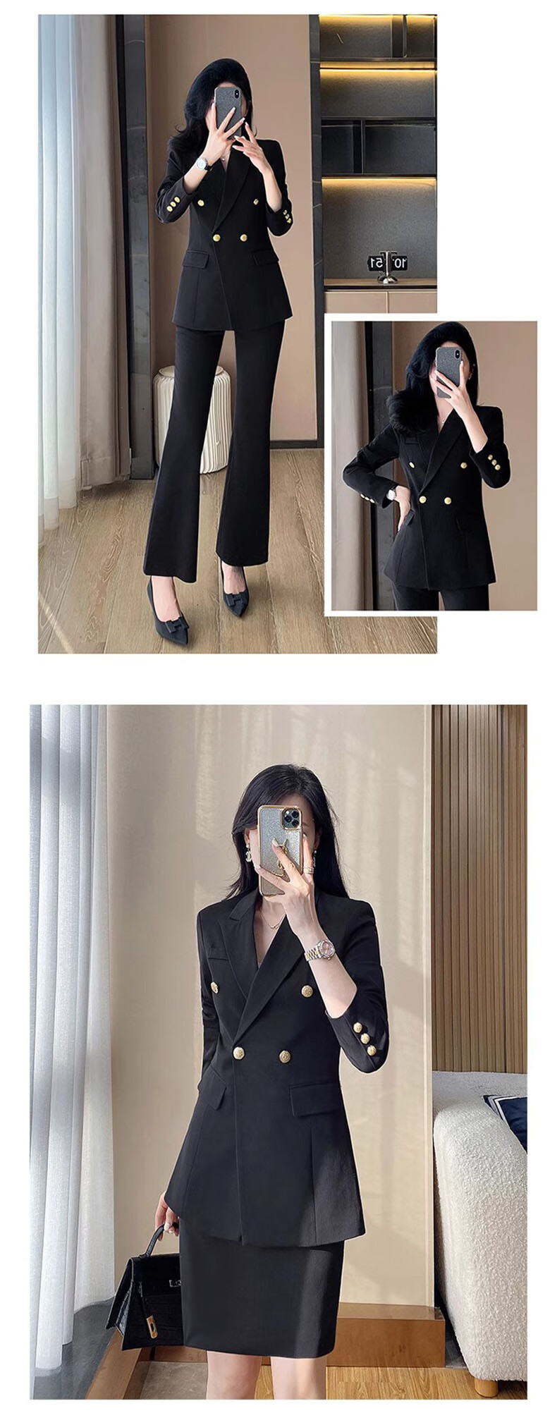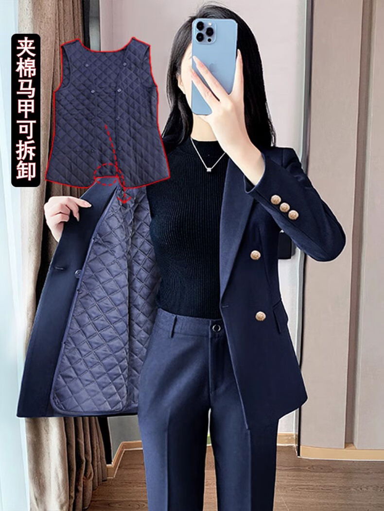 Punizi suit suit for women 2025 spring and autumn new temperament interview work clothes professional wear formal high-end suit jacket black suit + wide-leg pants L