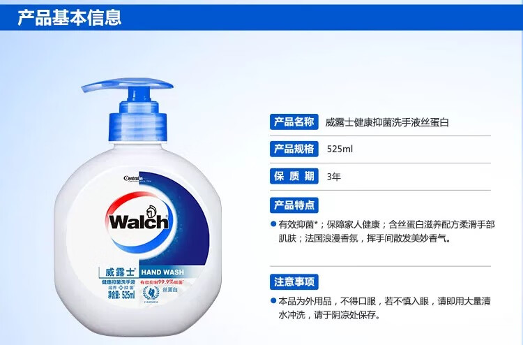 WALCH Walch Healthy Antifungal Silk Protein Hand Sanitizer Home Furnishing Home Foam Rich Kindergarten Hotel Wholesale Double Care Moisturizing 525ml 2 Bottles Lotion Style