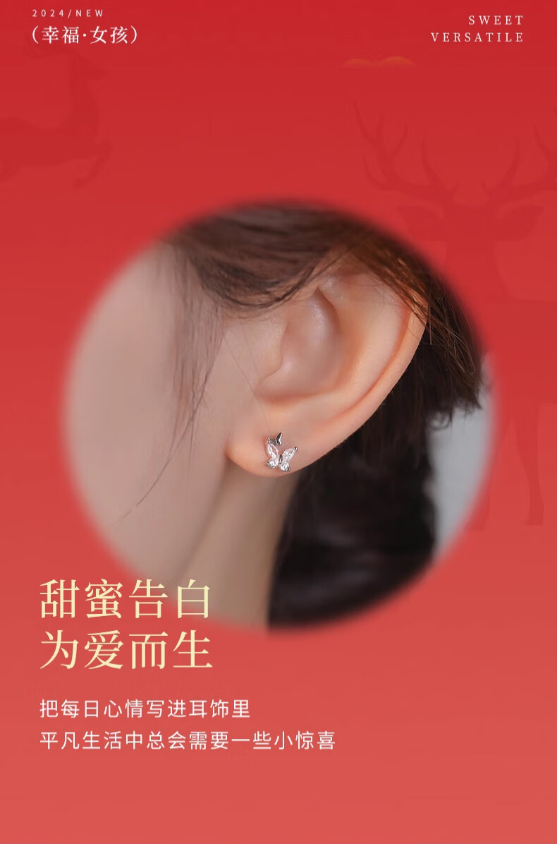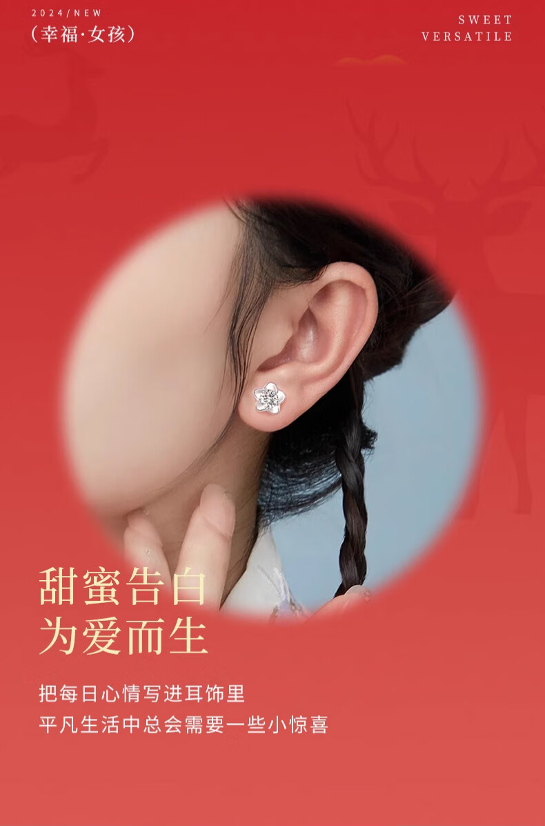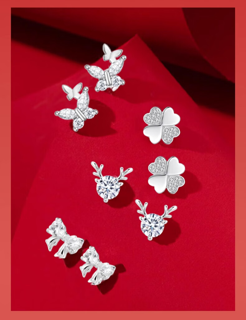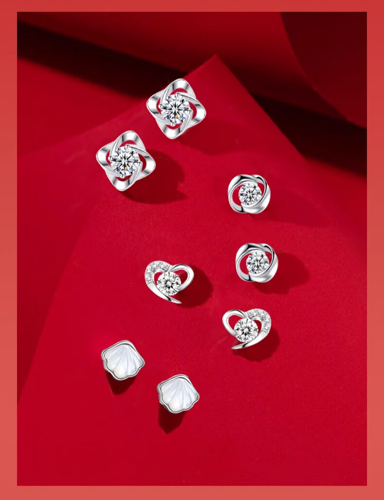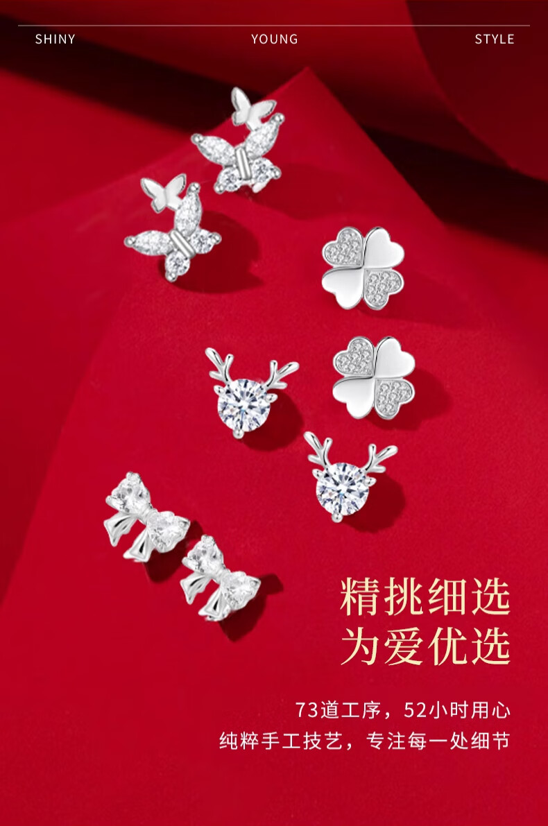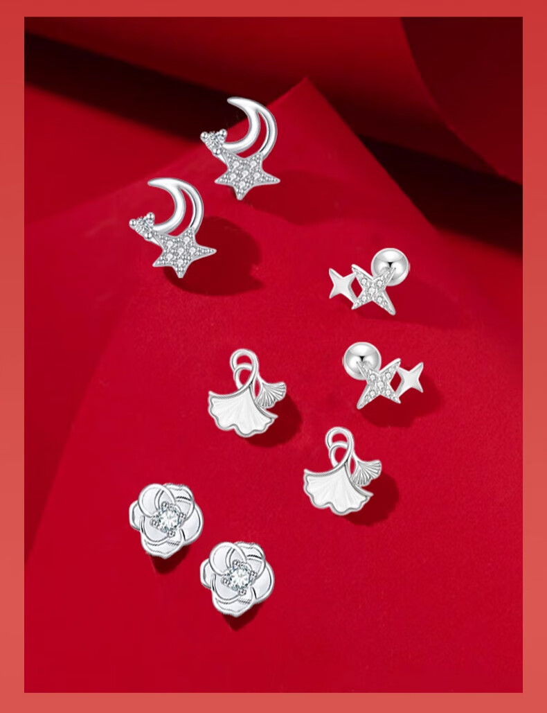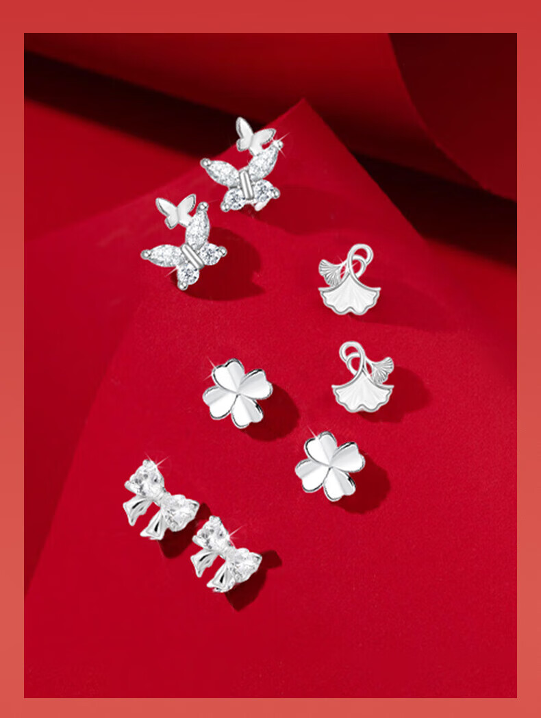 CHINA GOLD Pure Silver Necklace 925 Silver Earrings One Week Earrings Earrings High-end Light Luxury Jewelry Practical Birthday Gifts for Valentine's Day Recommended Birthday Gifts One Week Earrings - Seven Pairs