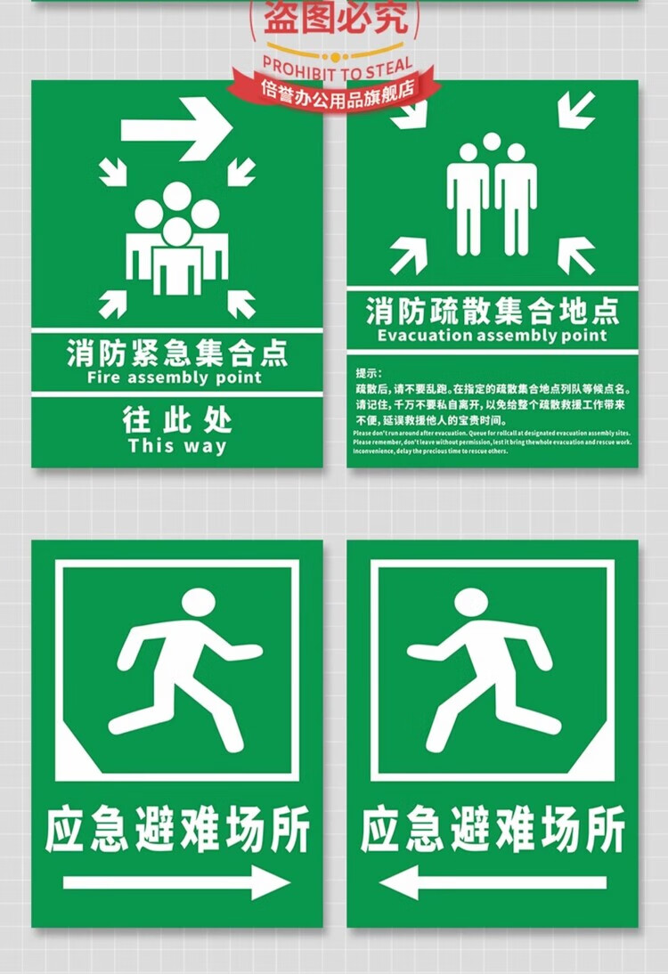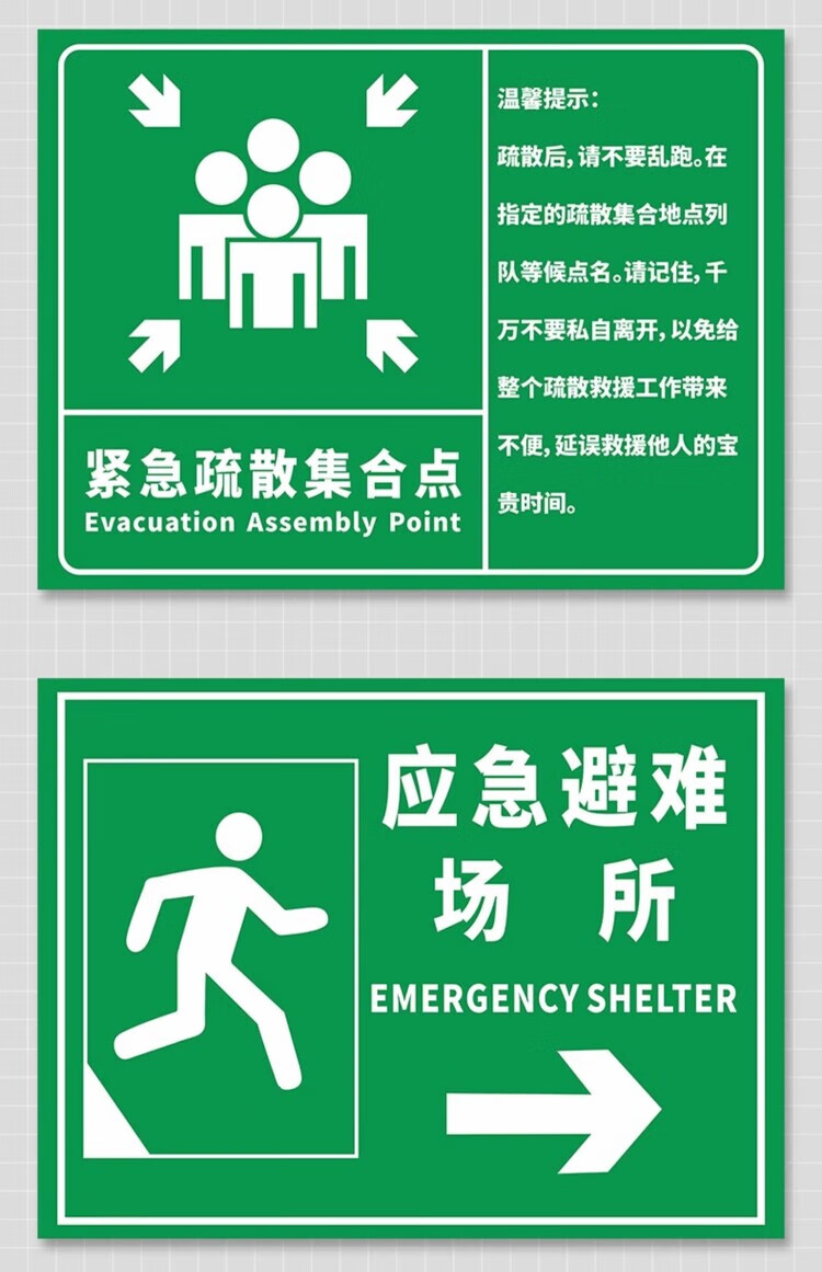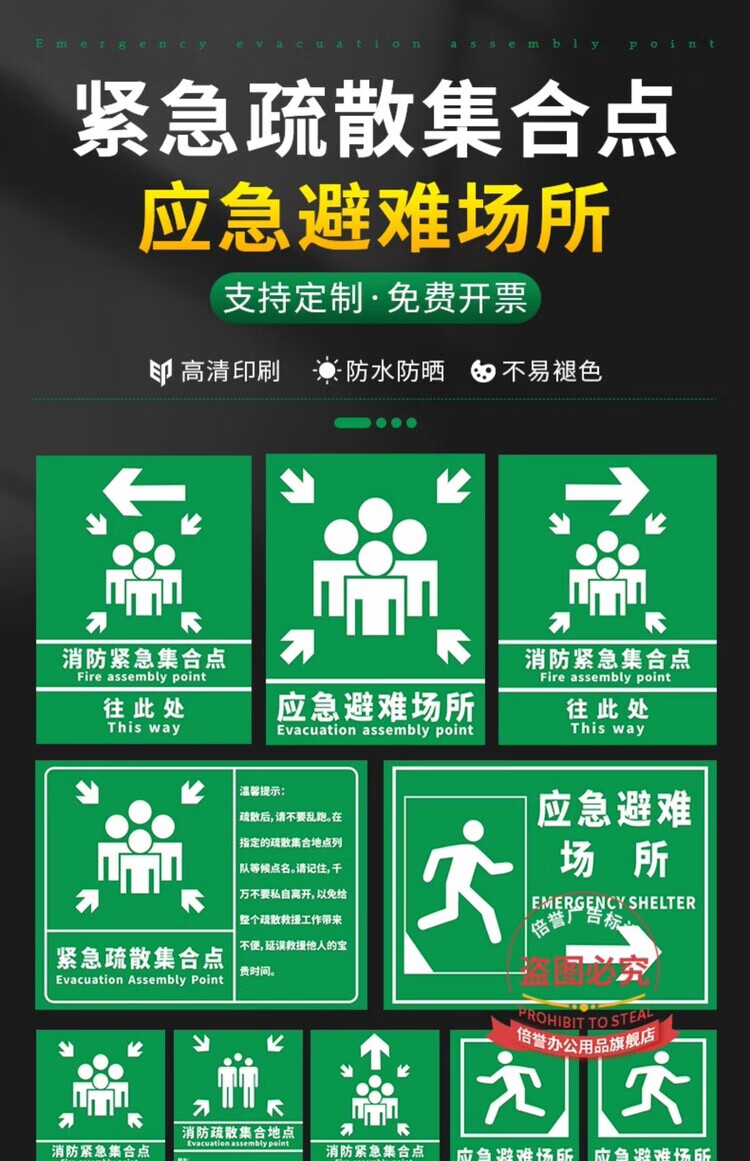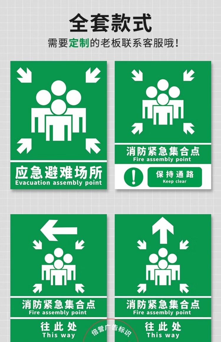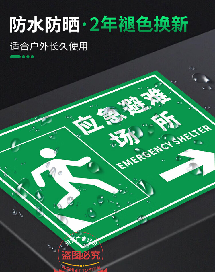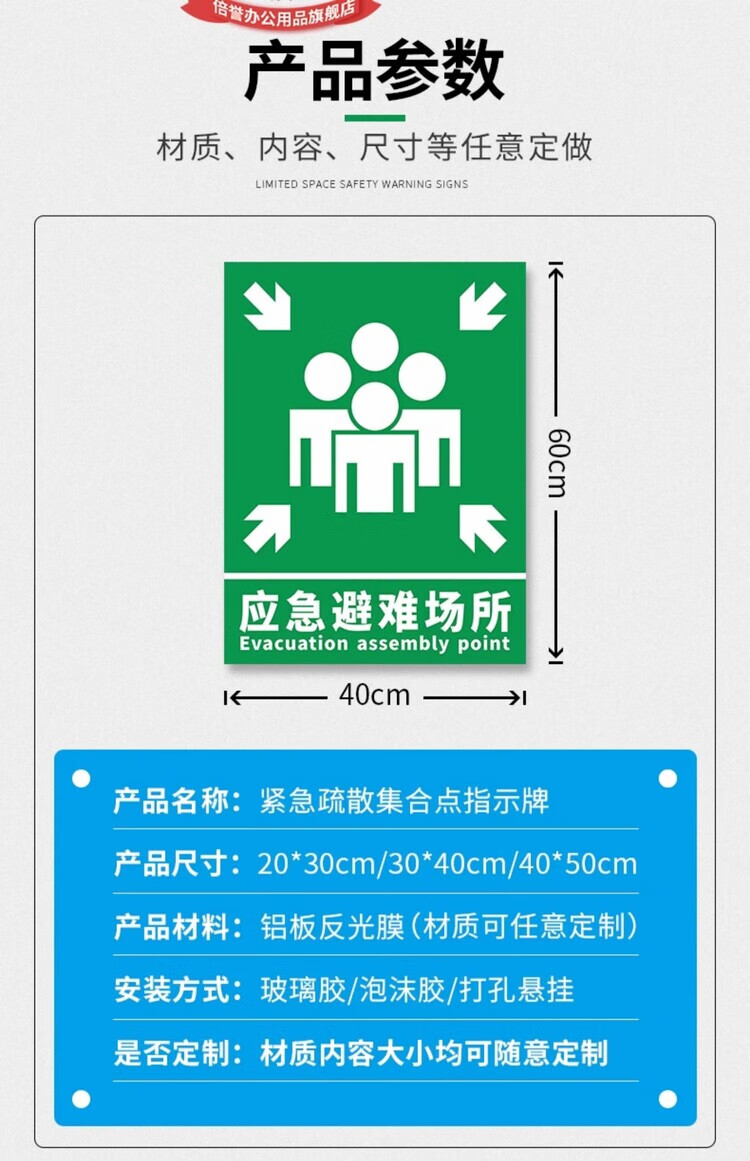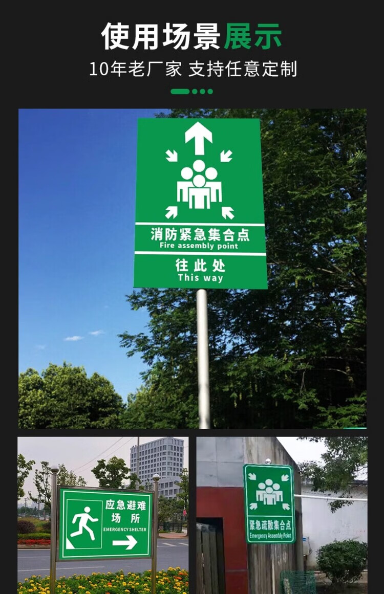 Emergency evacuation assembly point sign, emergency shelter sign, fire safety escape prompt sign, disaster prevention and reduction evacuation route notice sign, customizable emergency evacuation assembly point aluminum plate + chute hoop + 1.5 meter column 30x40cm