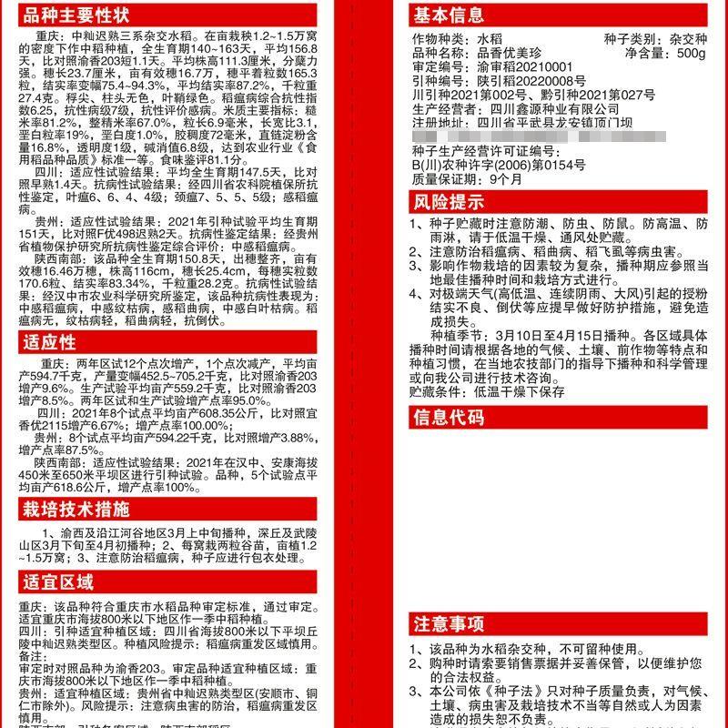 High-yield first-grade fragrant rice rice seeds, fragrant and elegant, hybrid rice, disease-resistant and lodging-resistant fragrant rice, long-grain rice, large ear length/intense ears/first-grade fragrant rice 1 bag 1Jin Jin is equal to 0.5 kg