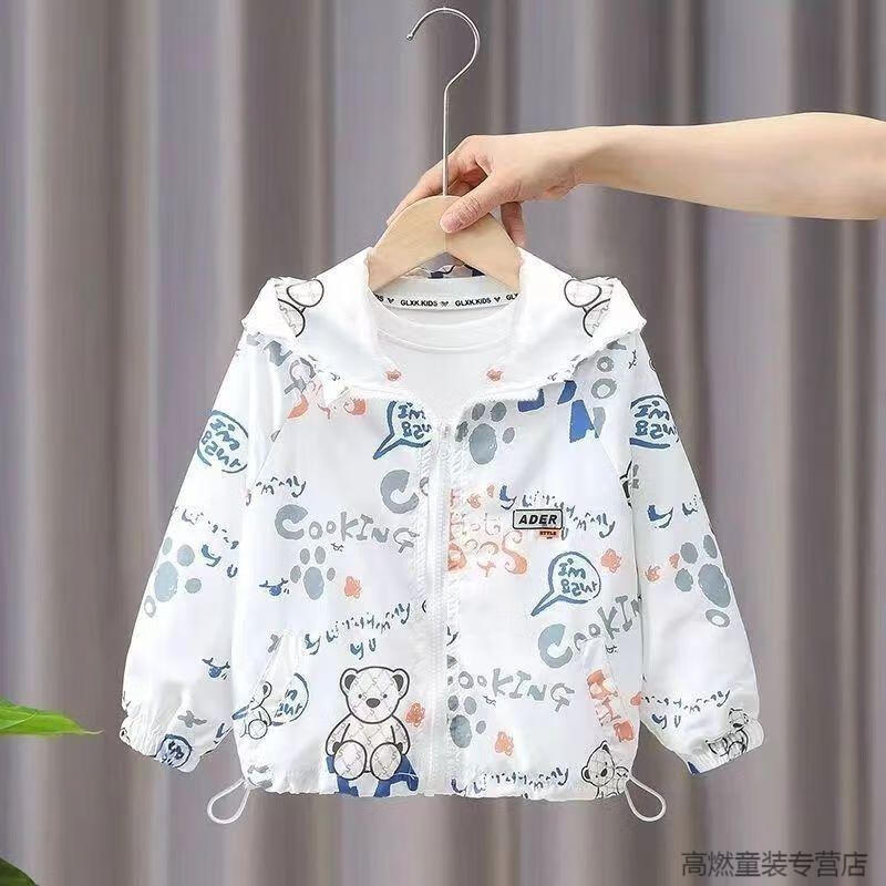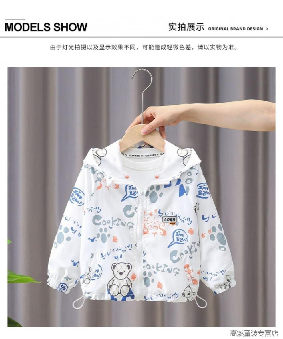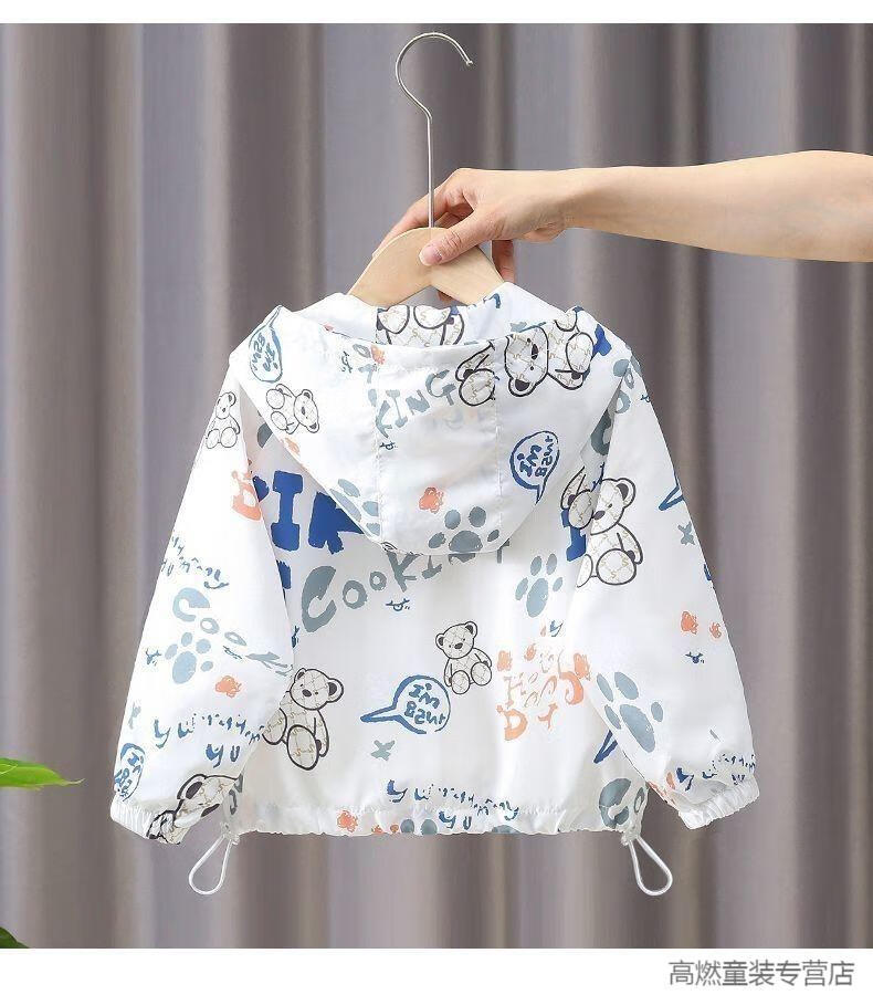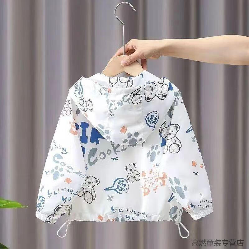 G.DUCKKIDS children's clothing boys summer breathable sun protection clothing jacket 2025 new little boy summer baby thin sun protection clothing white Lazy Bear sun protection clothing 120 recommended height 110 cm
