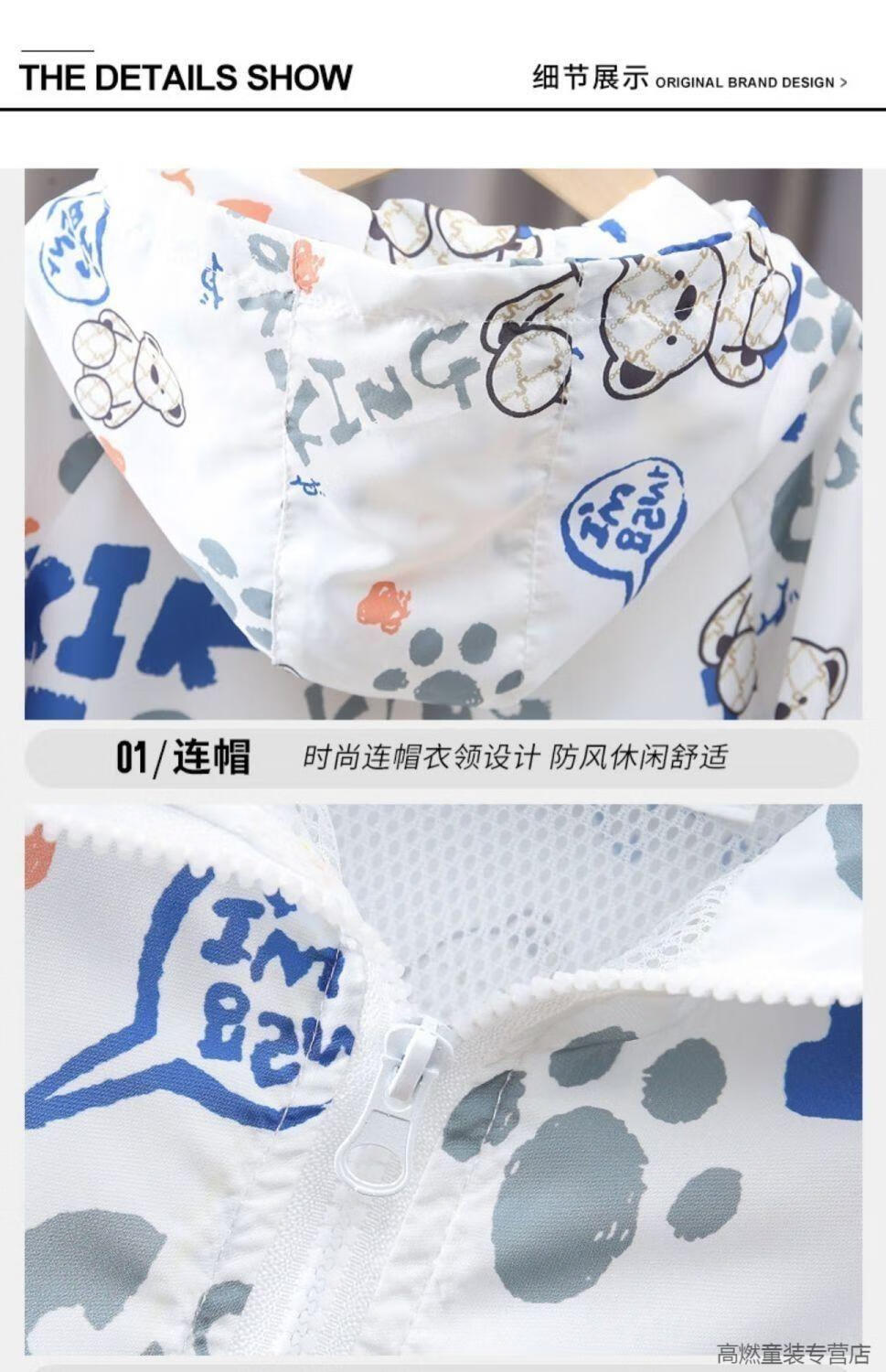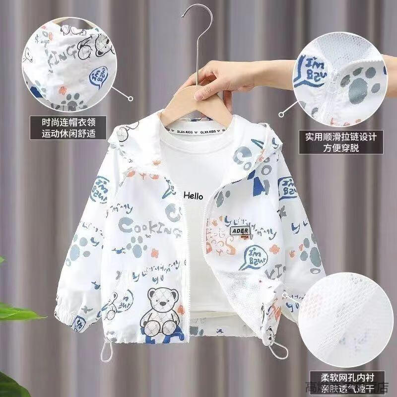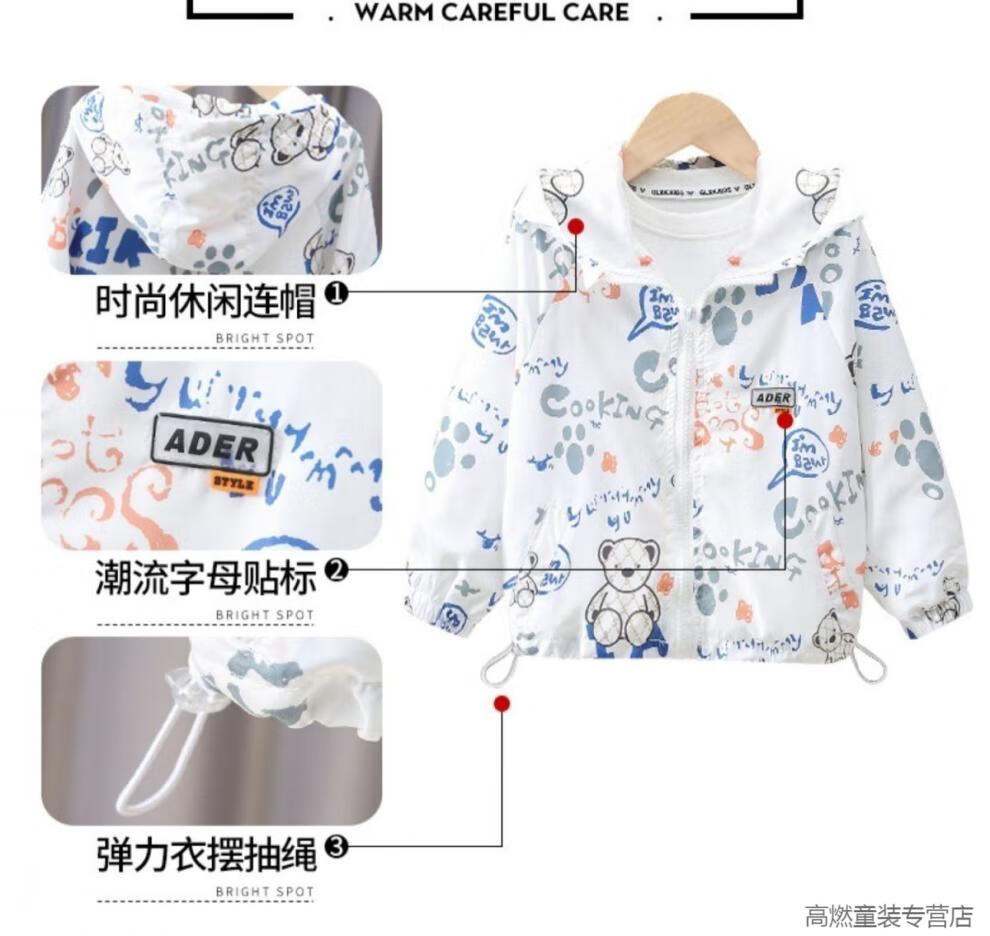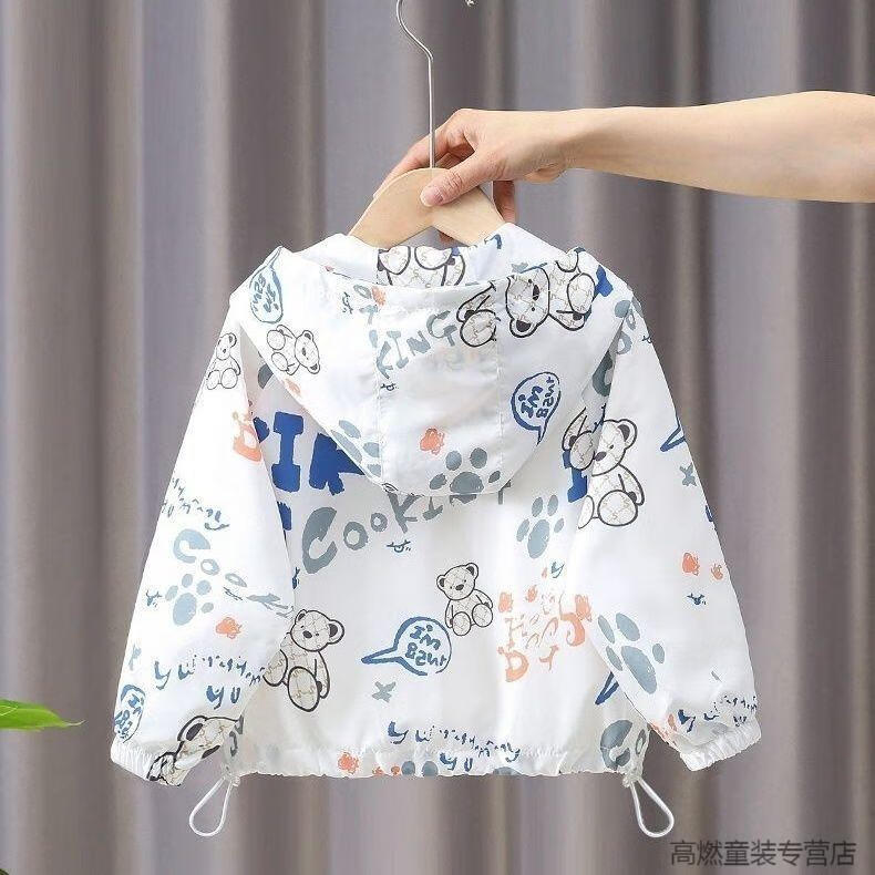 G.DUCKKIDS children's clothing boys summer breathable sun protection clothing jacket 2025 new little boy summer baby thin sun protection clothing white Lazy Bear sun protection clothing 120 recommended height 110 cm