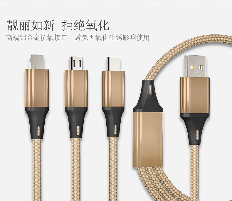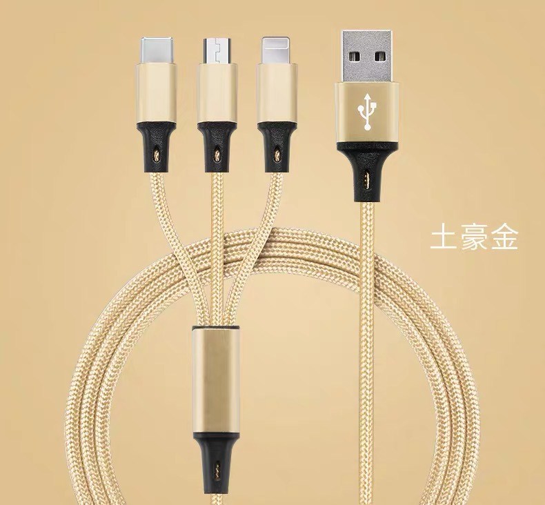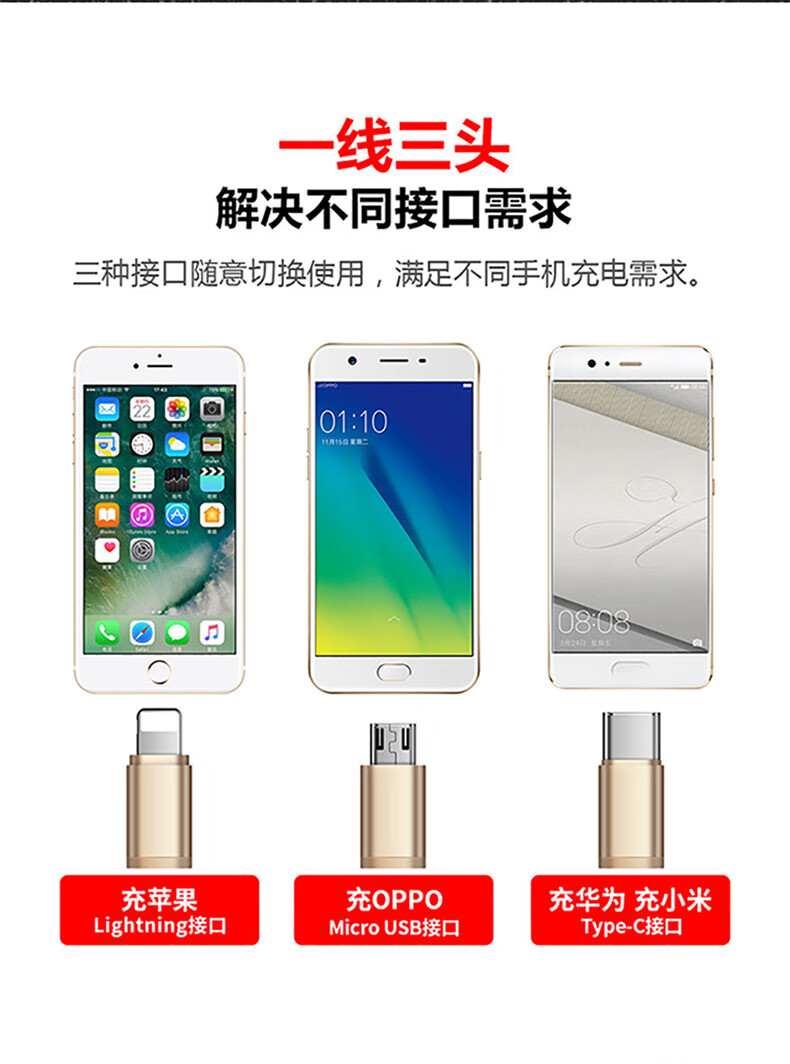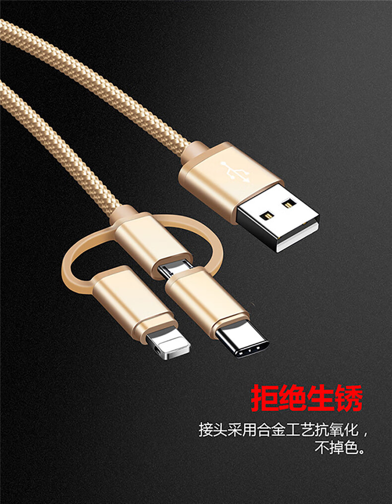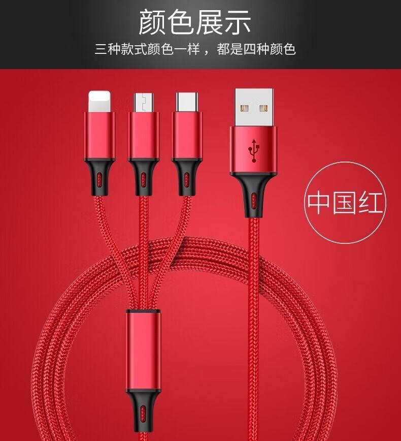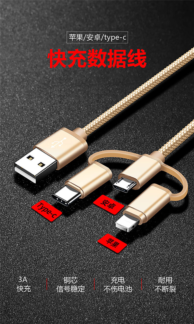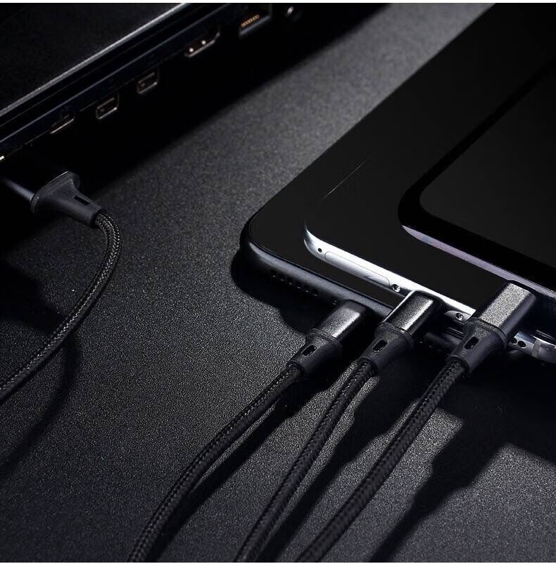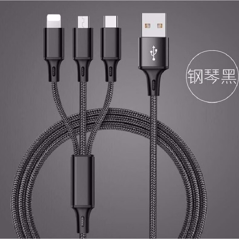 Diku 20W one-to-three multi-function fast charging data cable three-in-one charging cable mobile phone Apple Android type-c portable car suitable for Huawei Xiaomi multi-function power cable Apple/Type-c/Android three-in-one piano black
