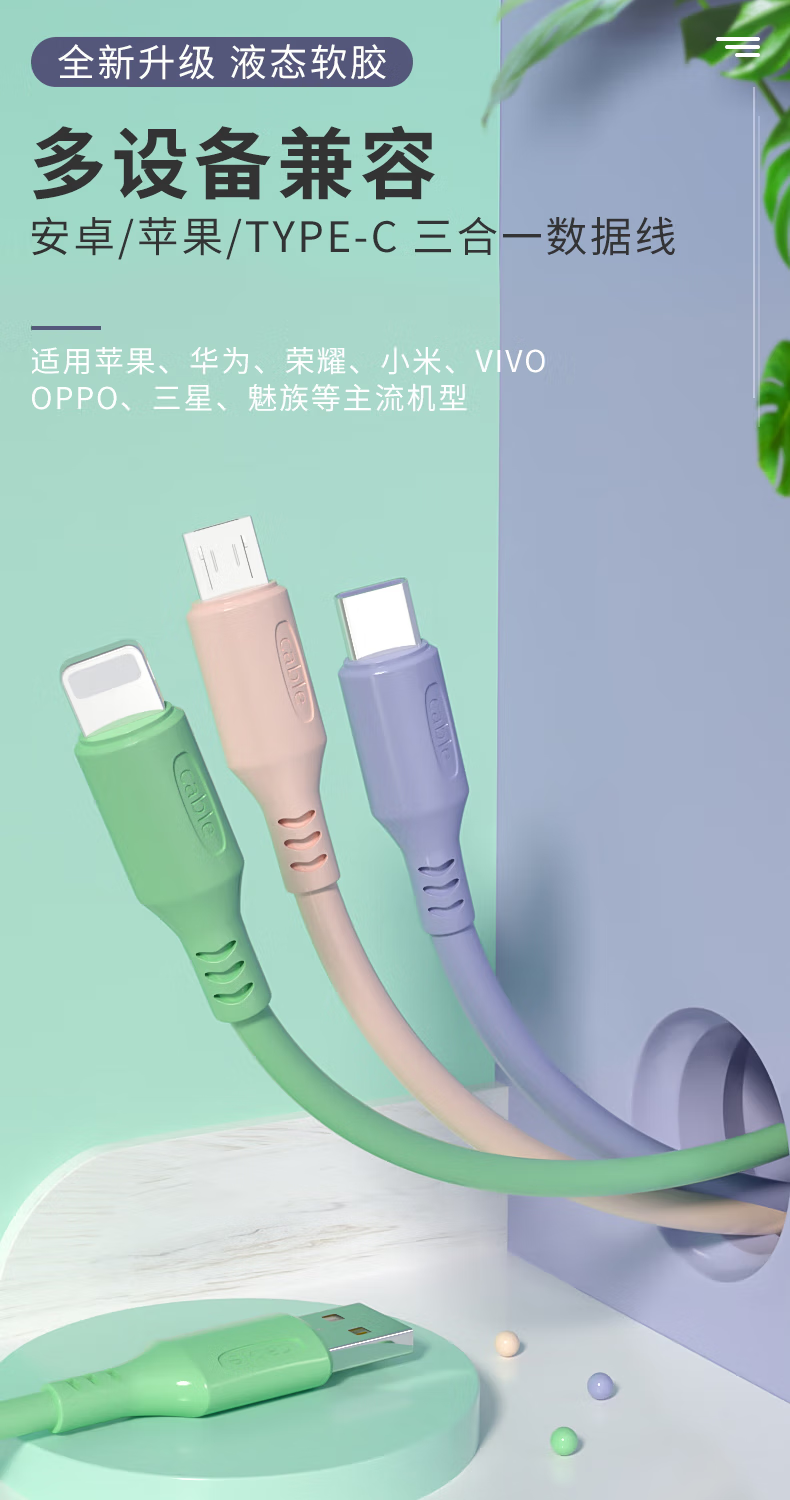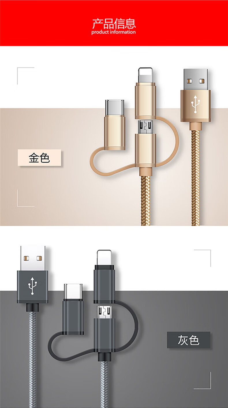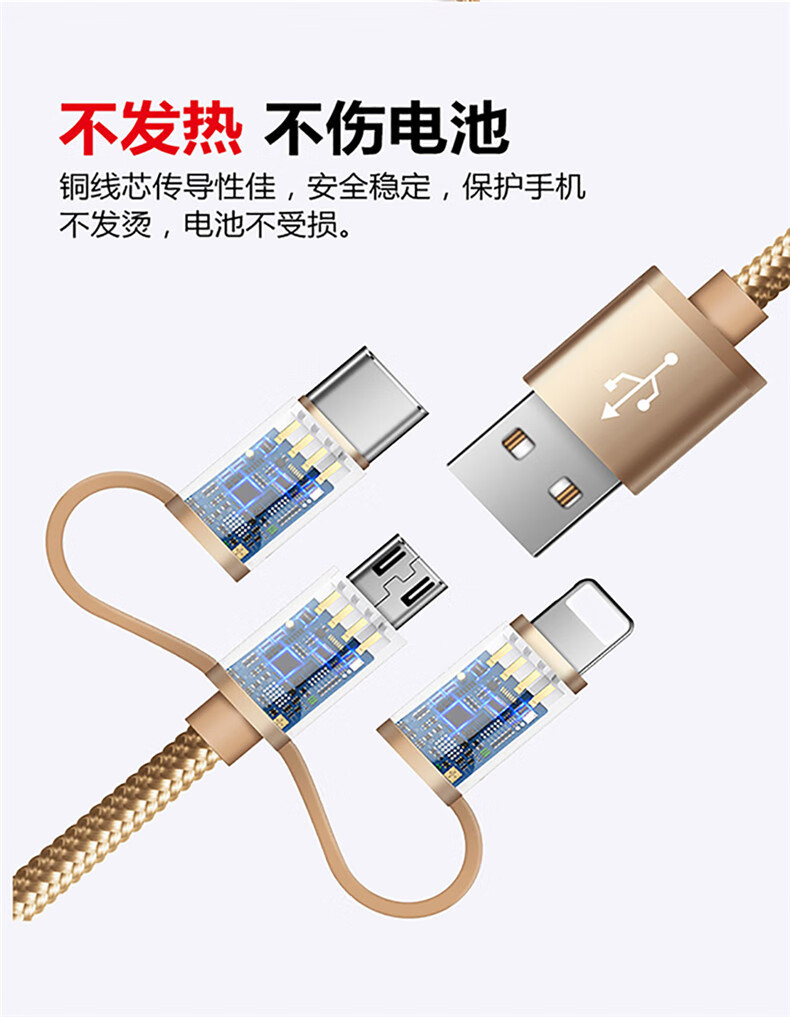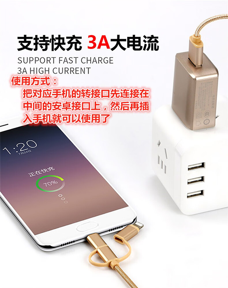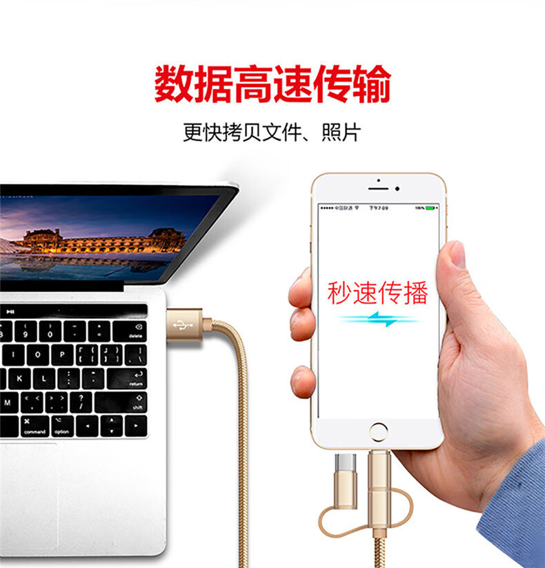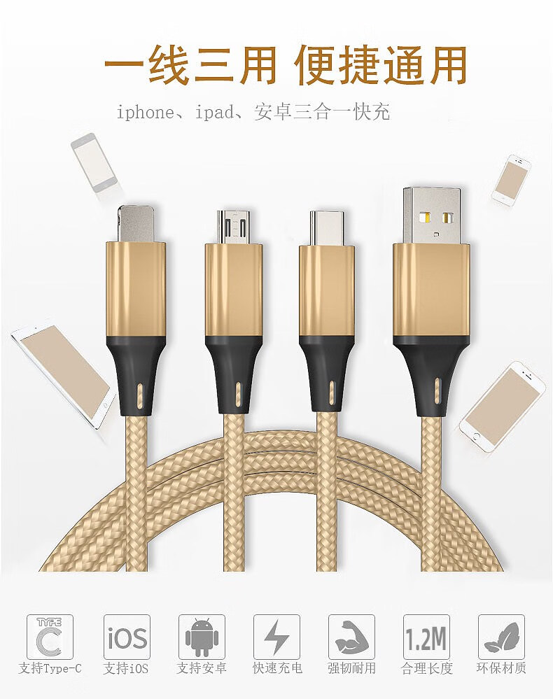Diku 20W one-to-three multi-function fast charging data cable three-in-one charging cable mobile phone Apple Android type-c portable car suitable for Huawei Xiaomi multi-function power cable Apple/Type-c/Android three-in-one piano black