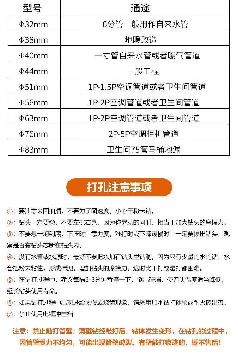Dongcheng material dry drilling drill bit fast 63 air conditioning concrete wall water drilling machine hole opener without adding dry drilling drill bit 56X370mm sharp level