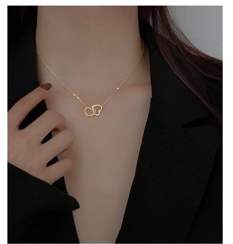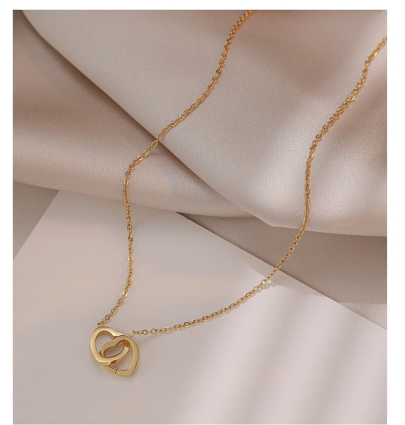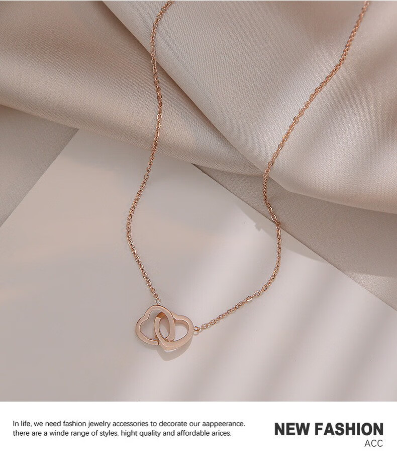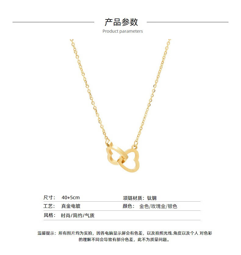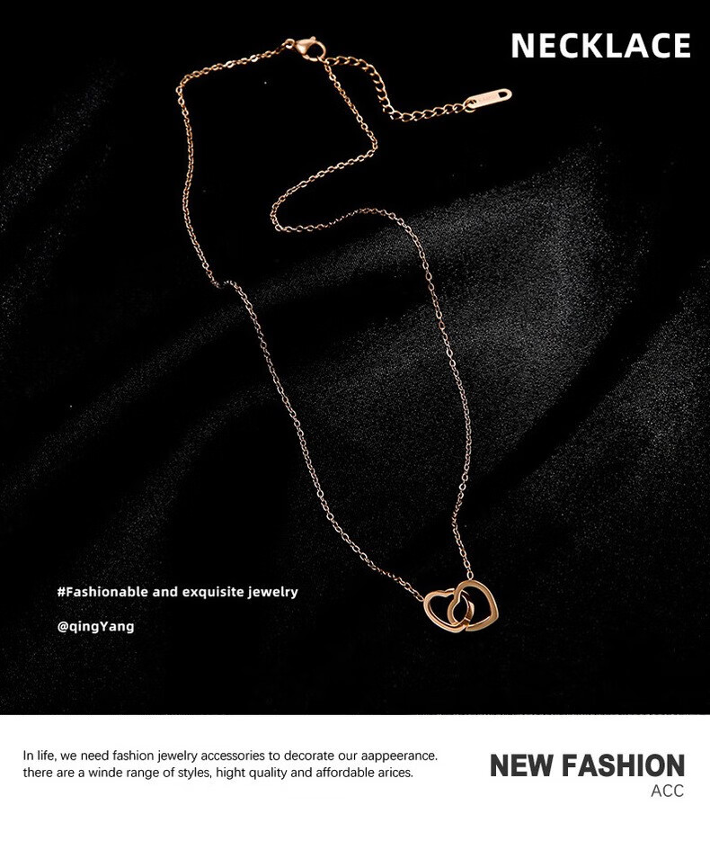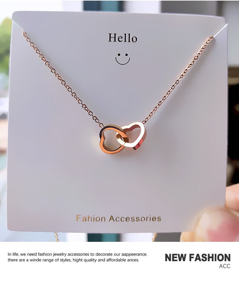 GIOIO Swarovski Zirconium Korean version 18k rose gold simple double ring love clavicle chain titanium steel does not fade the same style rose gold