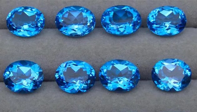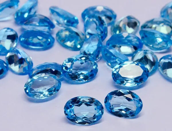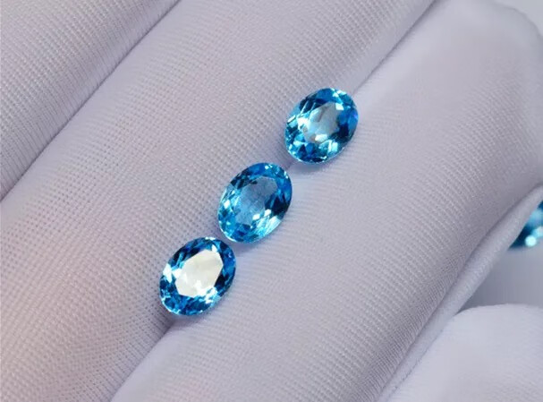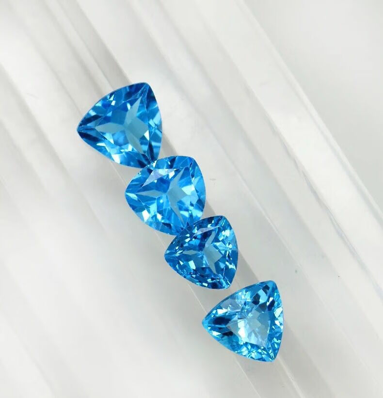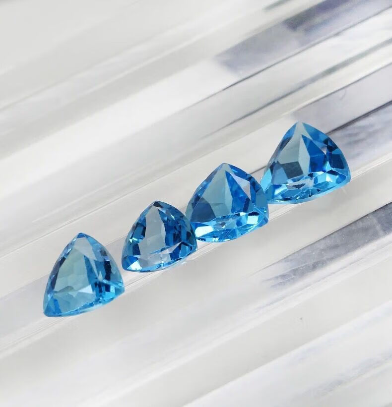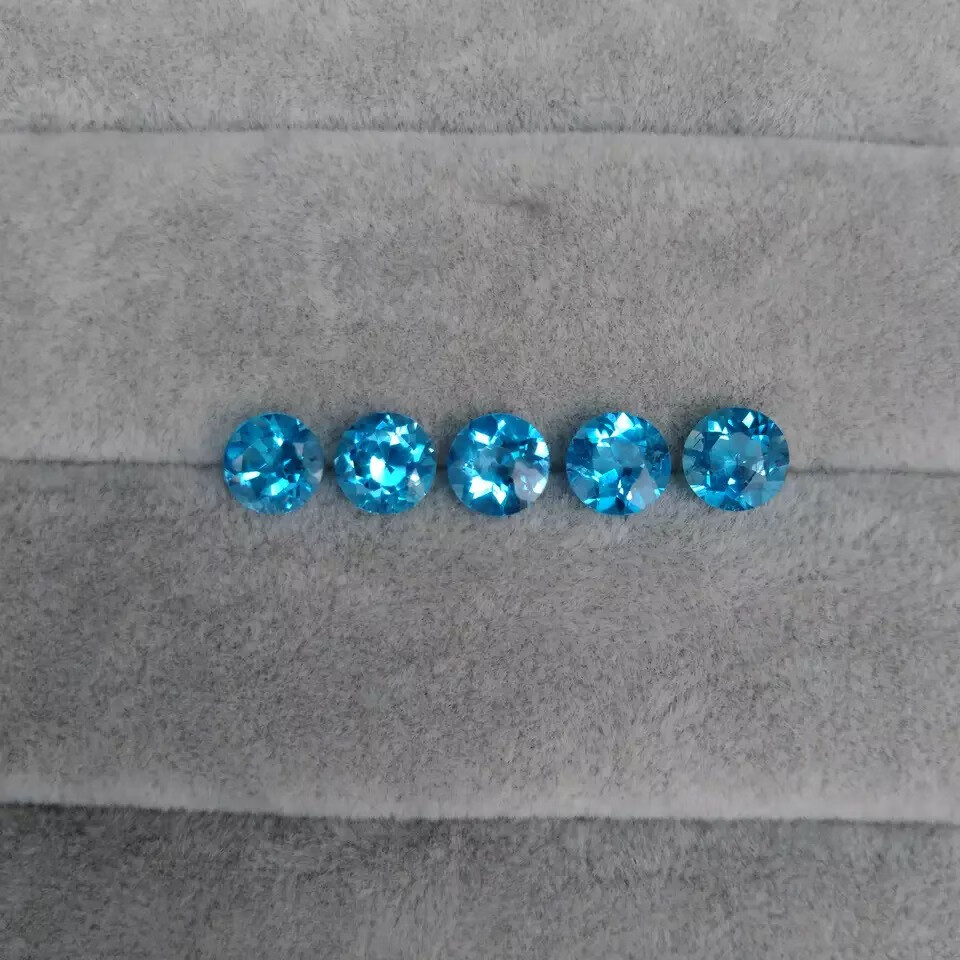 Shuque natural blue topaz Swiss blue sky blue oval water drop round ring surface bare stone completely clean DIY round 4*4