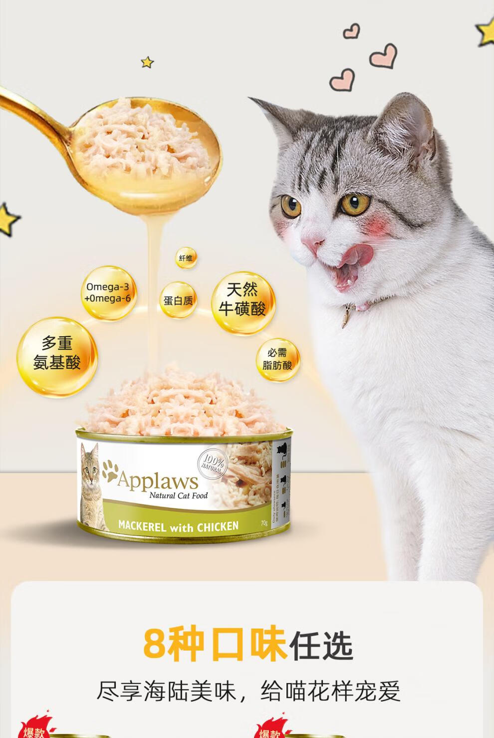 Applaws canned cat snacks, nutritious and hydrating wet food, canned tuna and crab meat flavor 70g*12 cans