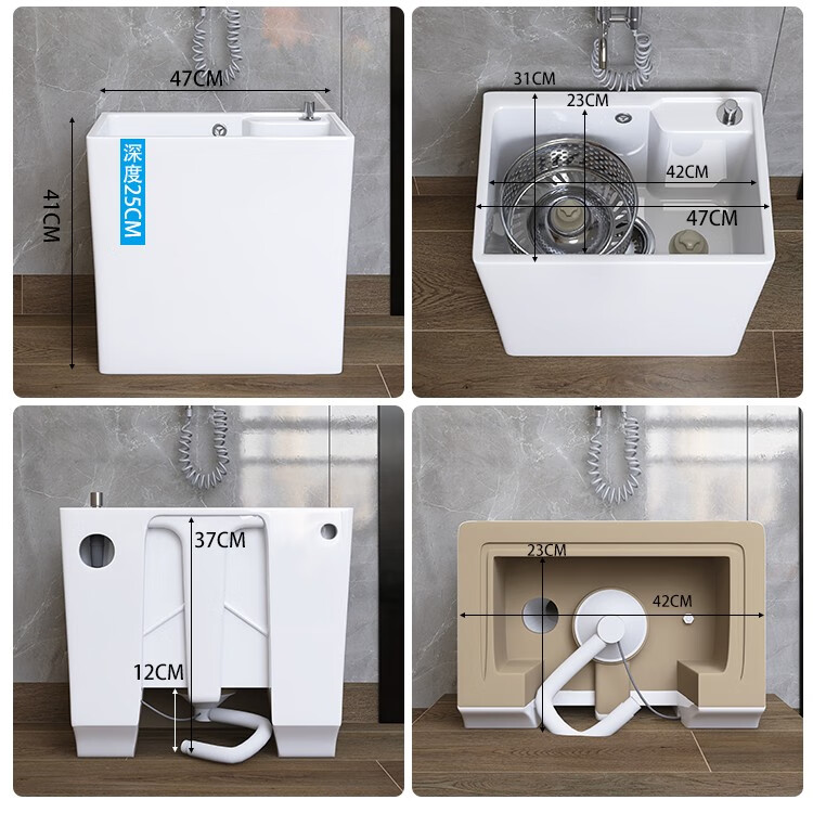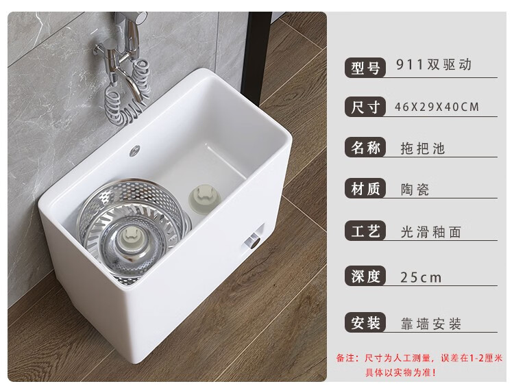 Arrow ARROW balcony mop pool dual-drive ceramic large floor mop bucket washing mop pool rotating small mop pool household floor-standing 408 ordinary model bottom + left and right drainage
