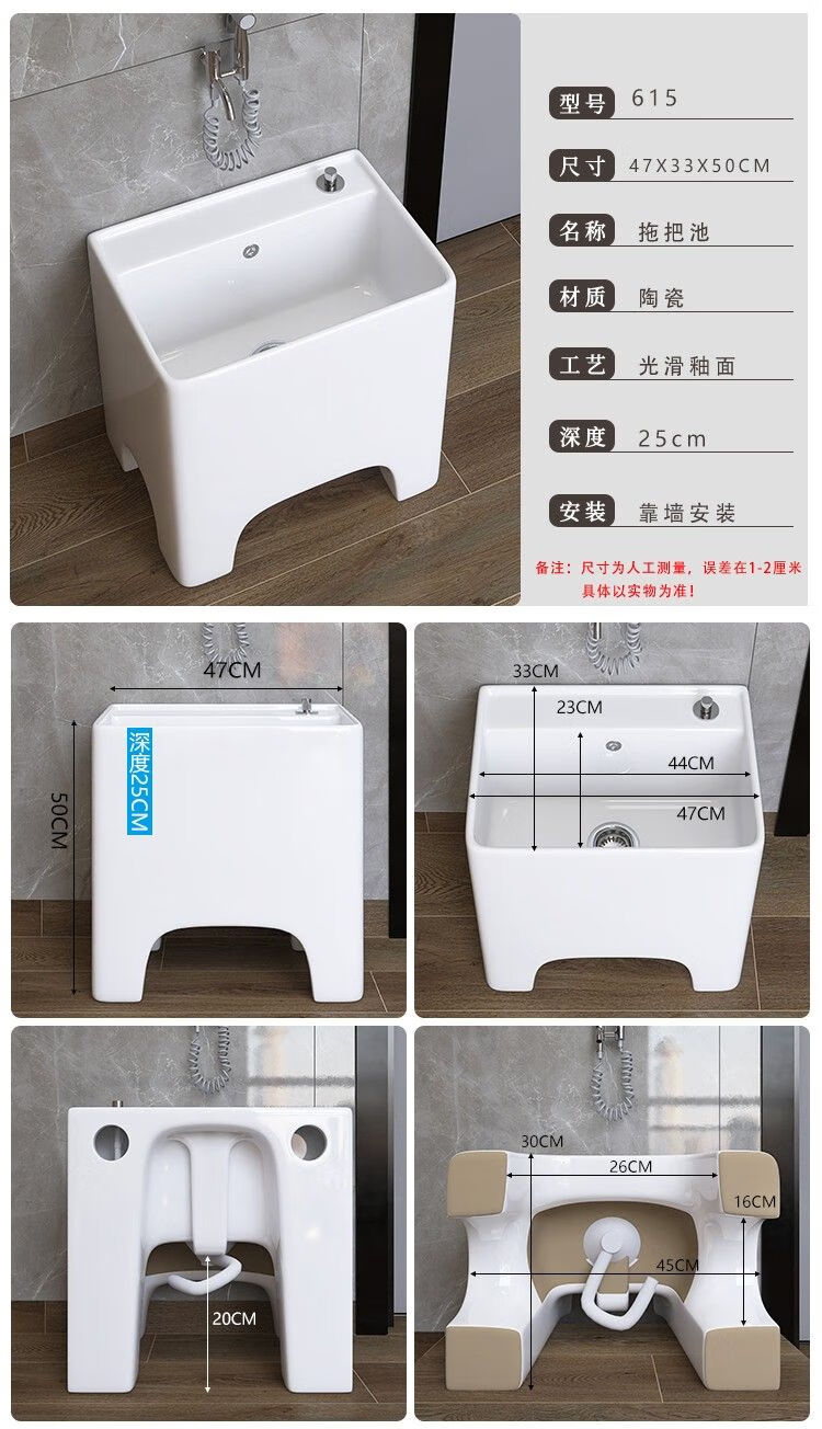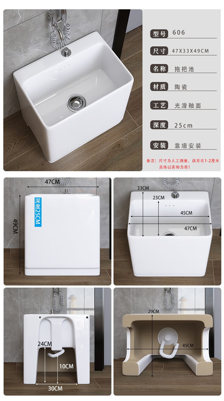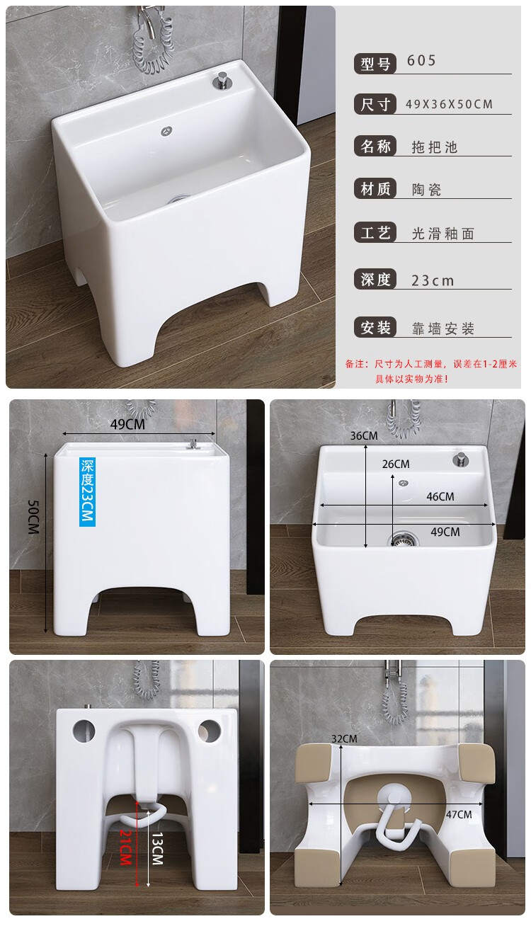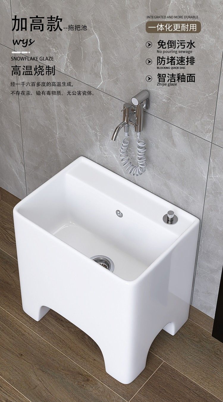 ARROW Heightened Balcony Mop Pool Ceramic Mop Pool Home Bathroom Wash Mop Pool Floor Basin Mop Pool Sink Deepened 604 Heightened Bottom