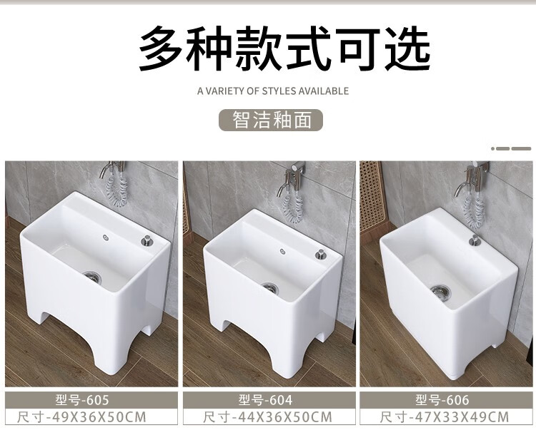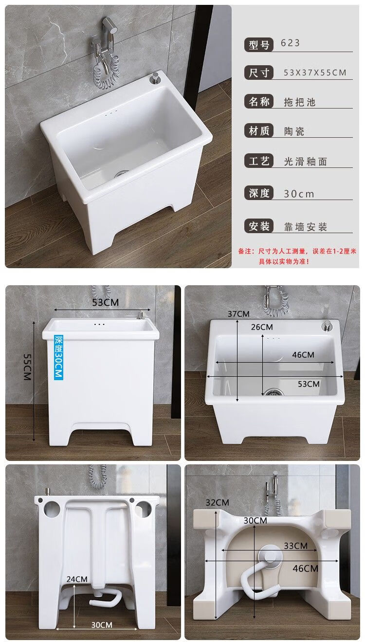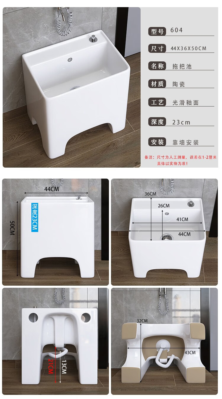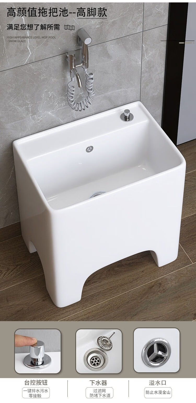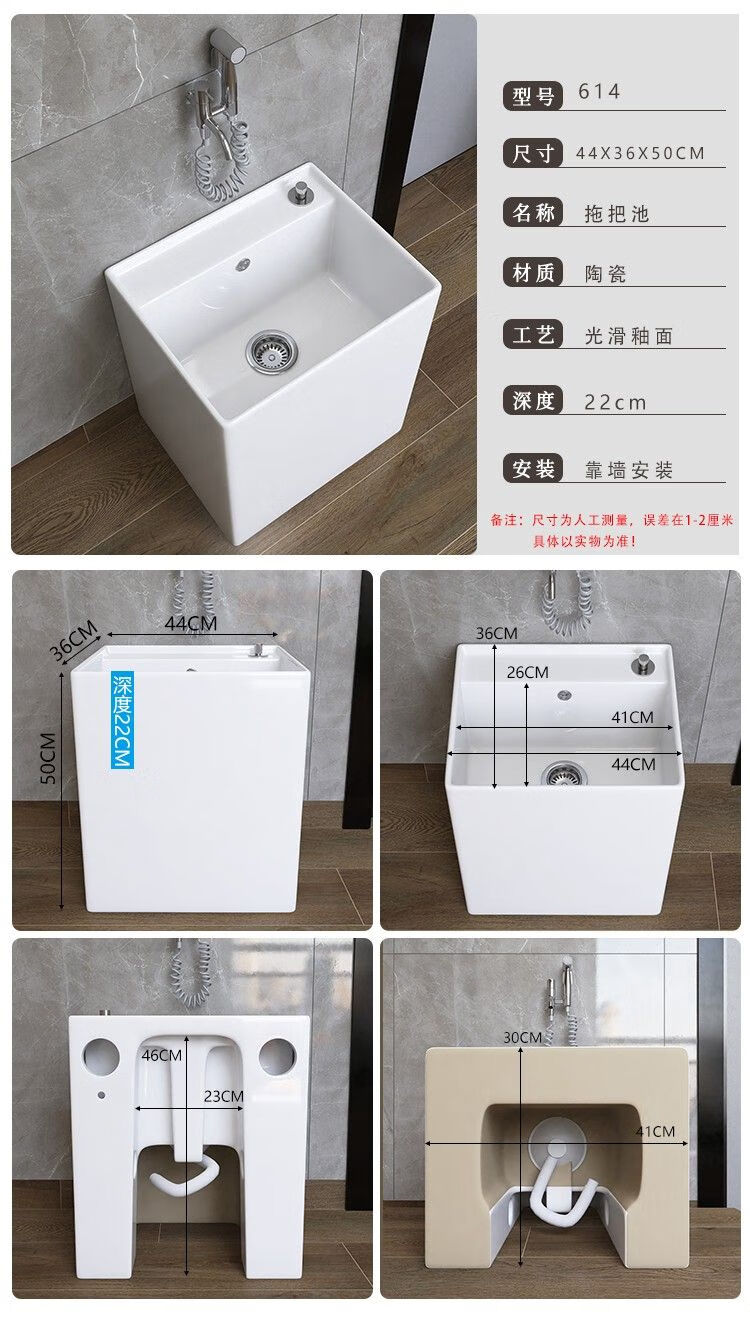 ARROW Heightened Balcony Mop Pool Ceramic Mop Pool Home Bathroom Wash Mop Pool Floor Basin Mop Pool Sink Deepened 604 Heightened Bottom