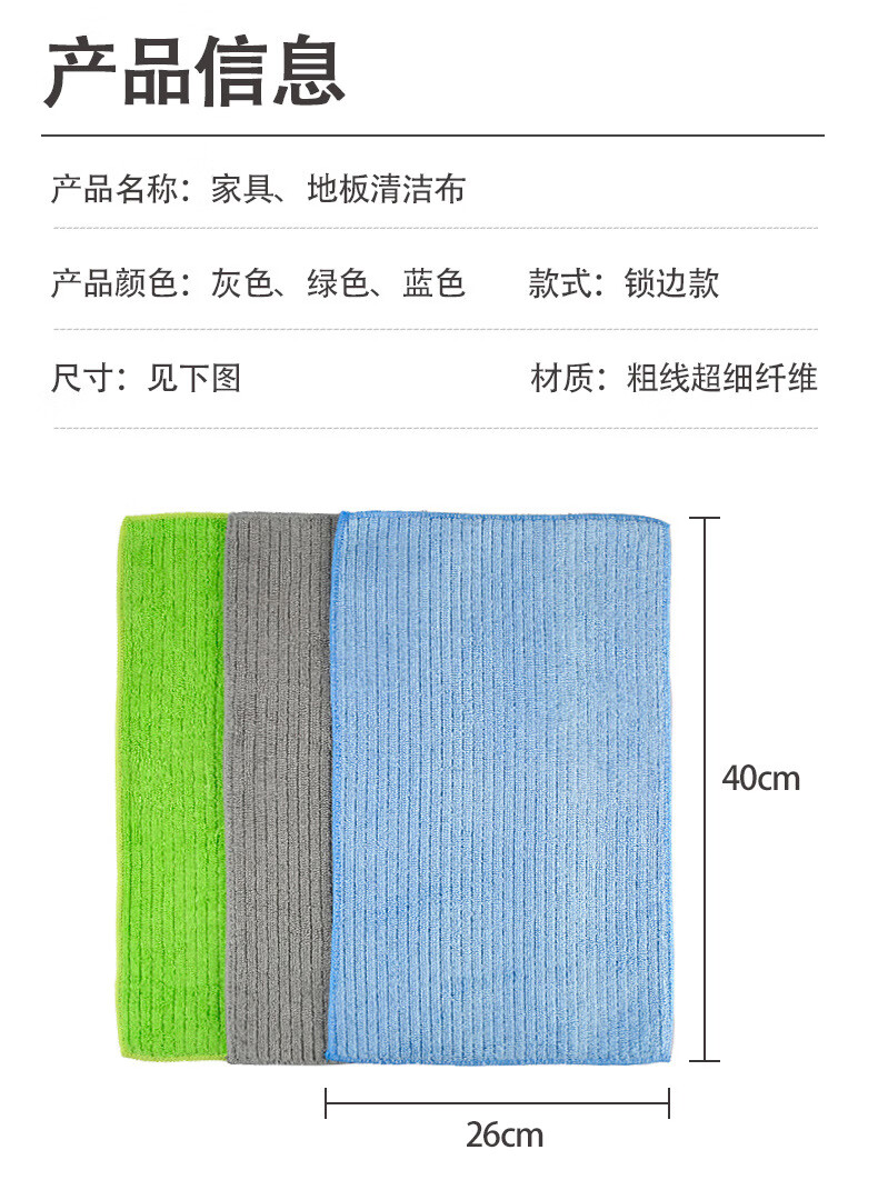 Beijingjie mopping cloth without watermark mopping cloth clip cloth for mopping the floor special towel cleaning mop flat replacement cloth blue 25*40 cm-3 pack