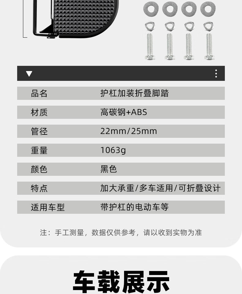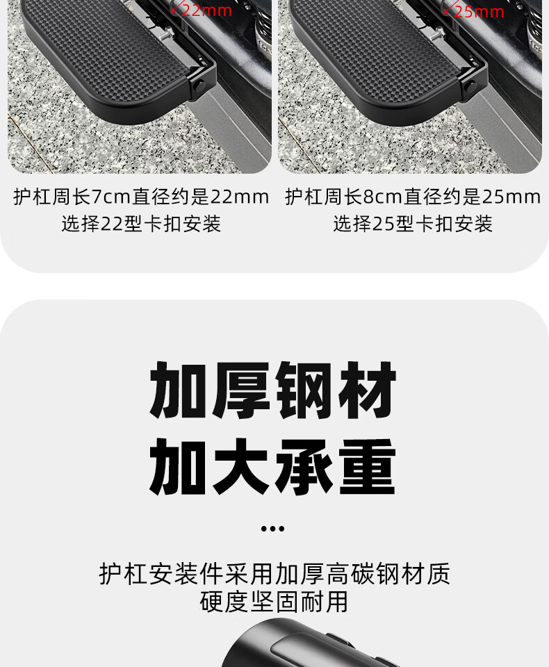 Panyuan battery electric vehicle guardrail foot pedals are widened on both sides of the bumper, and the front and rear seats are folded and installed. 22-type guardrail folding footrests