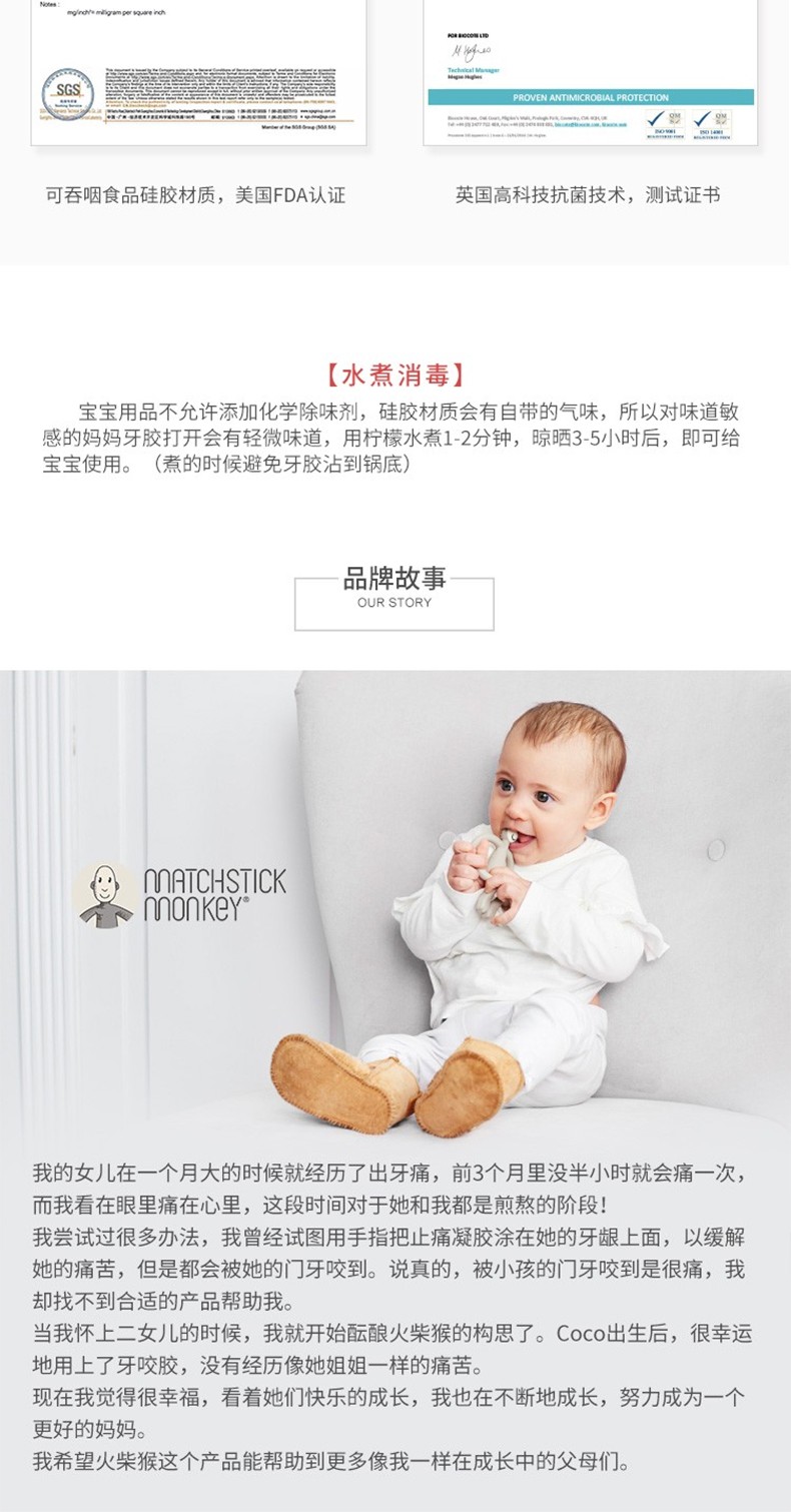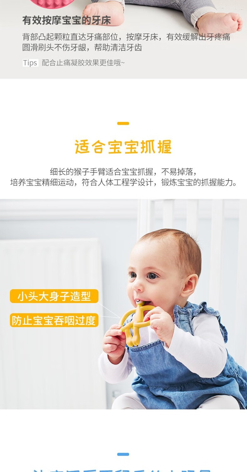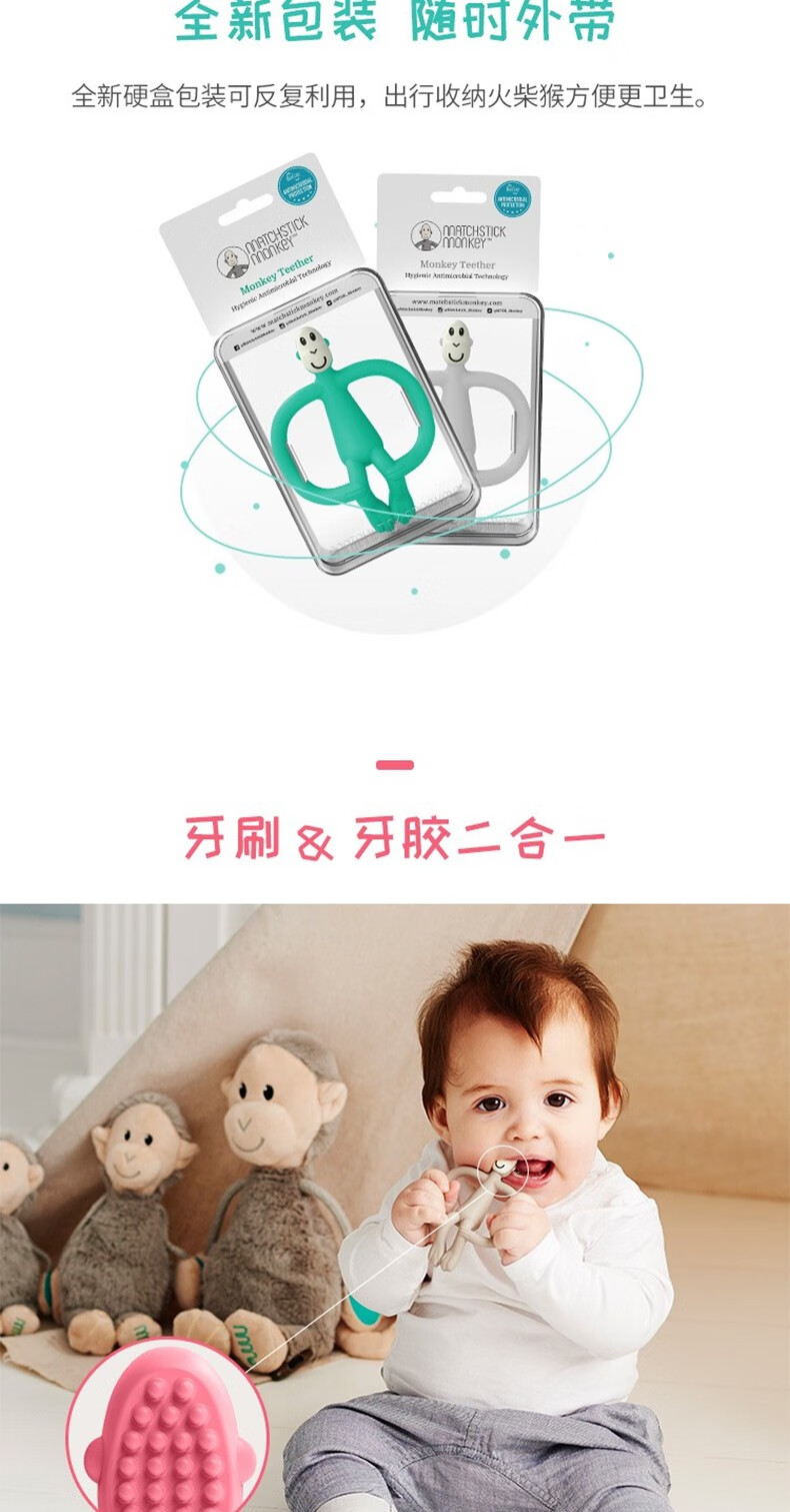 MATCHSTICK MONKEY British Match Monkey Teether Baby Soothes Molars No Tail Tailed Anti-eating Hand Bite Teether Can Be Boiled Professional Teether Oral Health Gift Box-Yellow