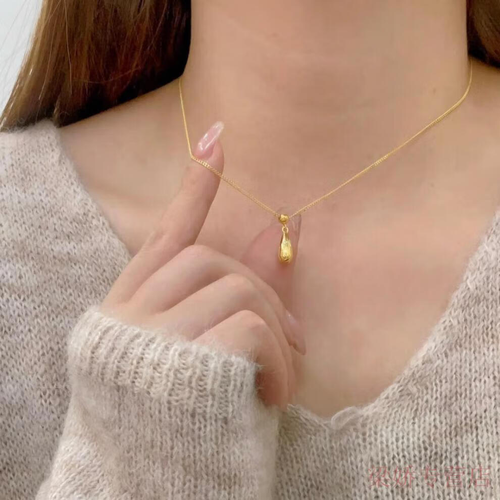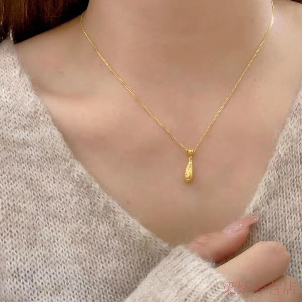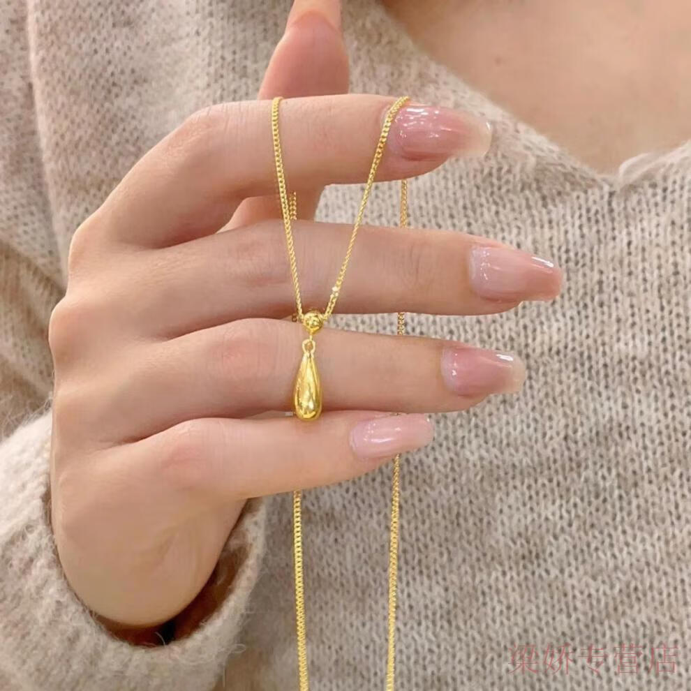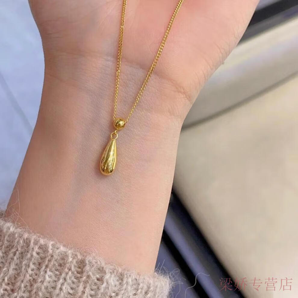GRAYCEWODY Old Phoenix 999 Gold Water Drop Pendant Necklace Smooth Geometric Transfer Beads Exquisite Niche Design Birthday Gift Water Drop Necklace Old Phoenix Gold Store Model