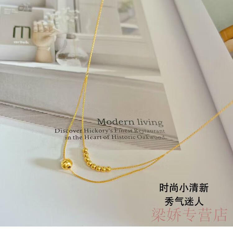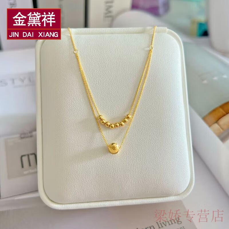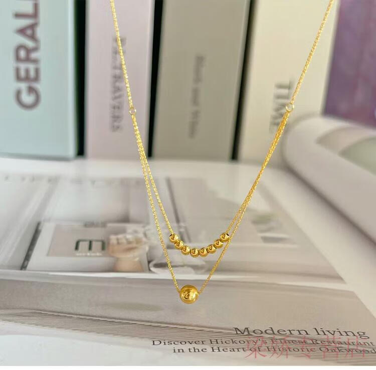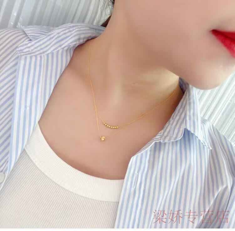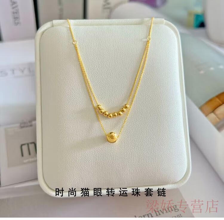 GRAYCEWODY Old Phoenix 999 gold 18K set chain cat's eye transfer bead necklace clavicle chain double-layer plain chain ins simple and elegant set chain/length about 42 tones 45cm old Phoenix gold store model