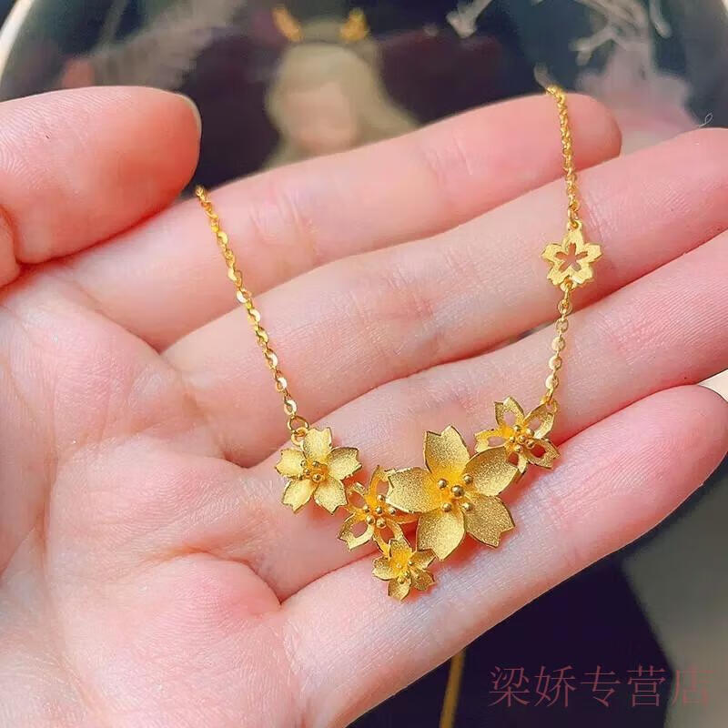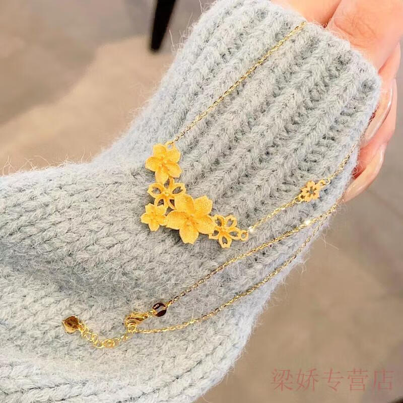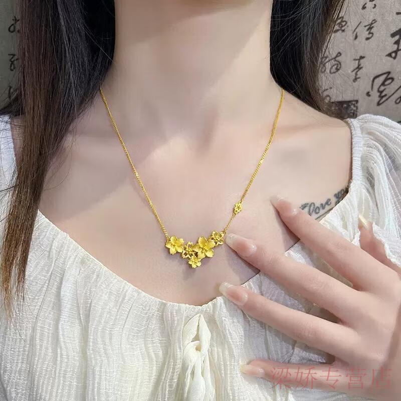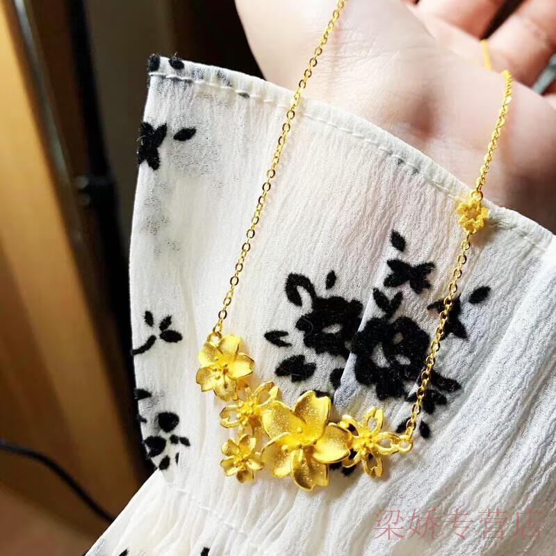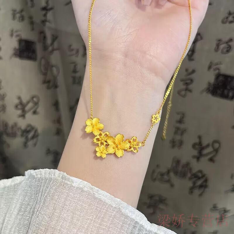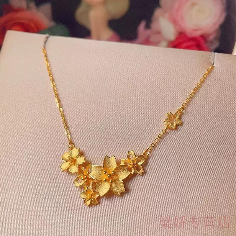 GRAYCEWODY Old Phoenix New Gold Sanshenghua Necklace Women's 999 Pure Gold Temperament Flower Pendant Pure Gold 24K Clavicle Chain 0.01g Old Phoenix Gold Store Model Sanshenghua Necklace