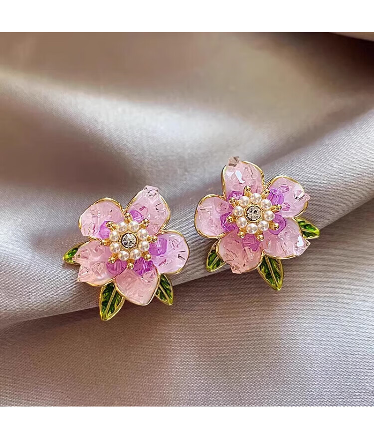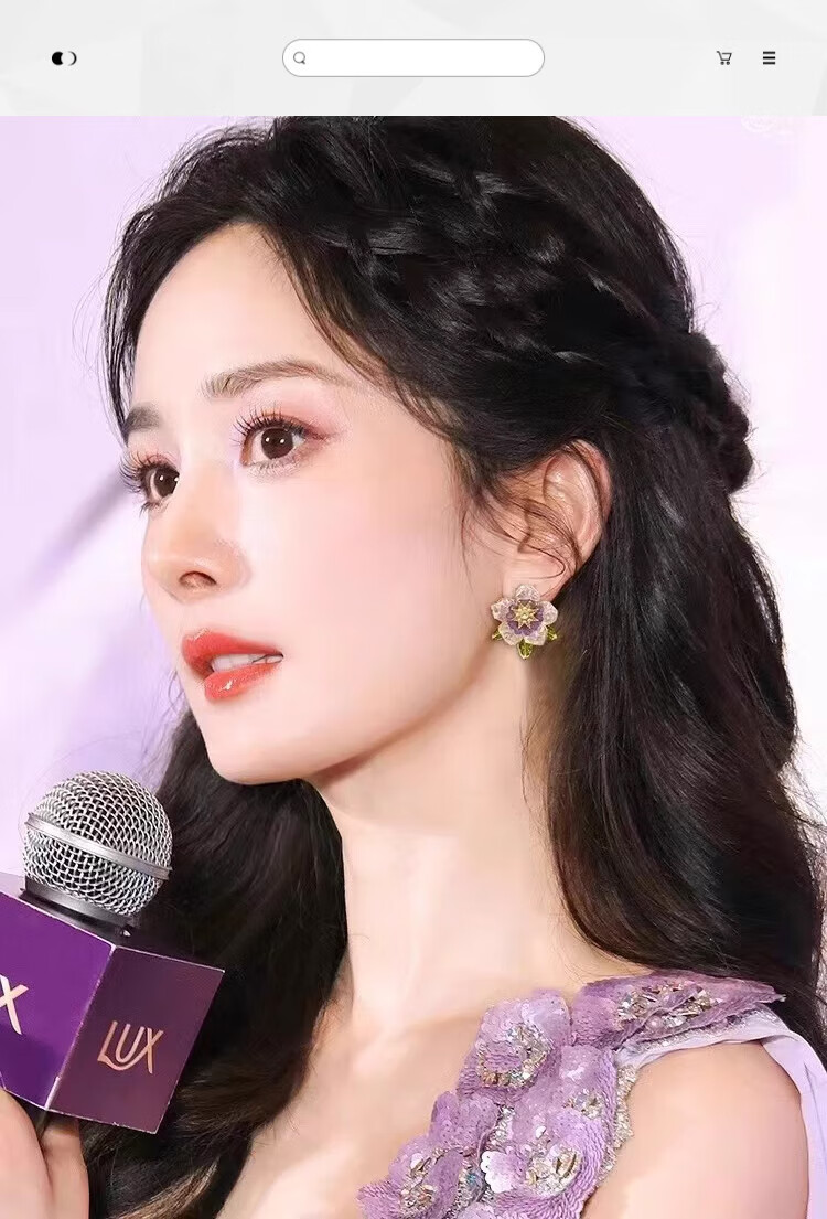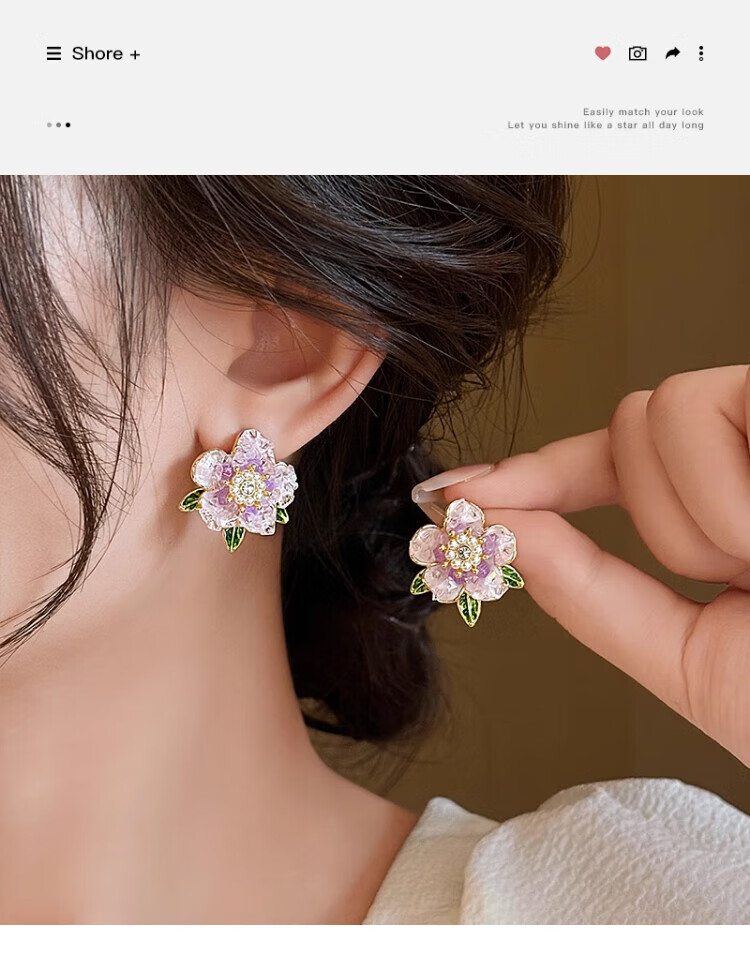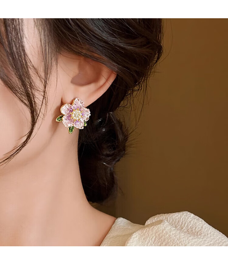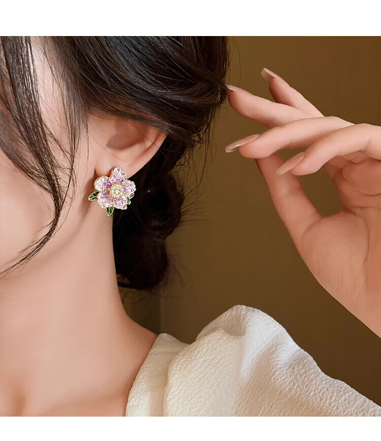 QMXD Yang Mi's same purple camellia earrings for women 2025 new popular unique earrings light luxury high-end earrings purple camellia earrings