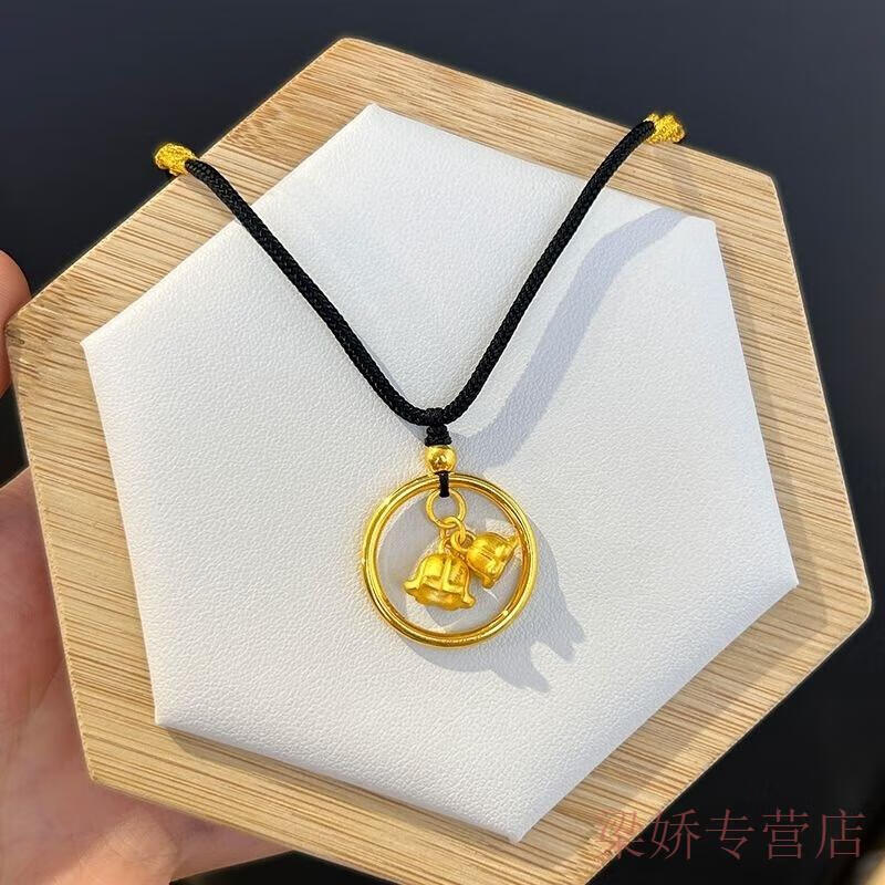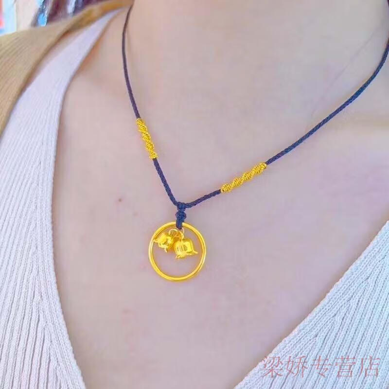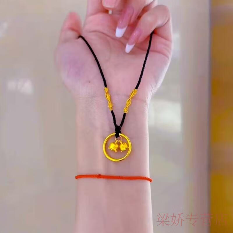 GRAYCEWODY Old Phoenix 999 gold lily of the valley flower pendant for women new simple plain circle peace buckle woven black rope clavicle necklace gold lily of the valley flower pendant for women new simple plain circle