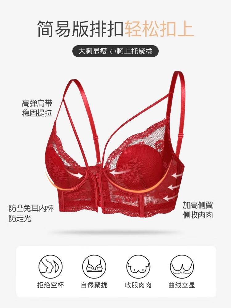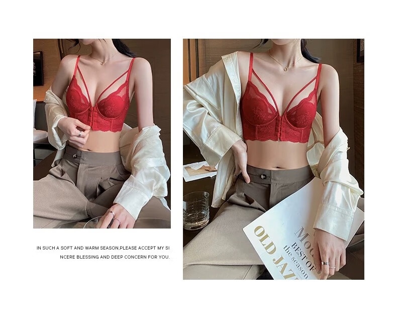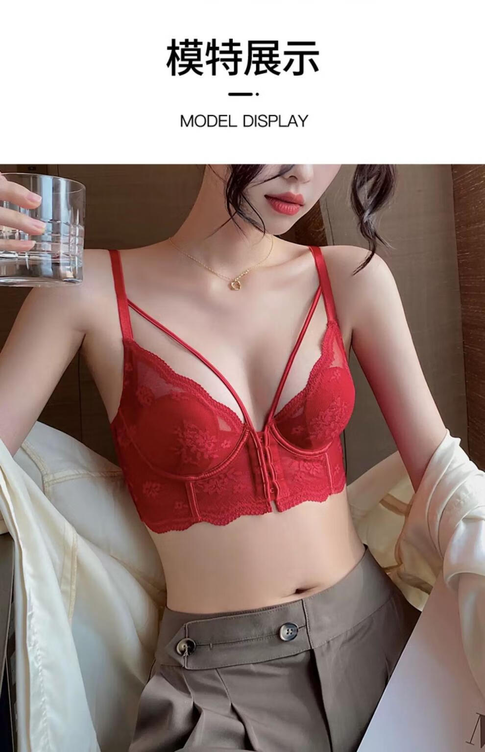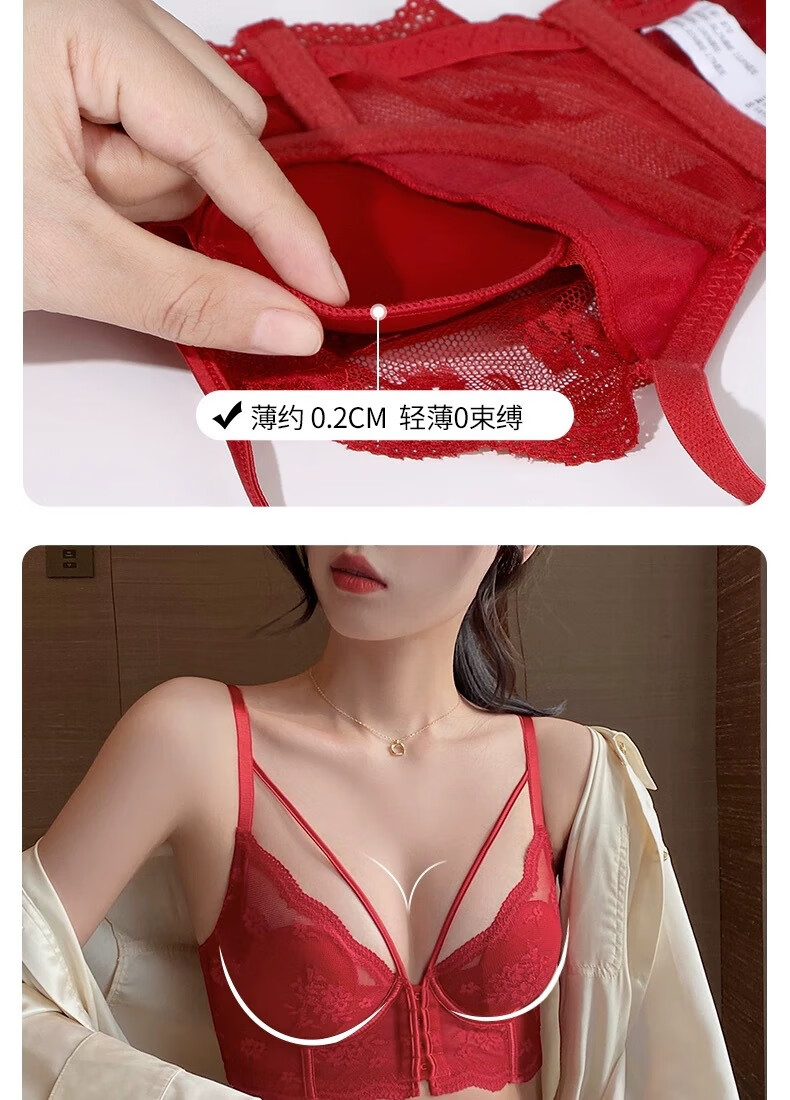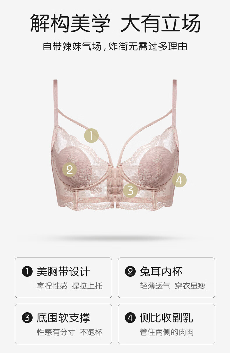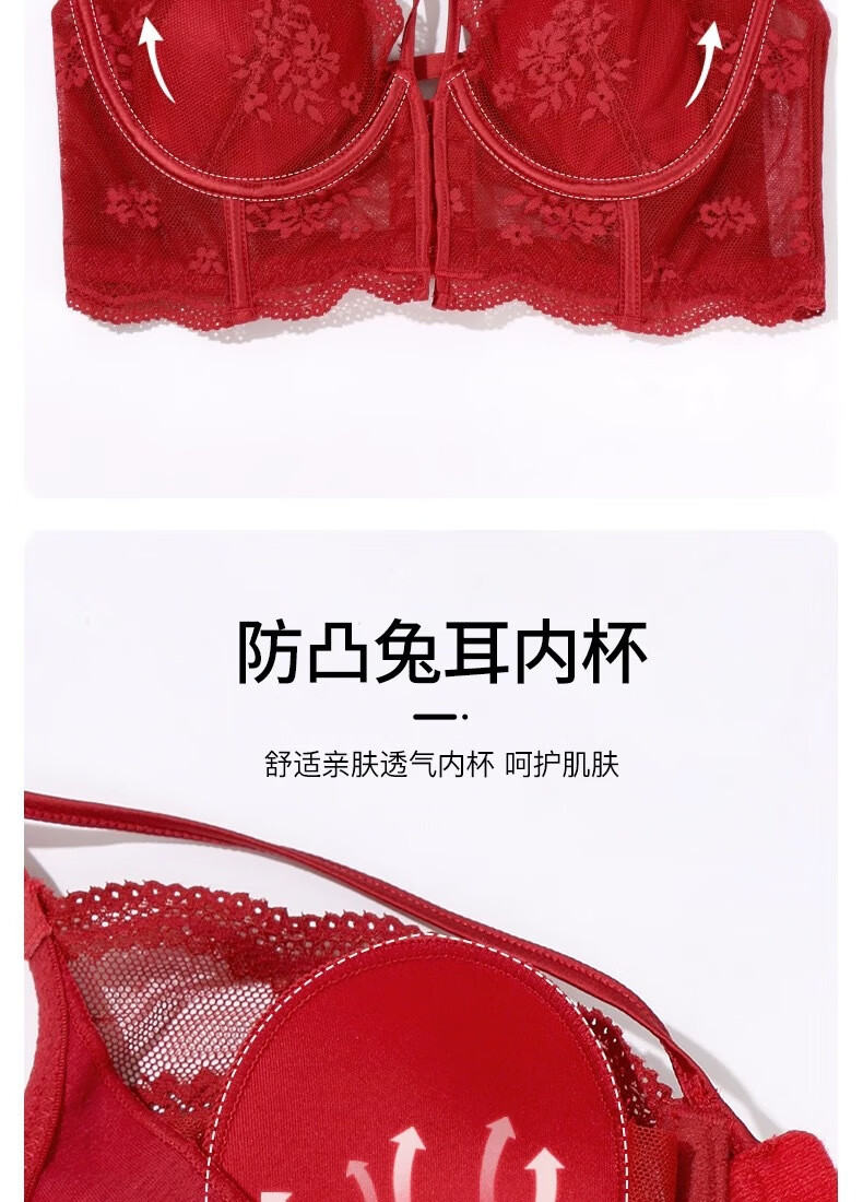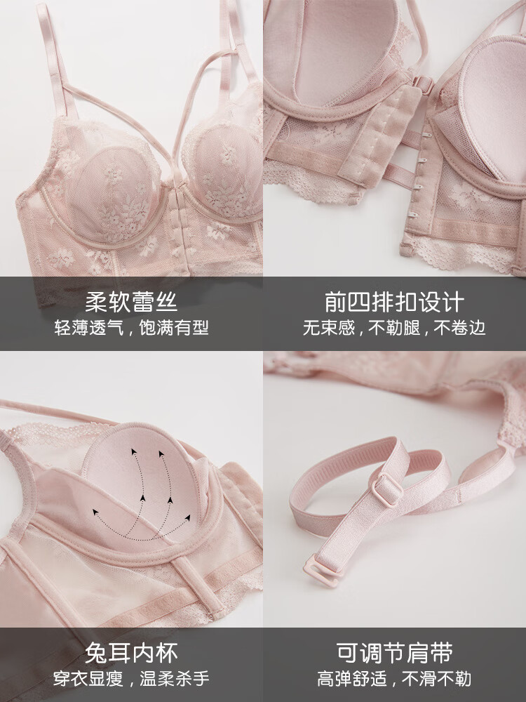 Adore Autumn and Summer French Underwear Feminine Thin Rabbit Ear Cup Front Button Beautiful Back Underwear Large Breasts Show Small Anti-Sagging Bra Set Pink Set 80B