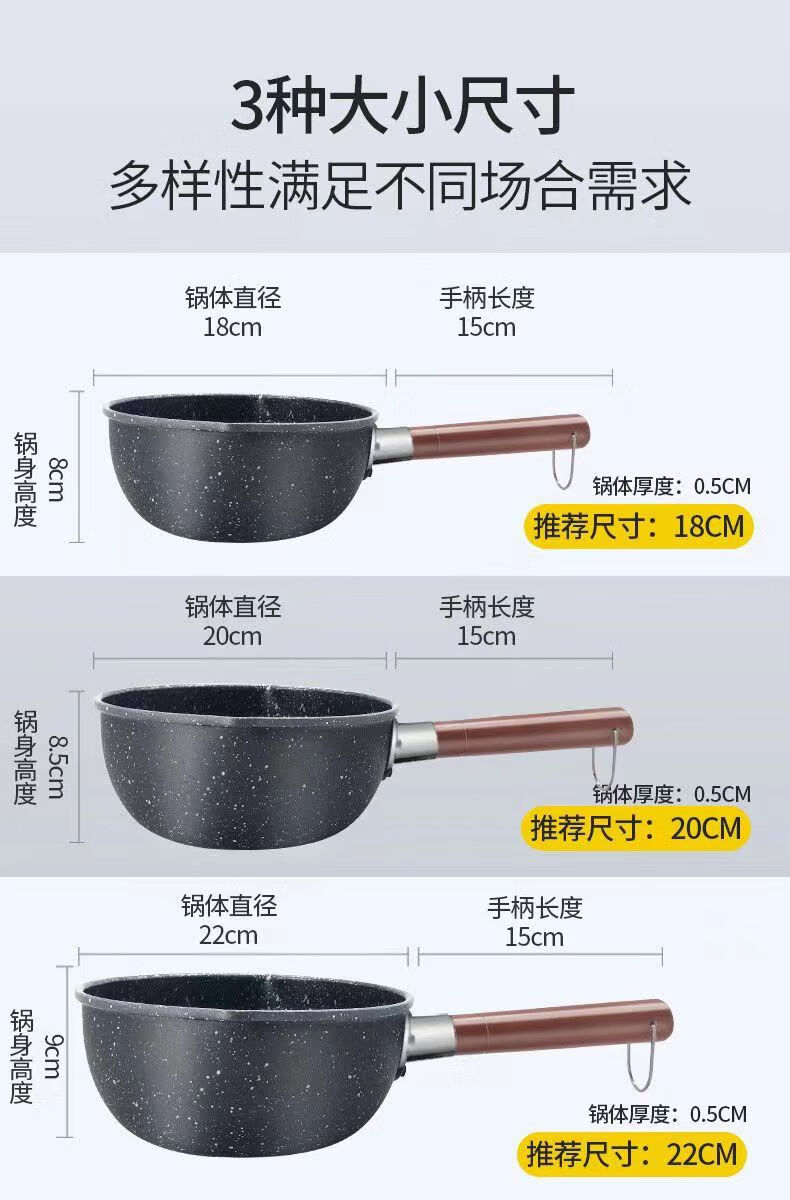 Japanese snow flat pot, baby food supplement pot, induction cooker, gas stove, universal non-stick pot, dormitory instant noodles, medical rice stone milk pot, thickened single pot 22cm