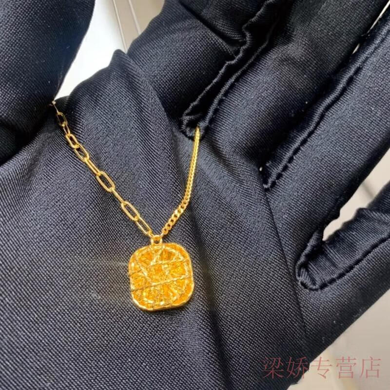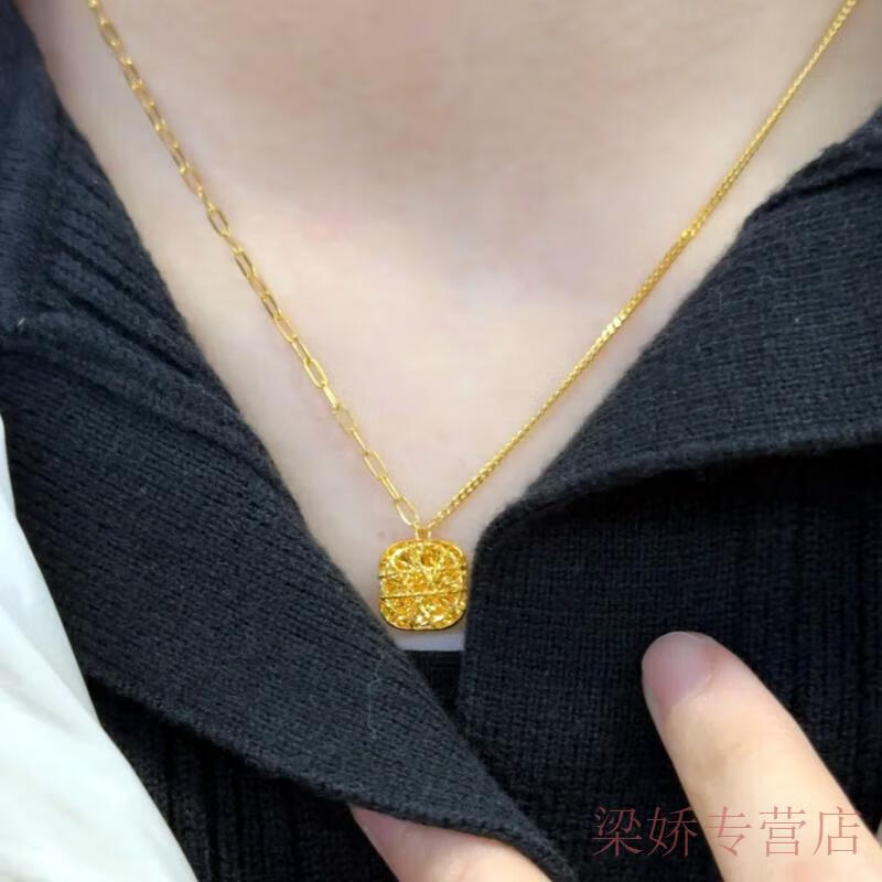 GRAYCEWODY Old Phoenix Gold 9999 Pure Gold Brushed Sugar Cube Pendant Gold Flash Necklace Solid Gold Fashion Clavicle Chain 0.01g Old Phoenix Gold Store Model Brushed Sugar Cube Necklace x 45cm