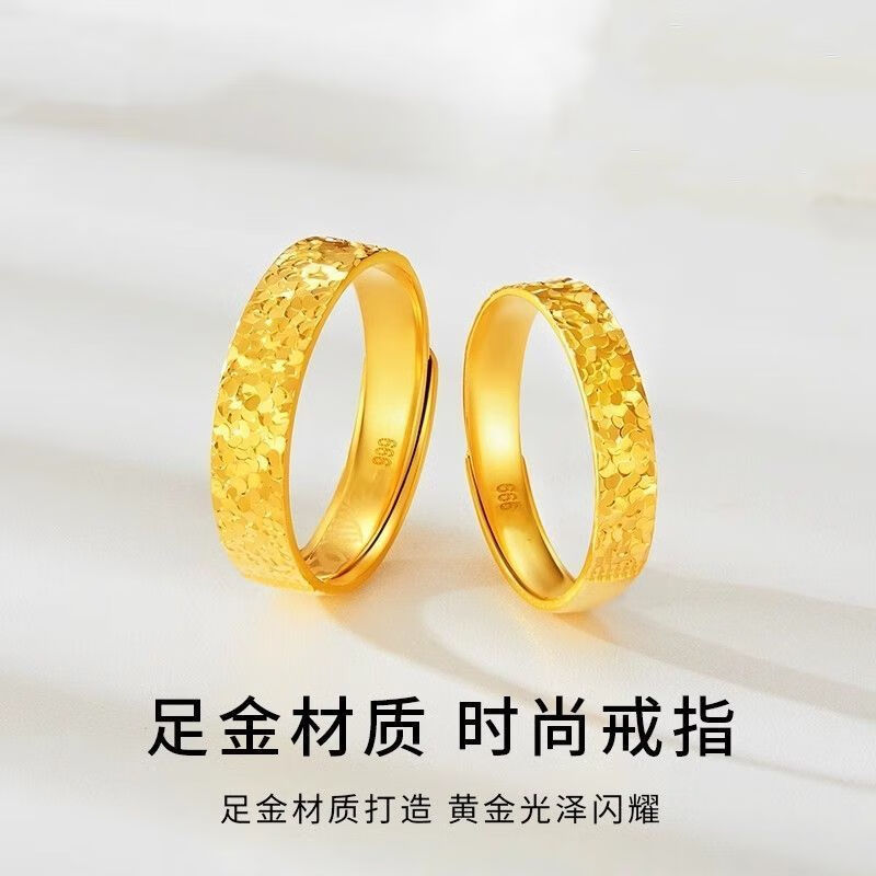 SHEMANDI crushed ice ring for women, versatile sparkling open gold-plated gift for girlfriend, gold crushed ice ring (live) 0.98g