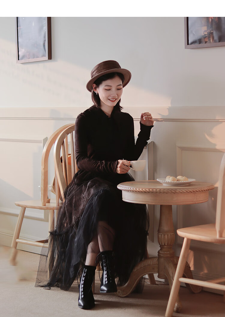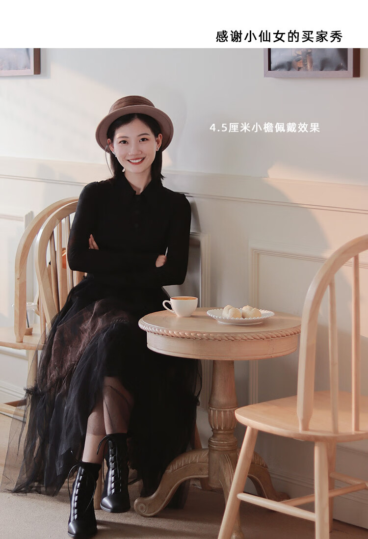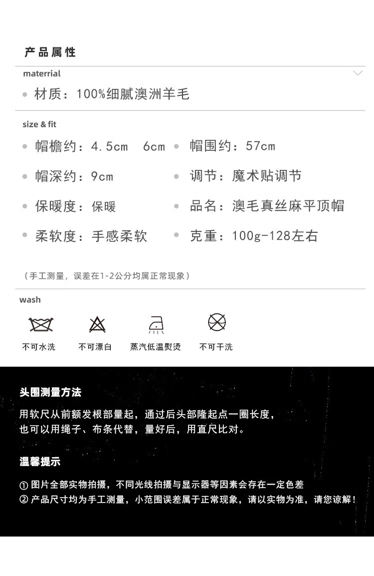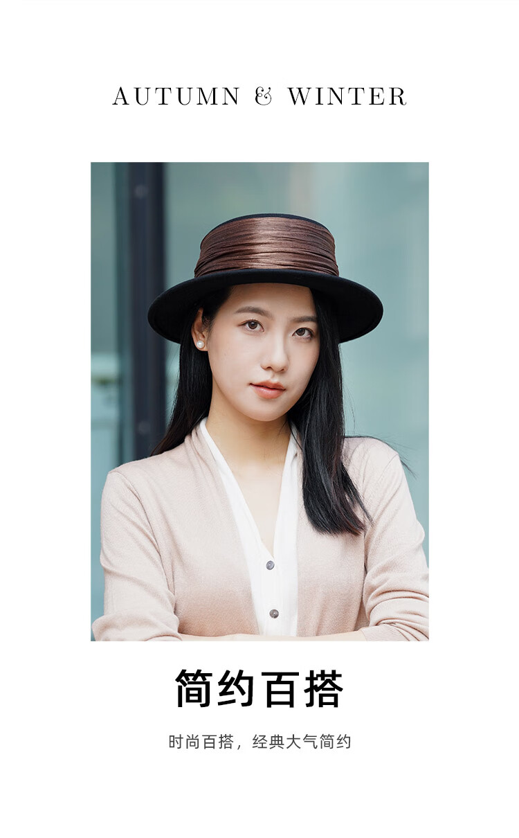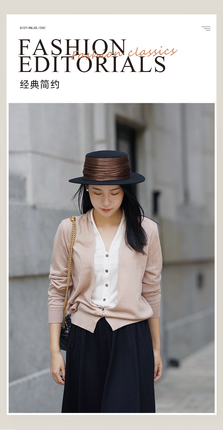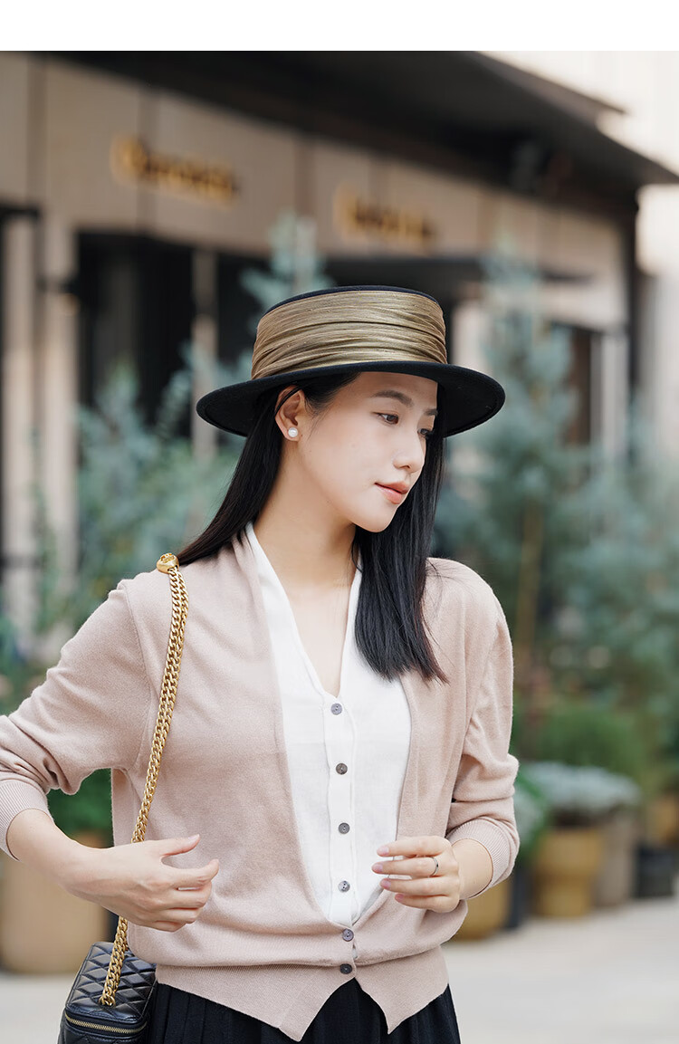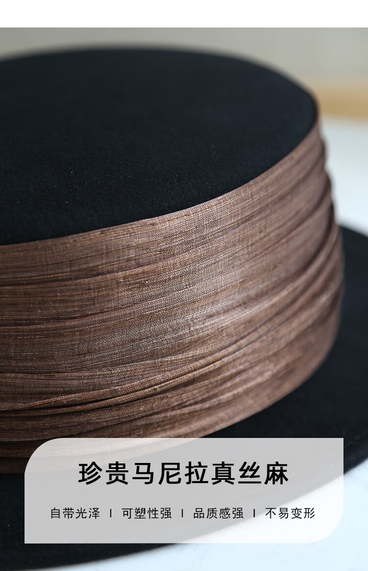 JOLISAC high-end niche Australian woolen flat hat for women pleated silk linen French retro flat brim hat short brim autumn and winter black with coffee 6CM wide brim adjustable