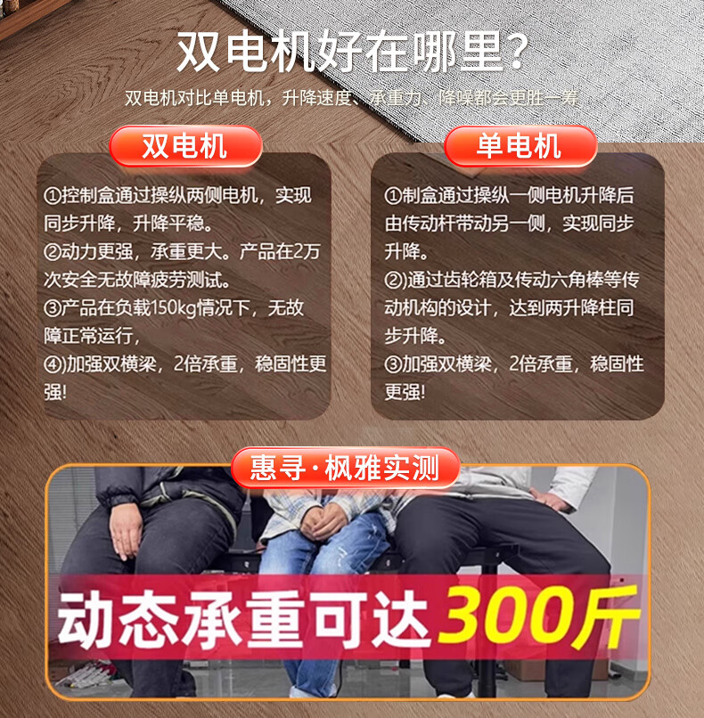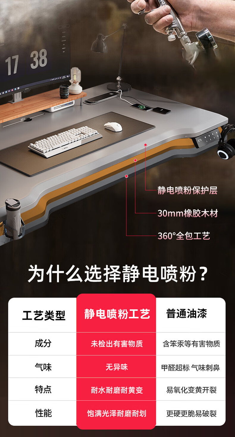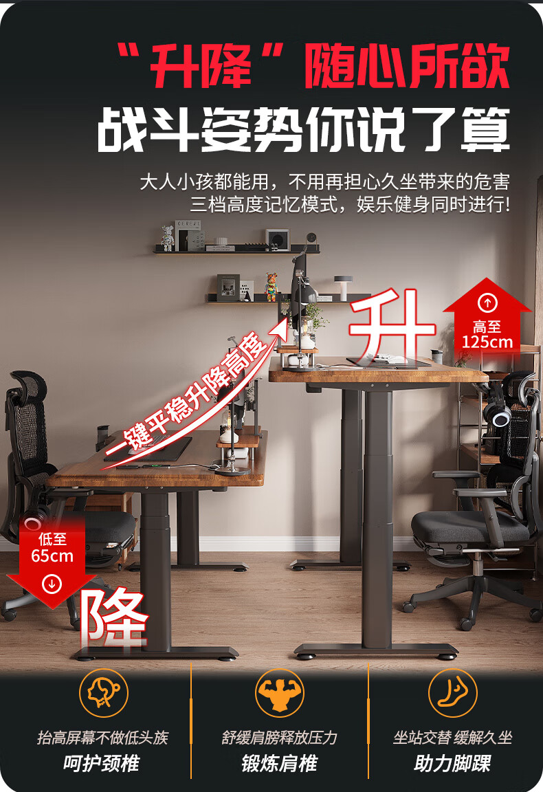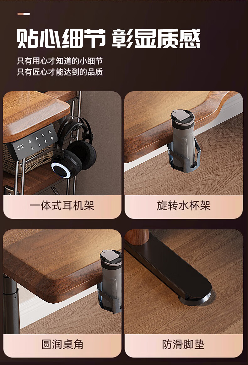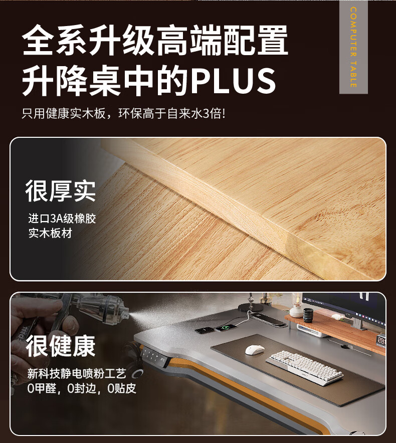 Huixun Jingdong's own brand solid wood electric lifting table computer table desktop liftable workbench gaming table desk formal single motor 3cm solid wood walnut color 120*60 (hidden double-sided power strip)