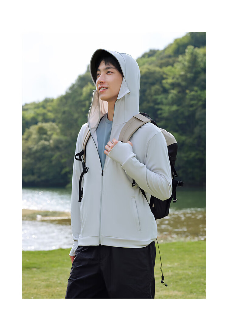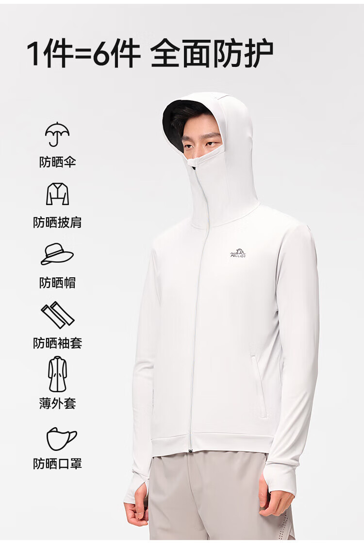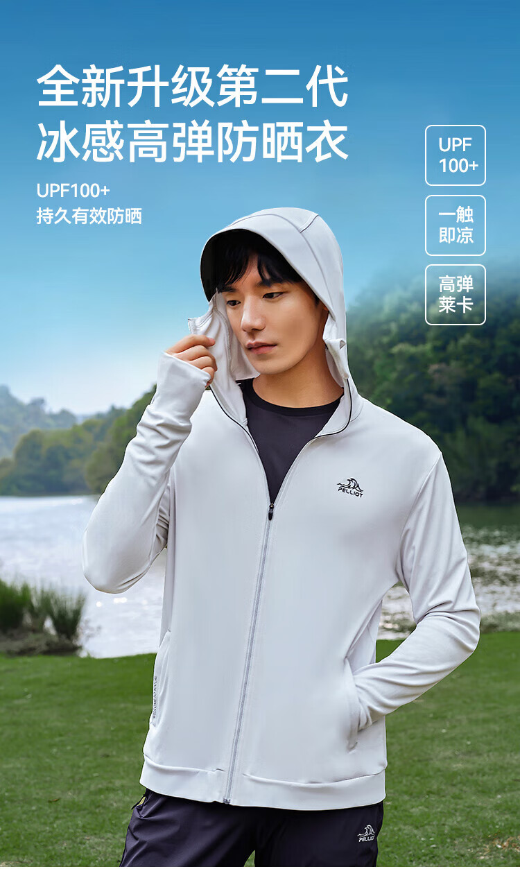 Pelliot sun protection clothing men's outdoor light jacket summer cool ice silk sun protection clothing black vinyl high elastic breathable fishing skin clothing light gray L