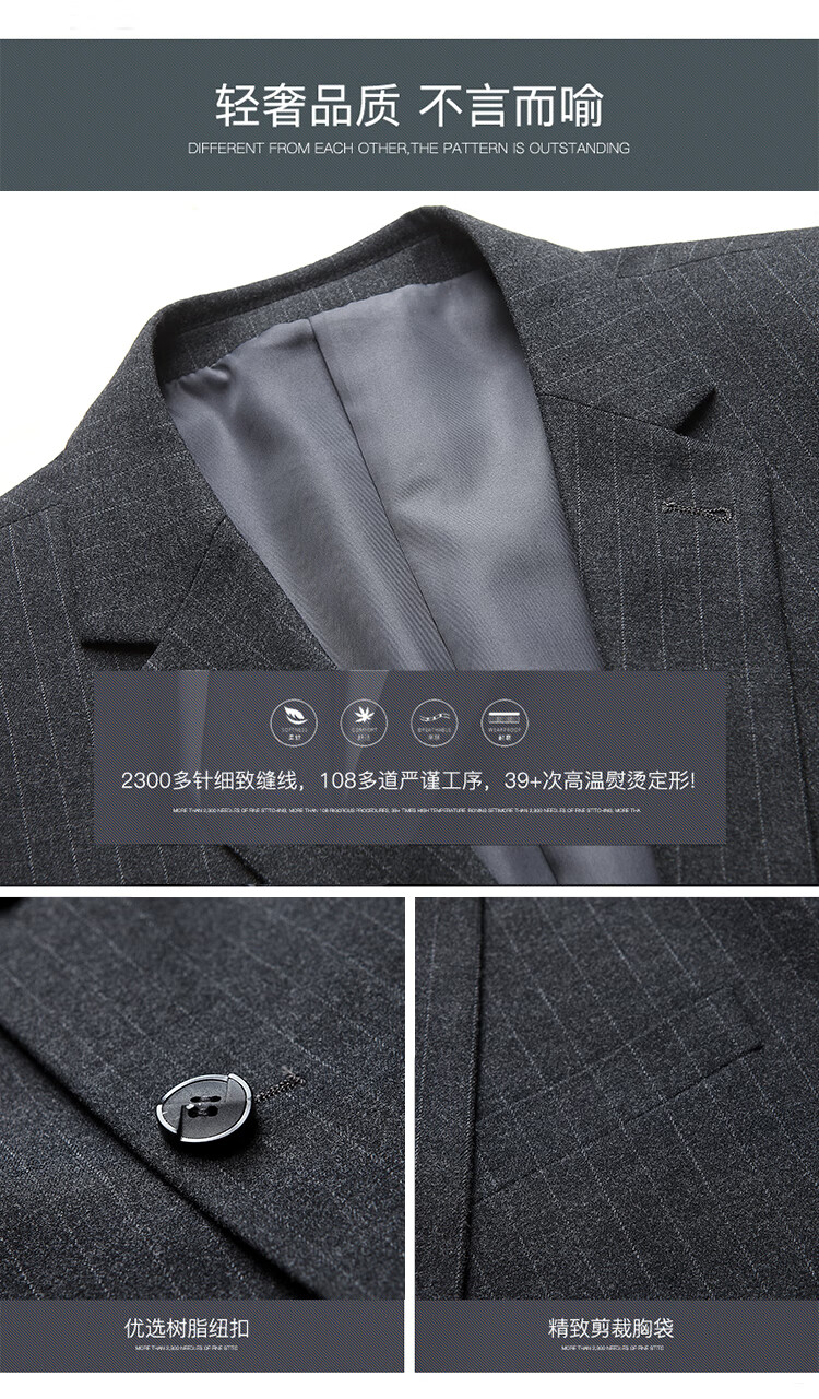 Announcement Bird Suit Men's Slim Business Professional Suit High-end Men's Striped Suit Wedding Banquet Dress Gray Plaid XXS